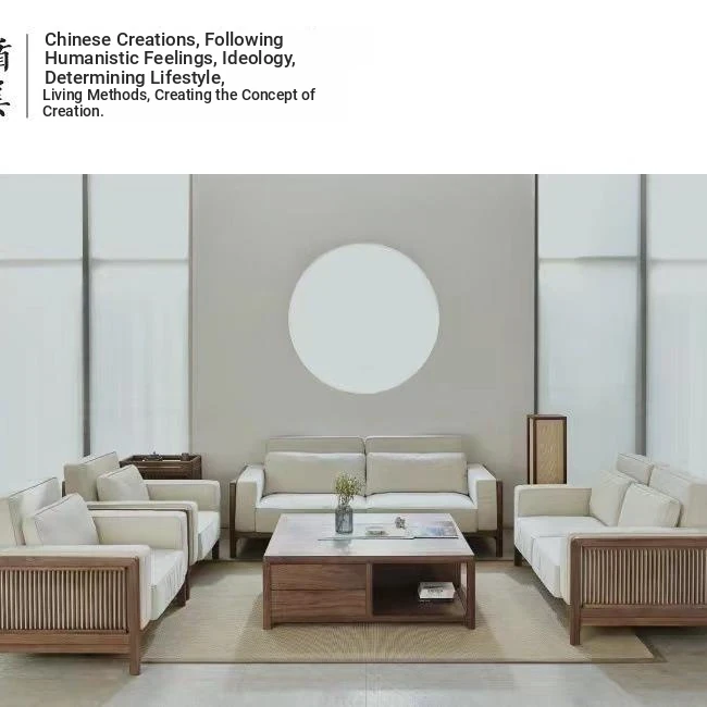 Zen-Inspired New Chinese Style Solid Wood Sofa and Coffee Table Set - Featuring North American Black Walnut and Old Elm, Upholstered for Comfort, Perfect for Your Living Room