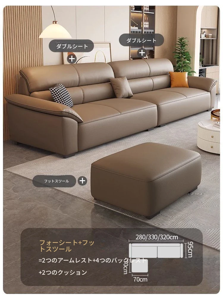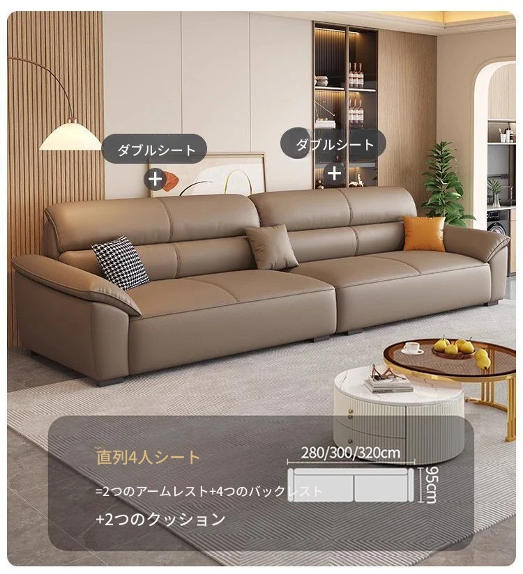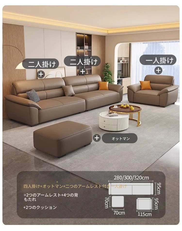 2024年新作 シンプルなイタリアンデザインの猫爪レザーソファ 小型リビングに最適なモダン直排式本革ソファで、スタイリッシュな空間を演出!