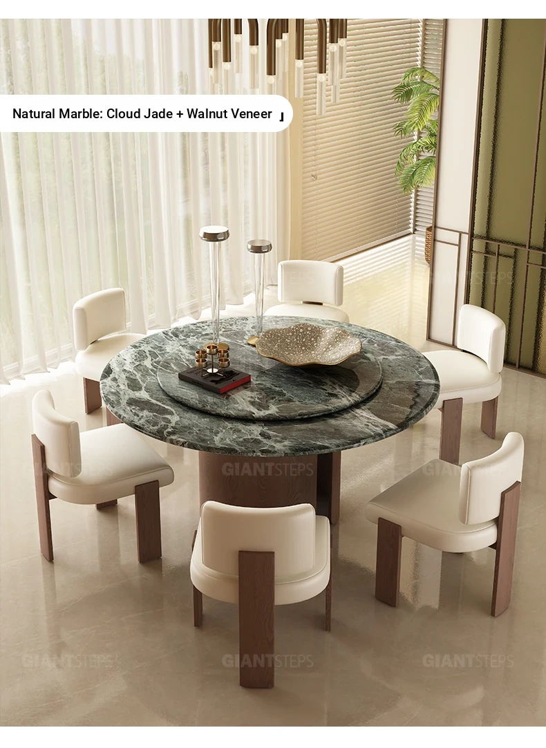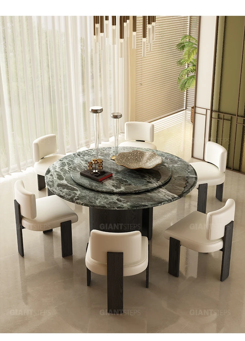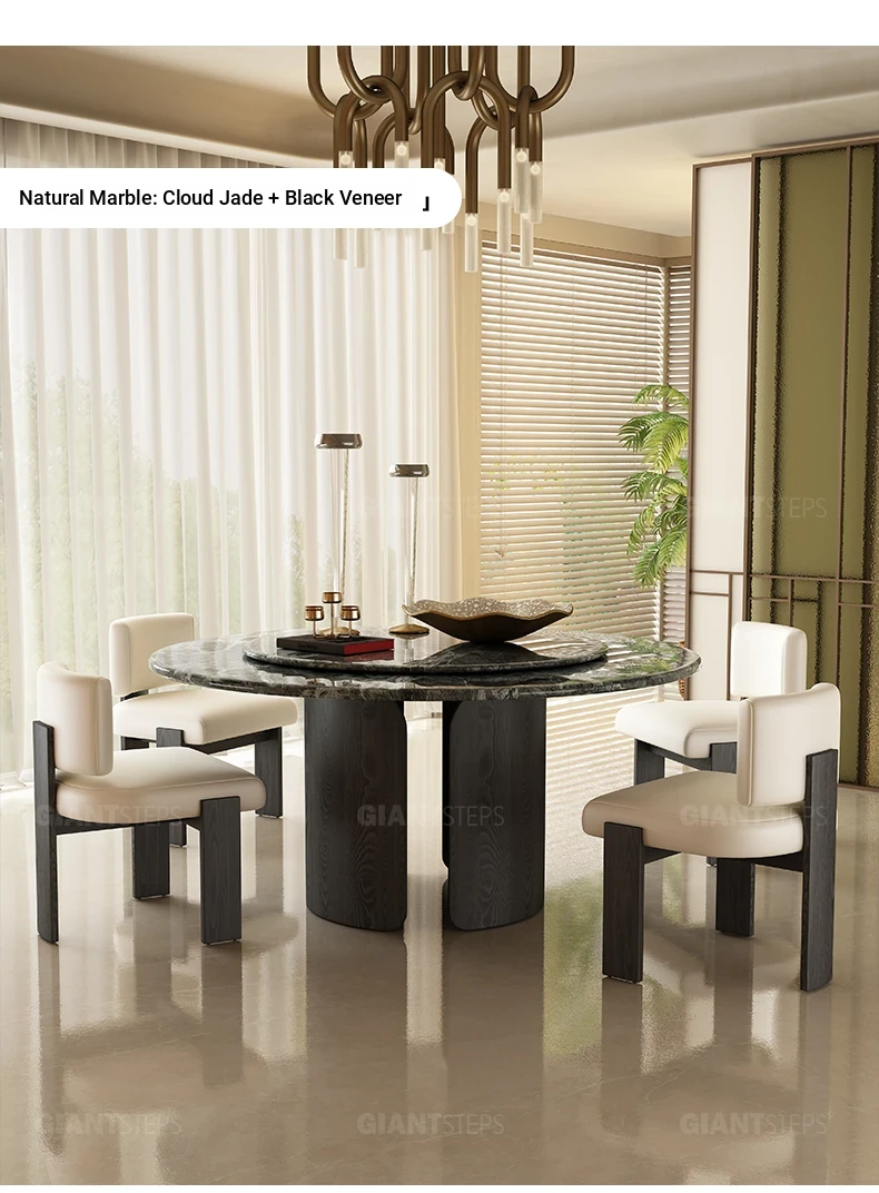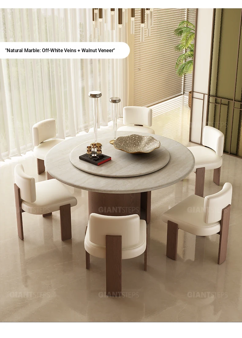 2025 New Italian Minimalist Natural Marble Vintage Luxury Round Dining Table and Chair Set - Creative Designer Edition
