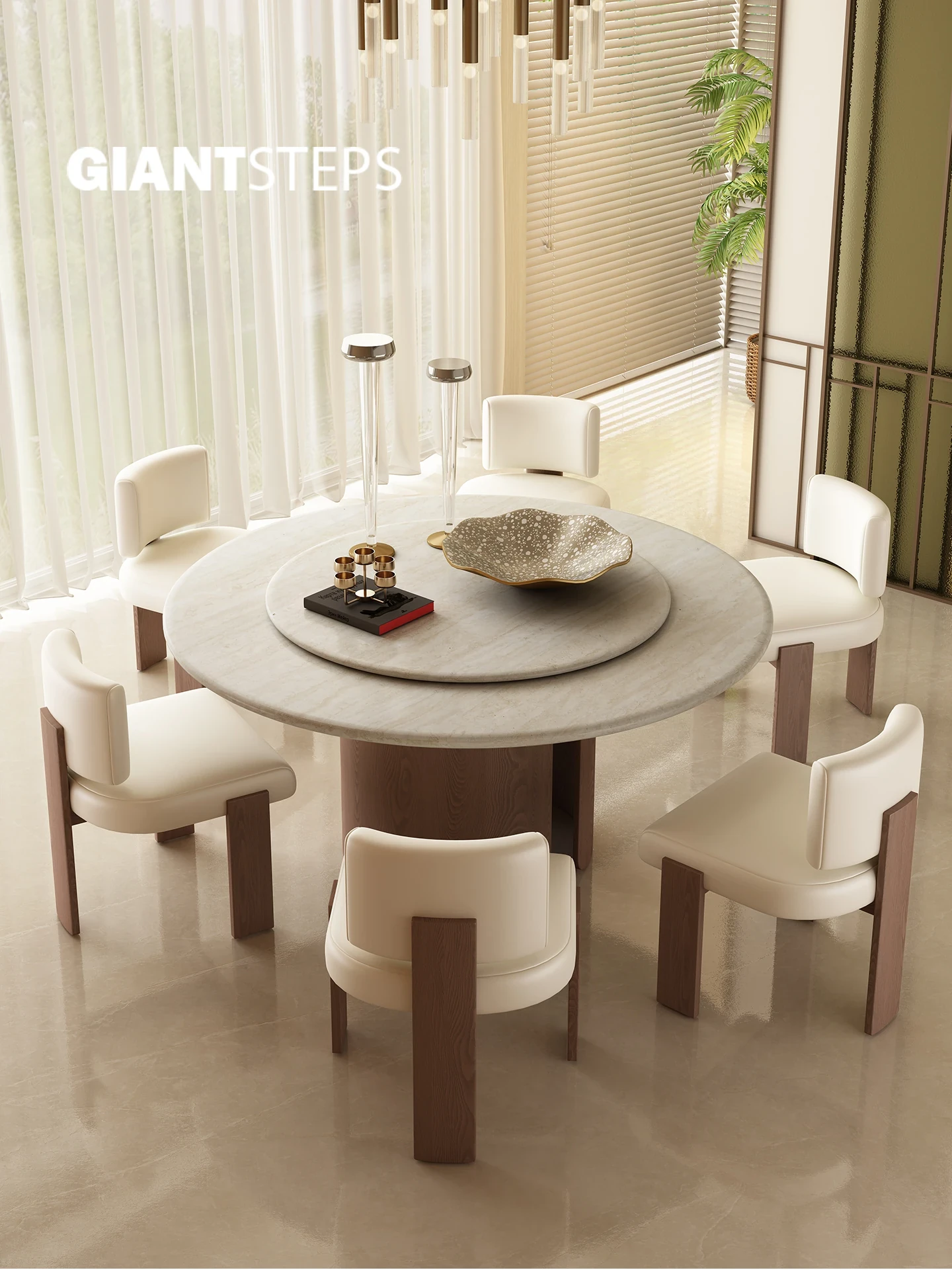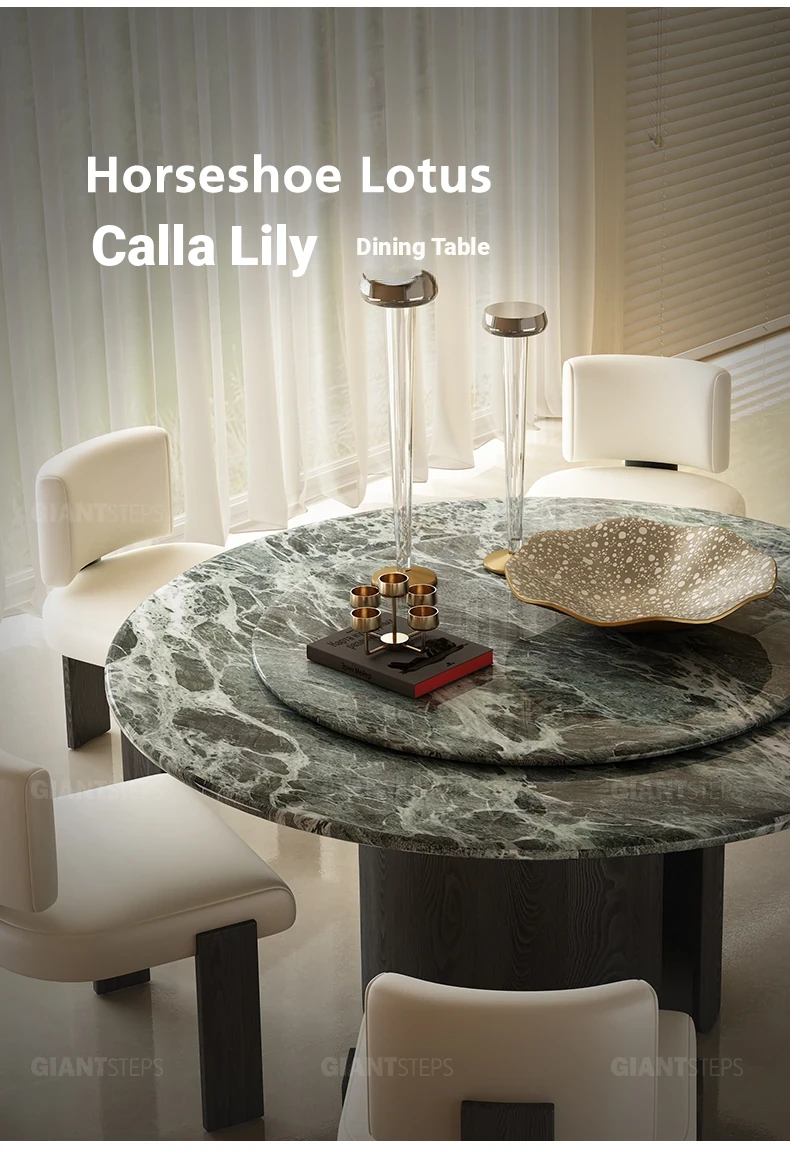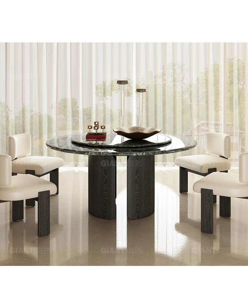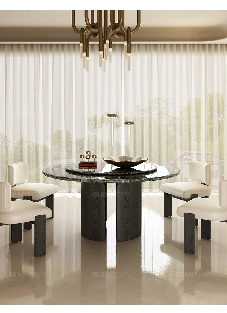 2025 New Italian Minimalist Natural Marble Vintage Luxury Round Dining Table and Chair Set - Creative Designer Edition