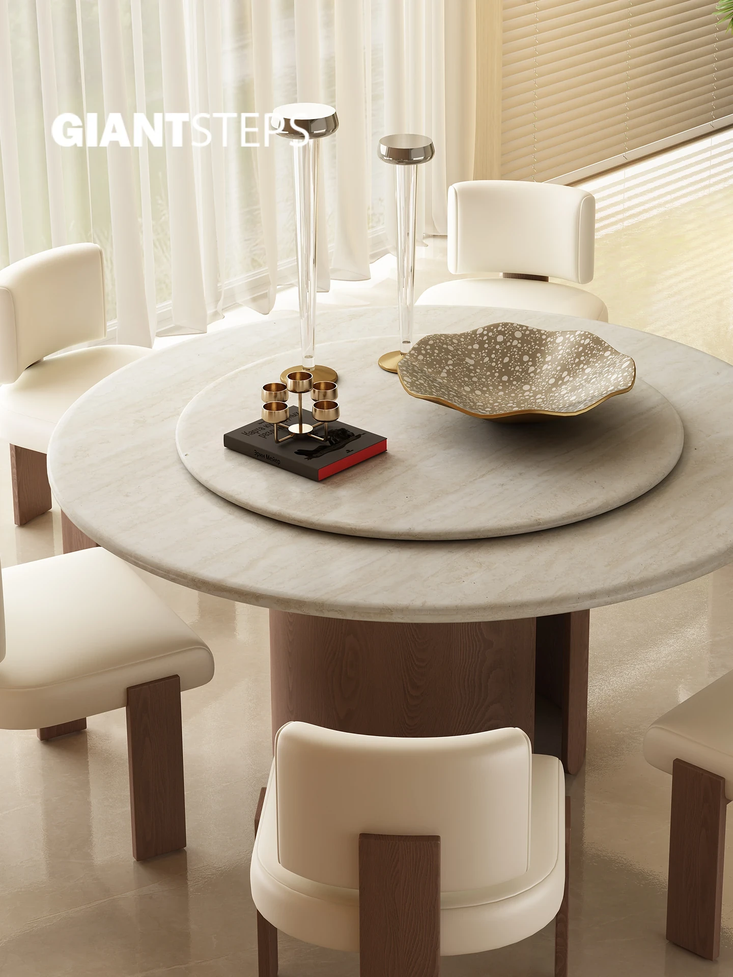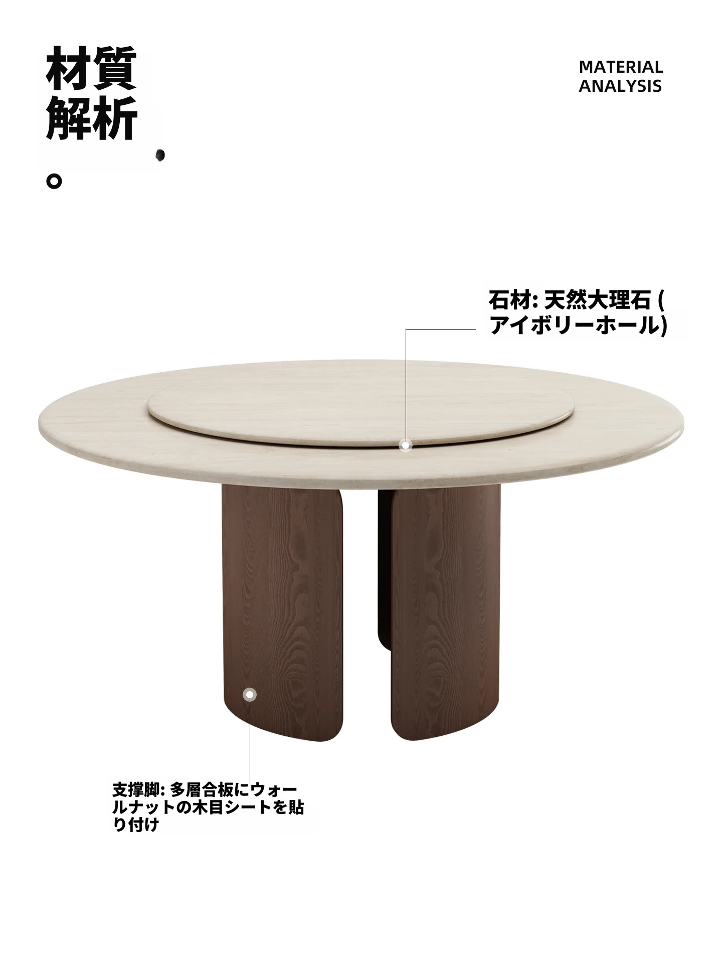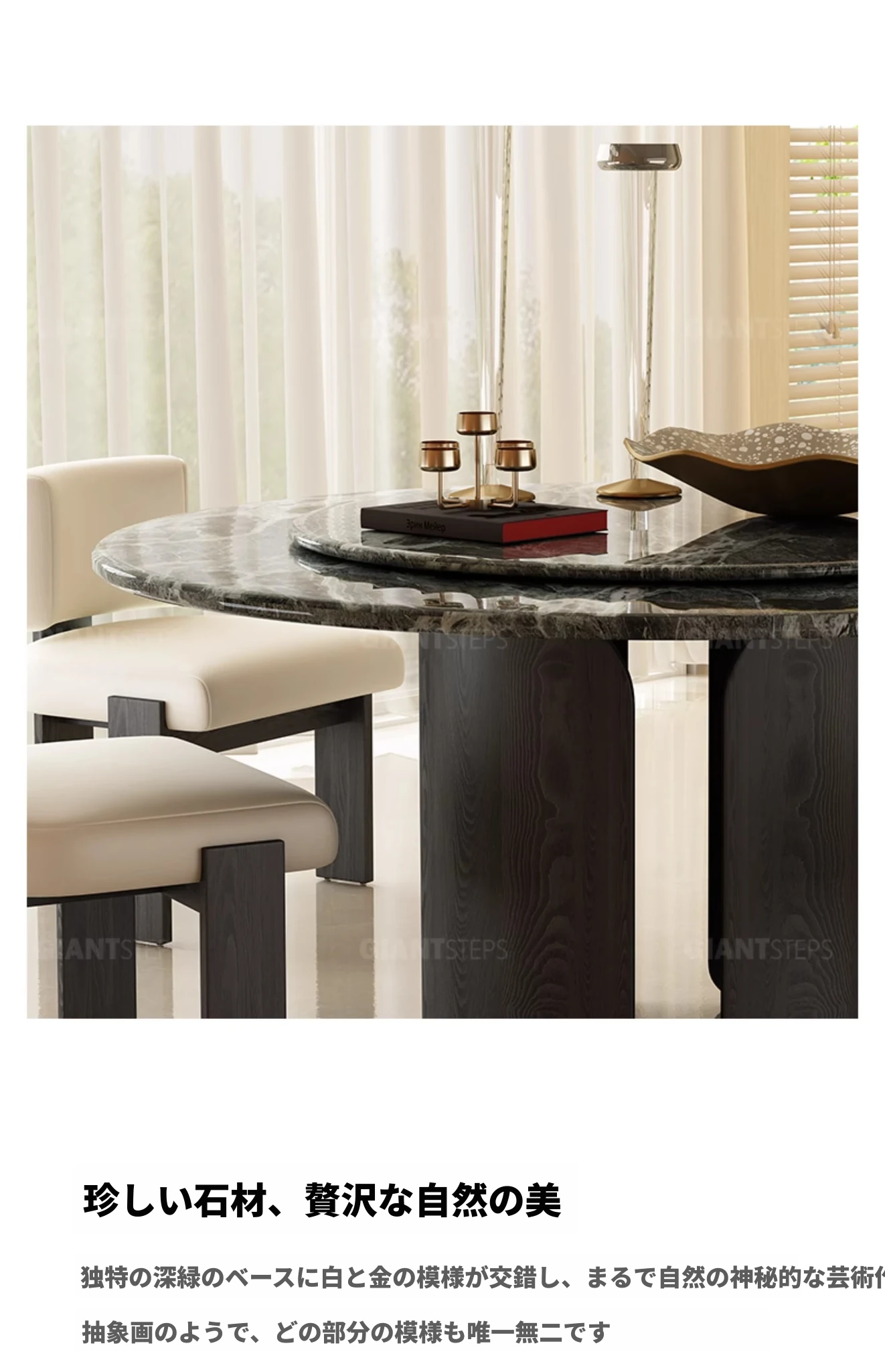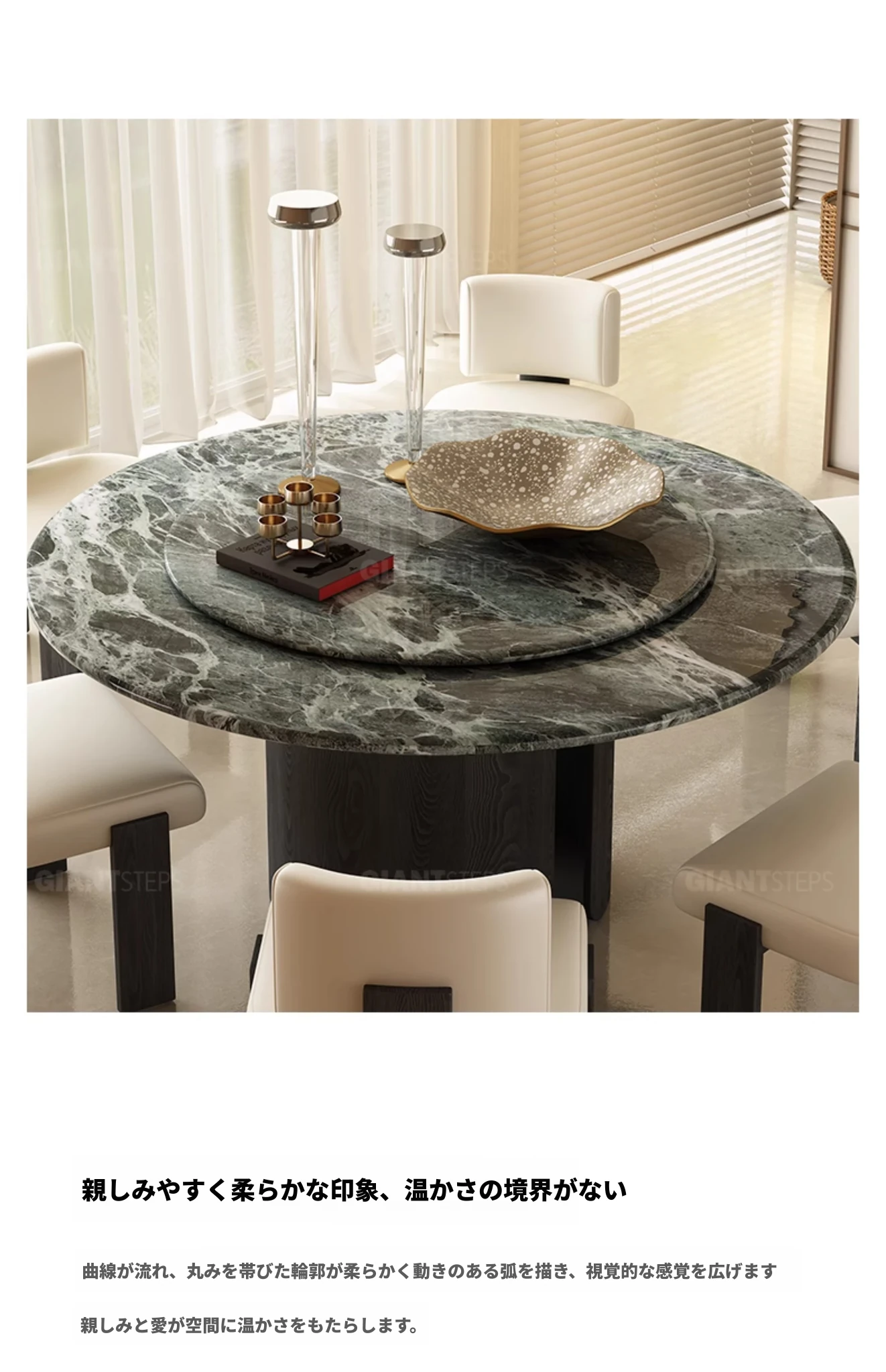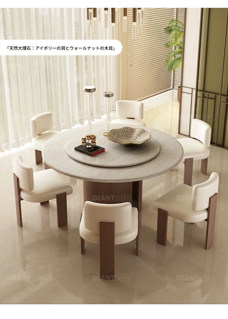 2025年新作!イタリアンミニマルデザインの天然大理石使用、中古風のラグジュアリーな丸型ダイニングテーブル&チェアセット。クリエイティブなデザインで、特別な空間を演出します!
