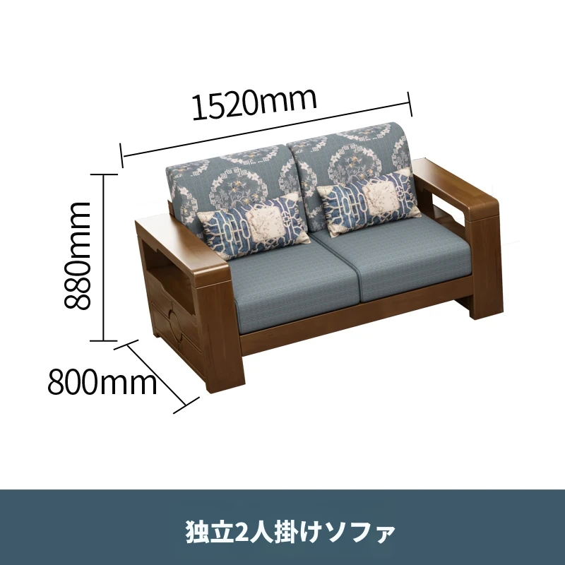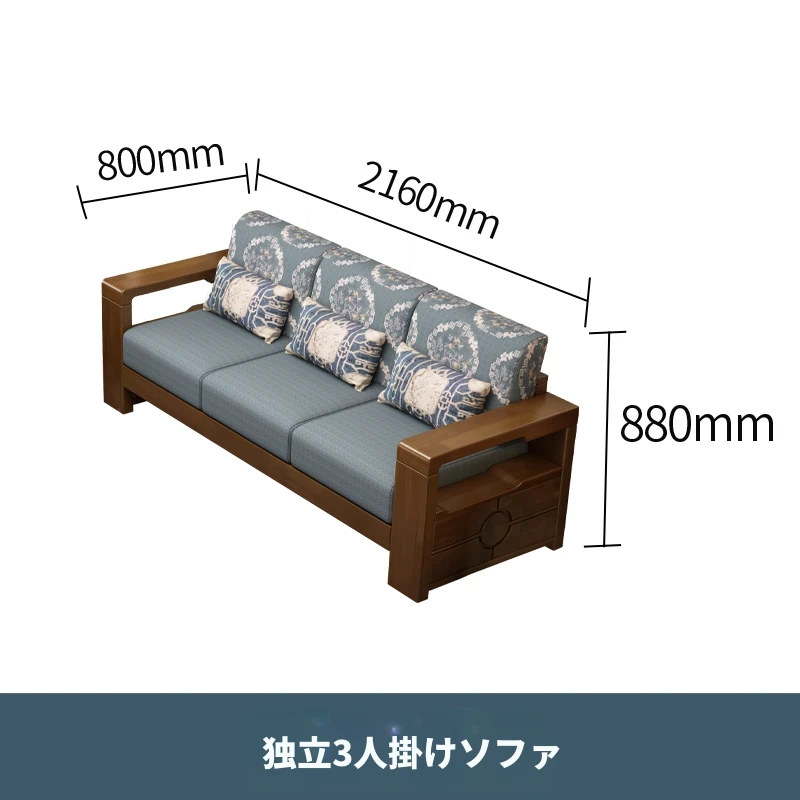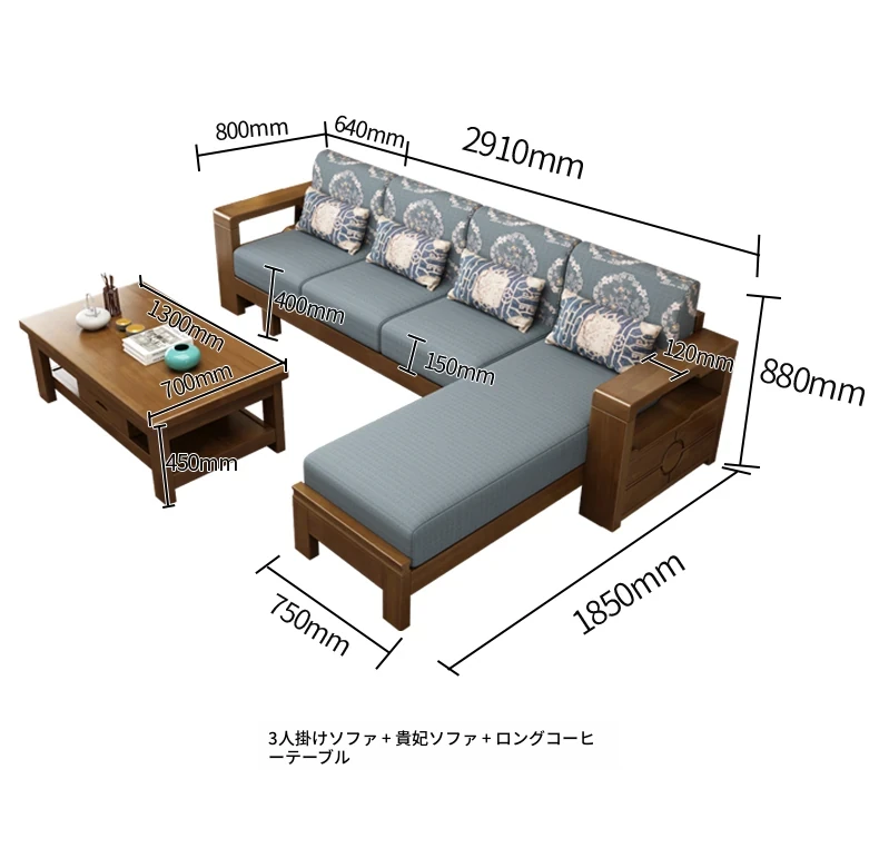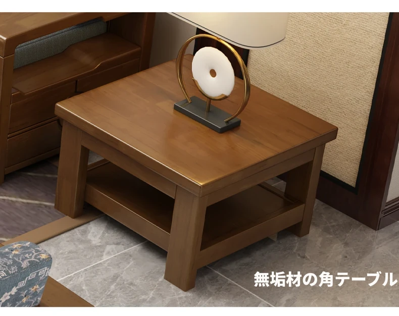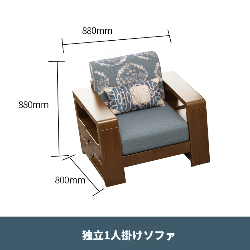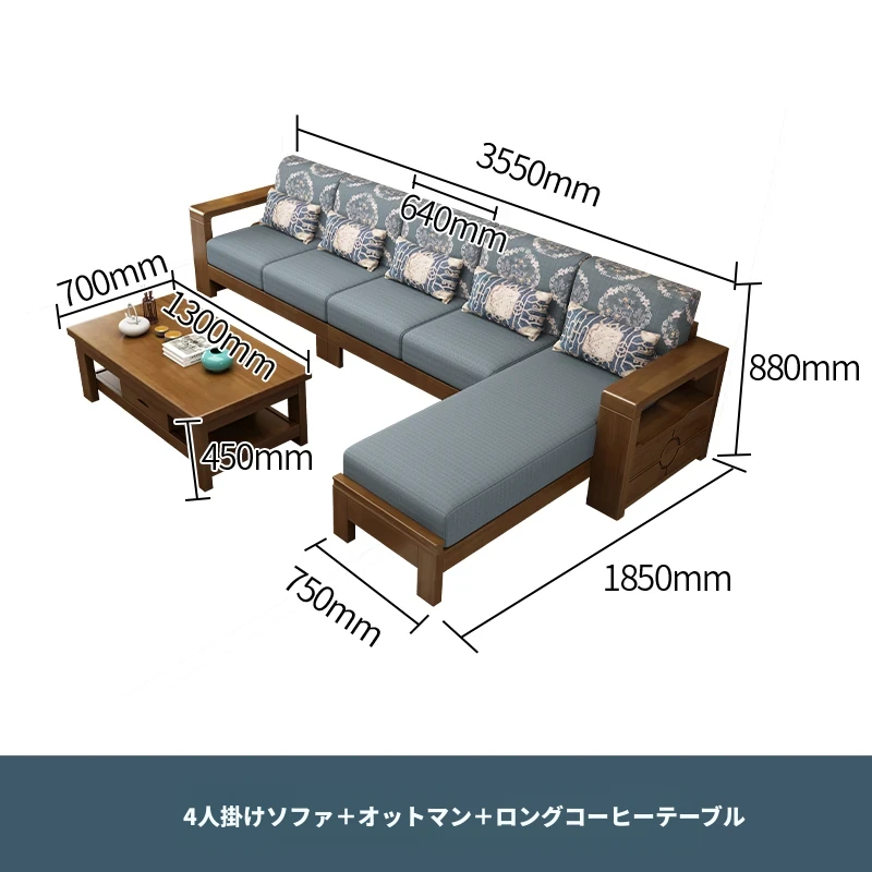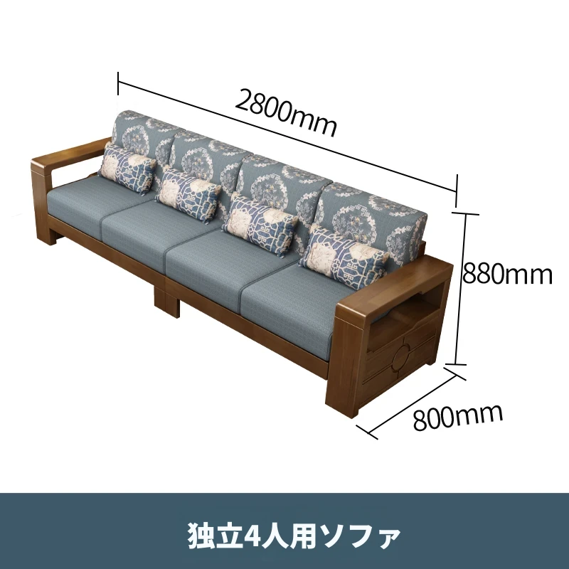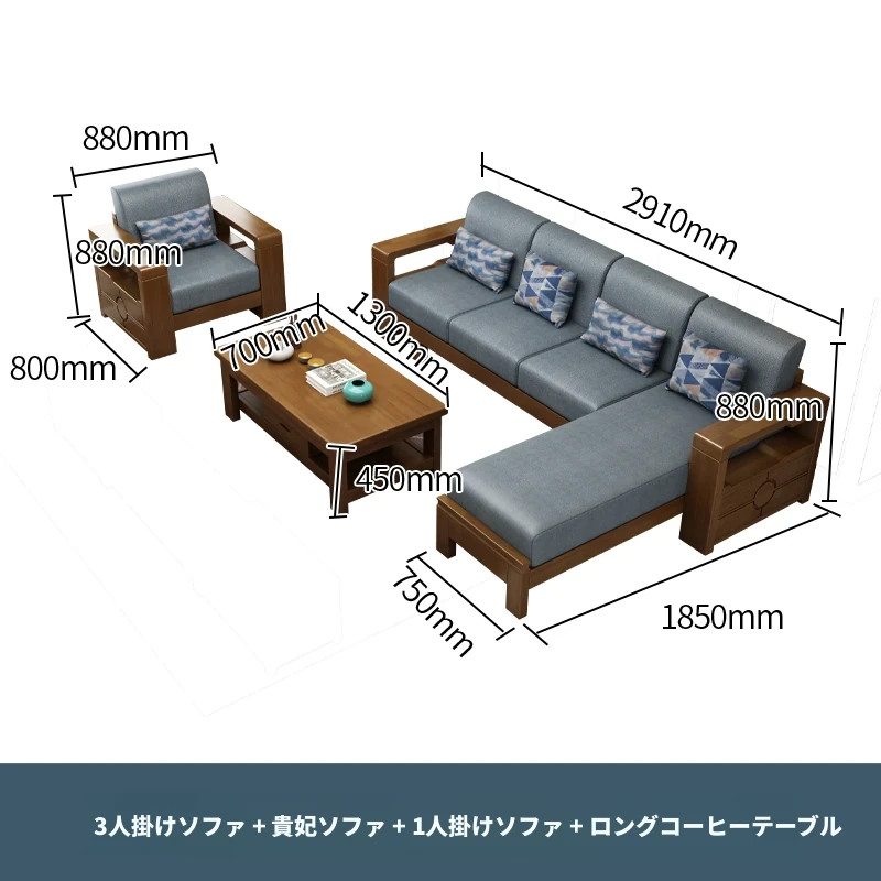 9W中式リビングルーム用原木ソファコーナーセット - ファブリック仕様の高級デイベッド付き3人掛けソファ、全実木製で高品質!