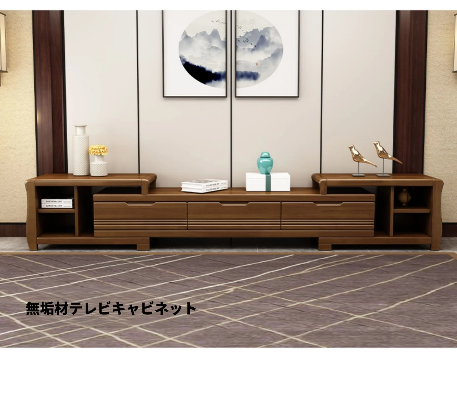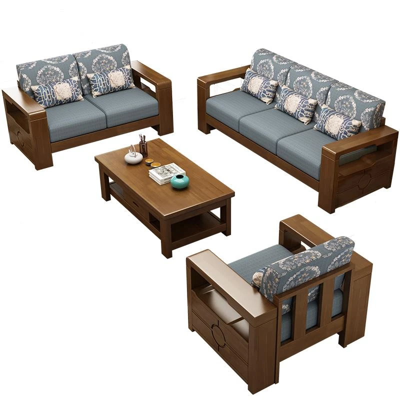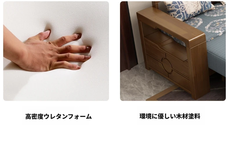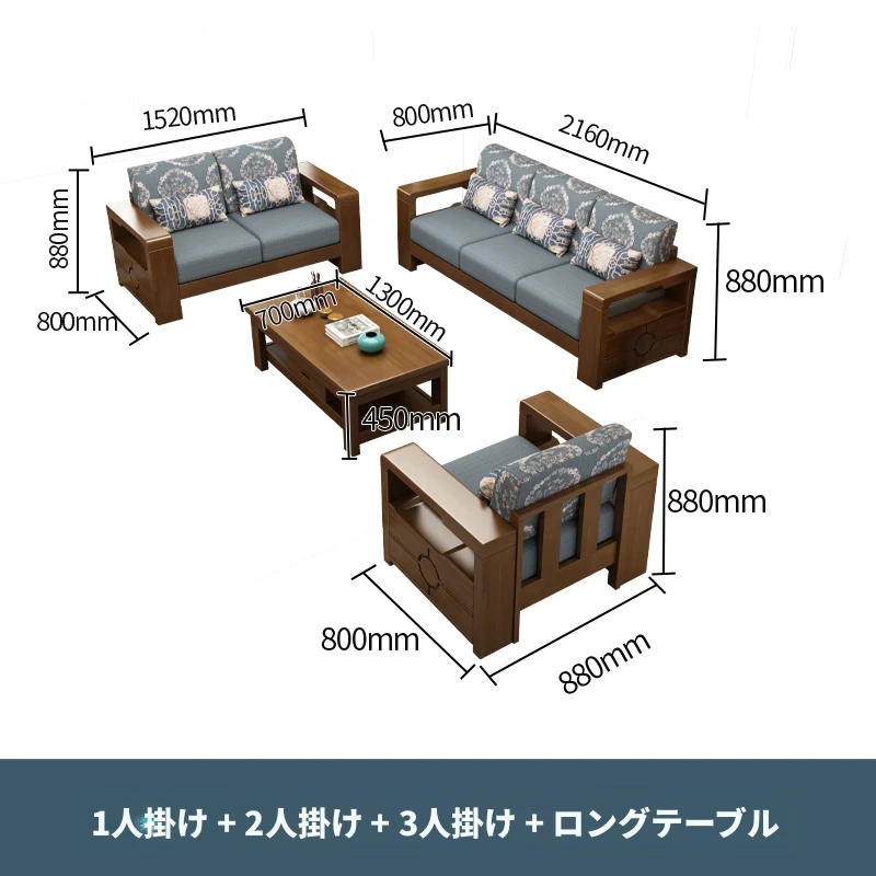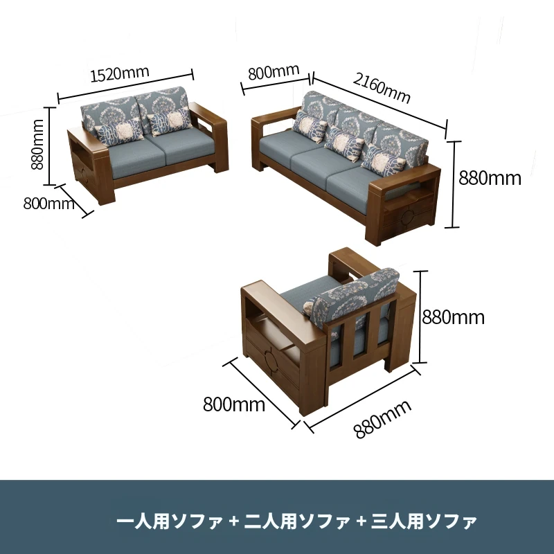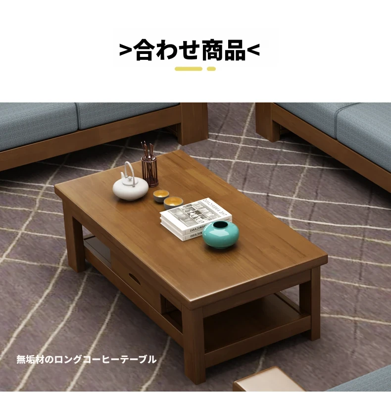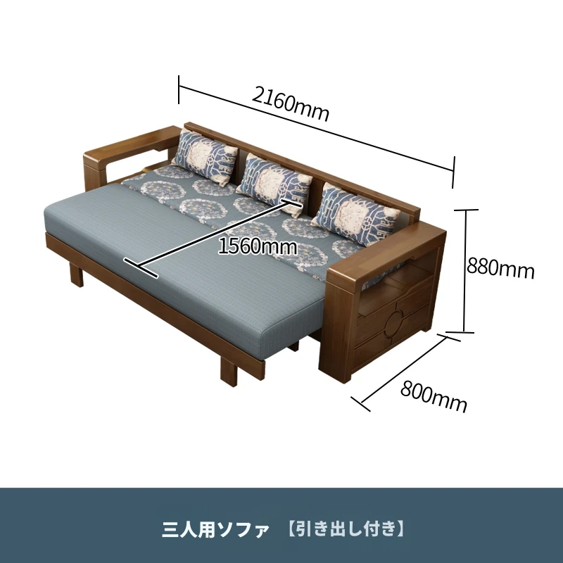 9W中式リビングルーム用原木ソファコーナーセット - ファブリック仕様の高級デイベッド付き3人掛けソファ、全実木製で高品質!