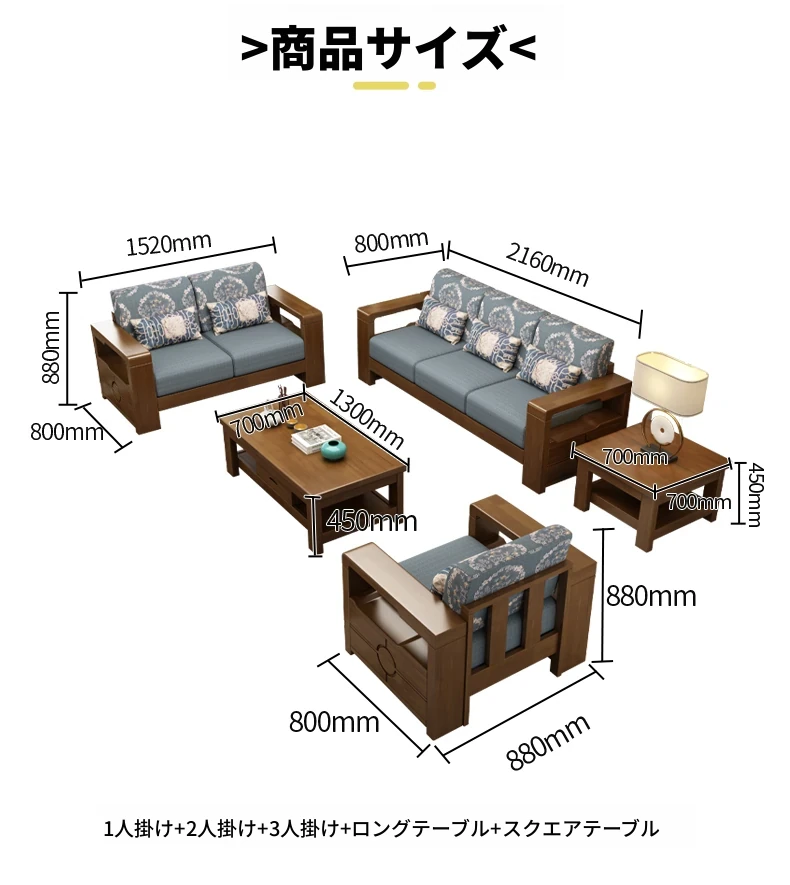 三人掛け+貴妃椅+一人掛け+長テーブル