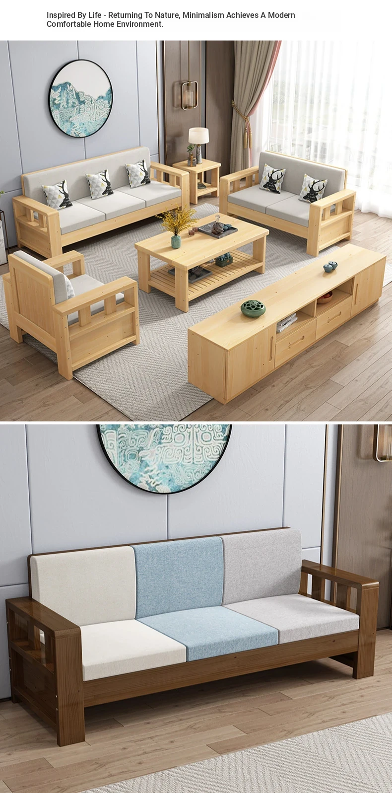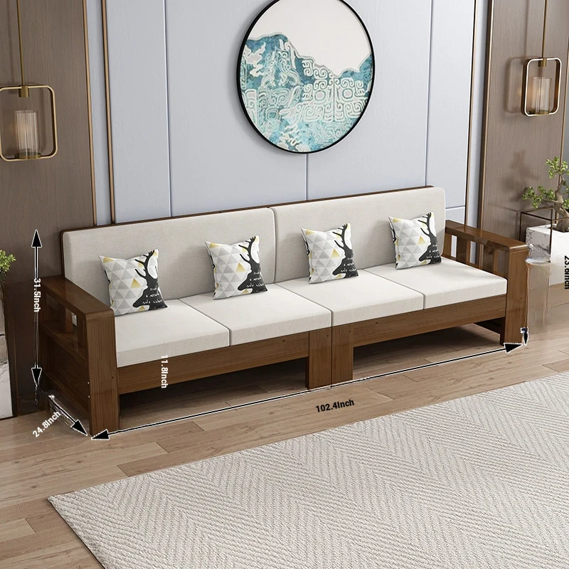 A-12581 Solid Wood Sofa Set - Minimalist Design for Living Room, Versatile for Winter & Summer, Compact Size for Budget-Friendly Homes