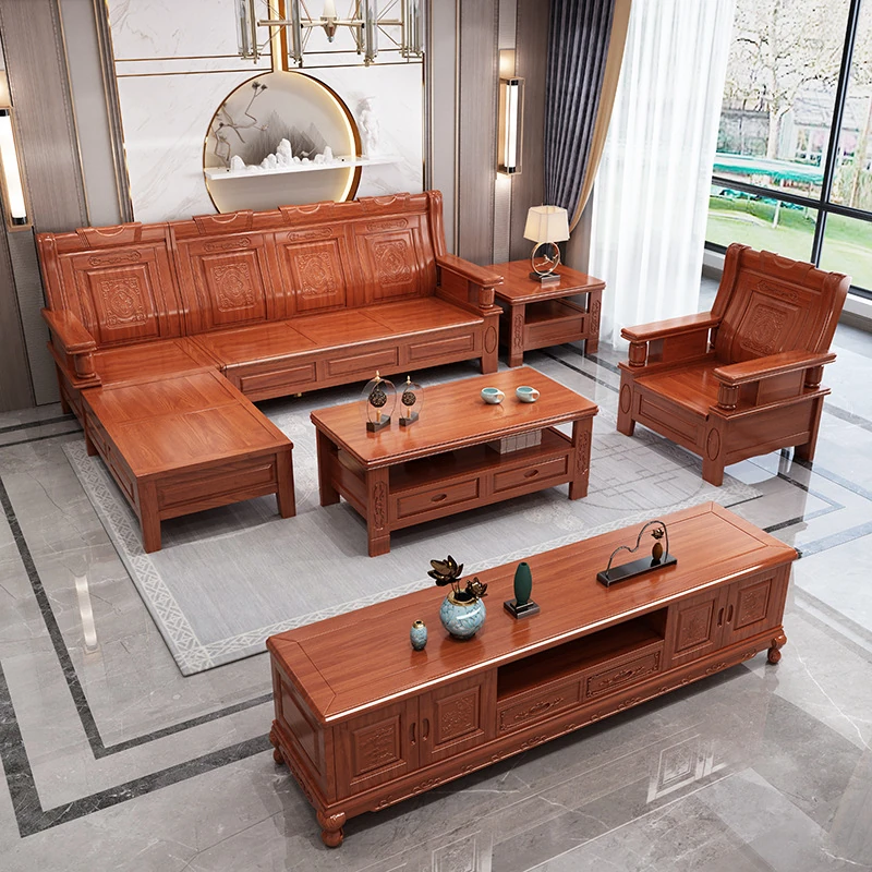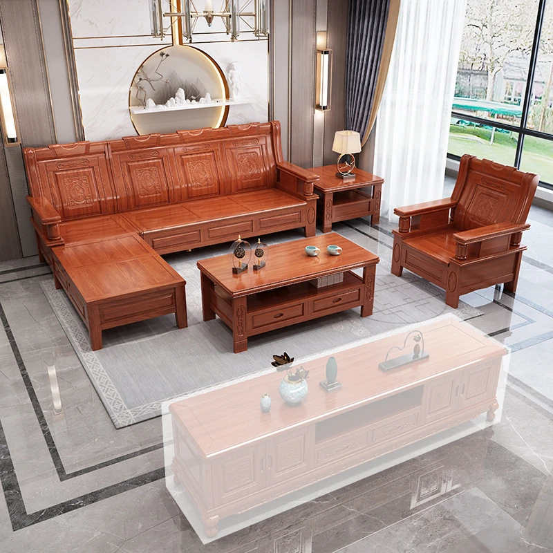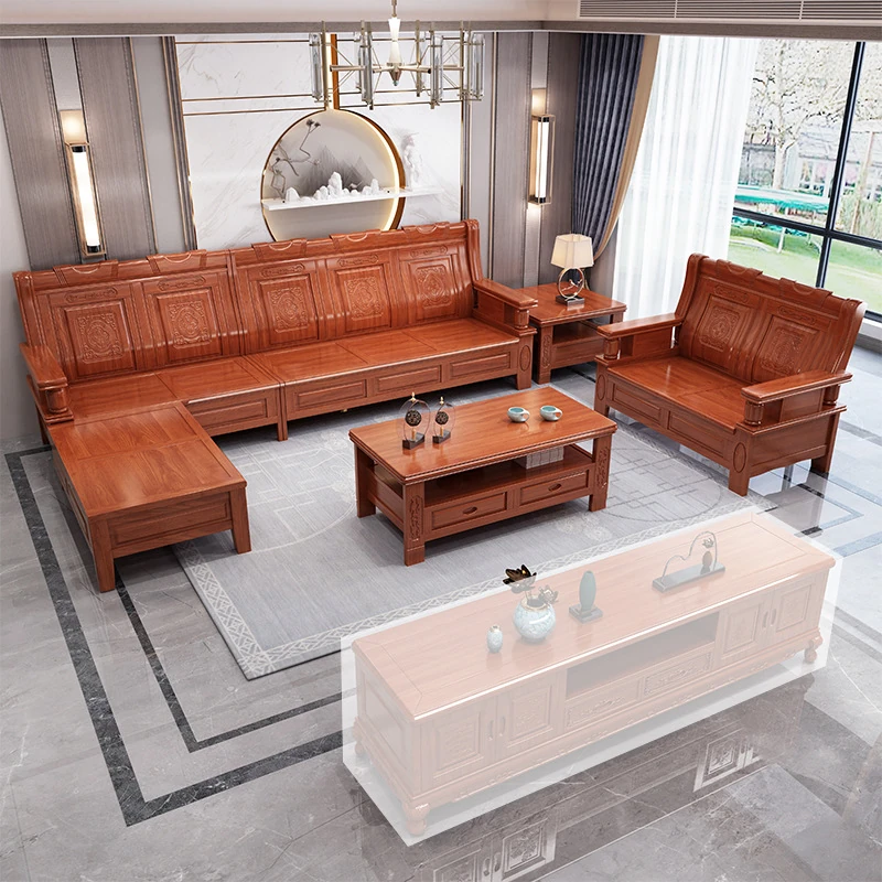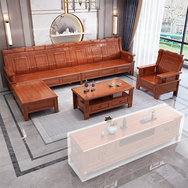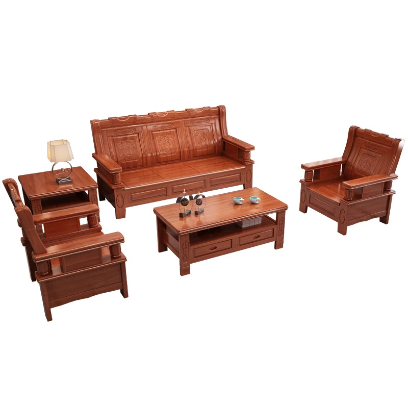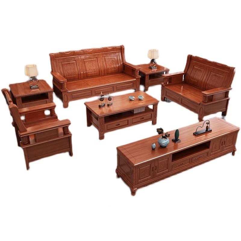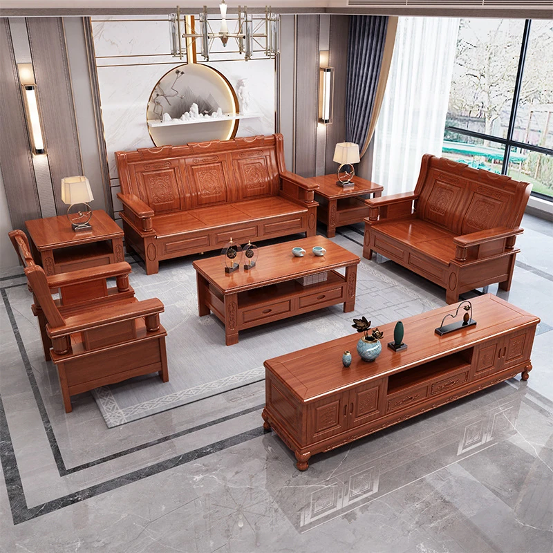 古風中式全実木ソファ「吉祥如意」—田舎のリビングにぴったりの質感木材使用、冬夏両用の3人掛けセット。温かみのあるデザインで、心安らぐ空間を演出します。