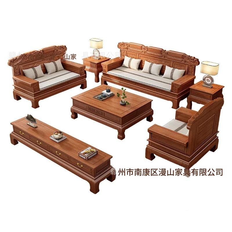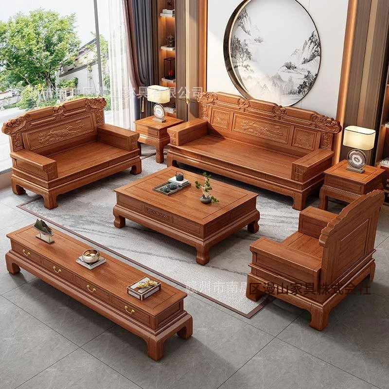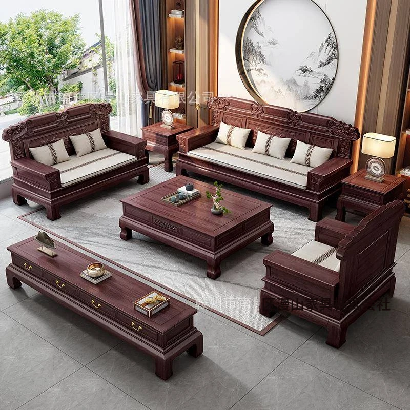 新中式スタイルの高級感あふれる無垢材ソファ、レッドサンダルウッド製。小型リビングに最適な多機能カウチソファセット。洗練されたデザインで、心地よい空間を演出します。