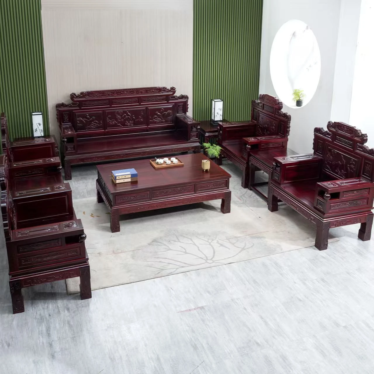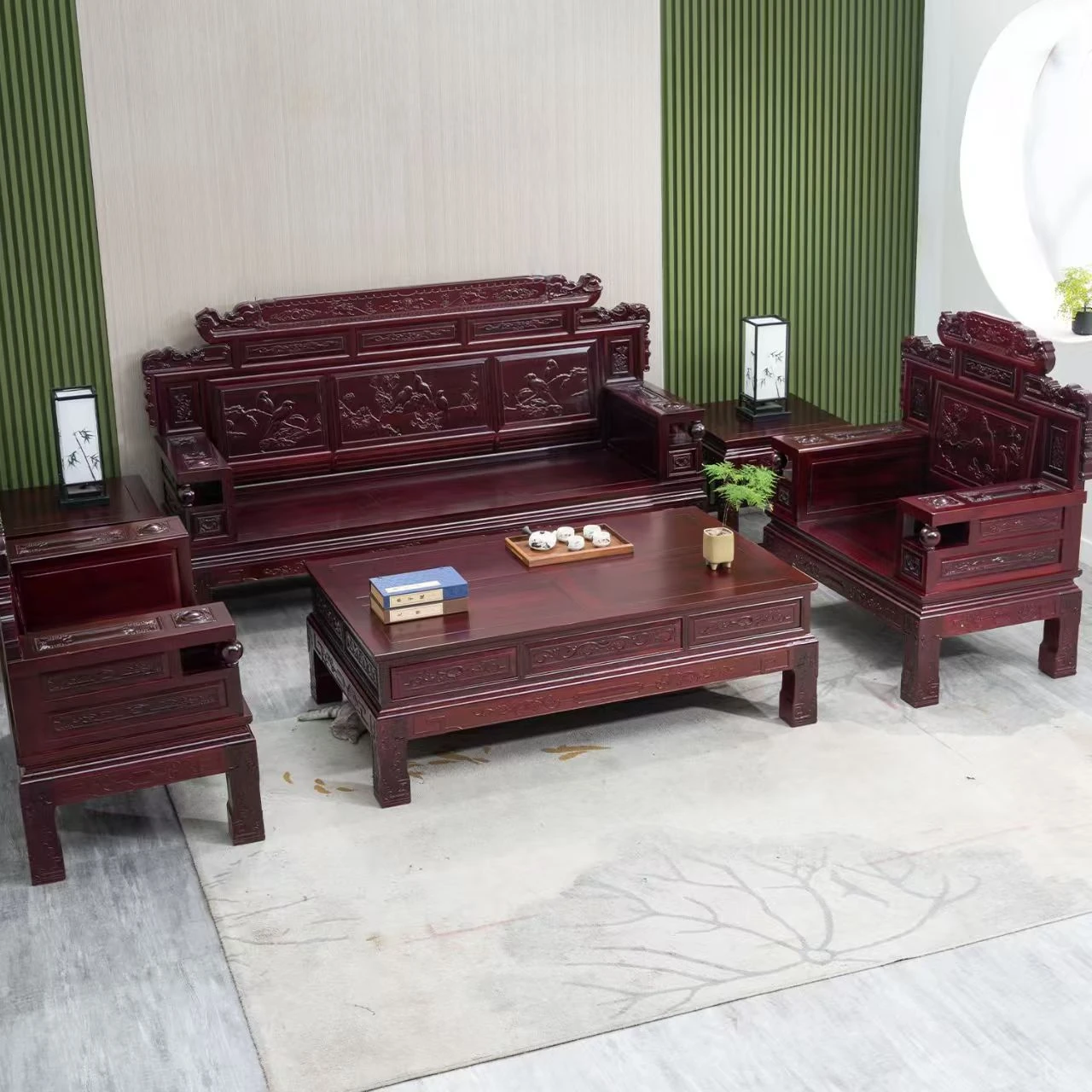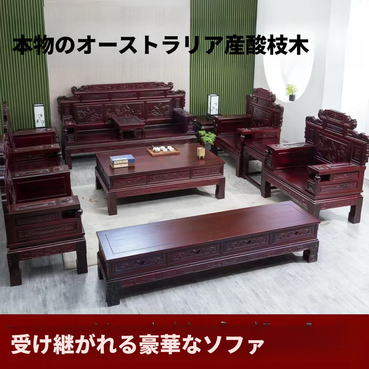 オーストラリア産酸枝木使用 中式豪華実木ソファセット 彫刻デザイン 明清様式 古典風格 仿紅木 別荘向けリビング家具 最高の品質と贅沢なデザインで、あなたの空間を華やかに演出!