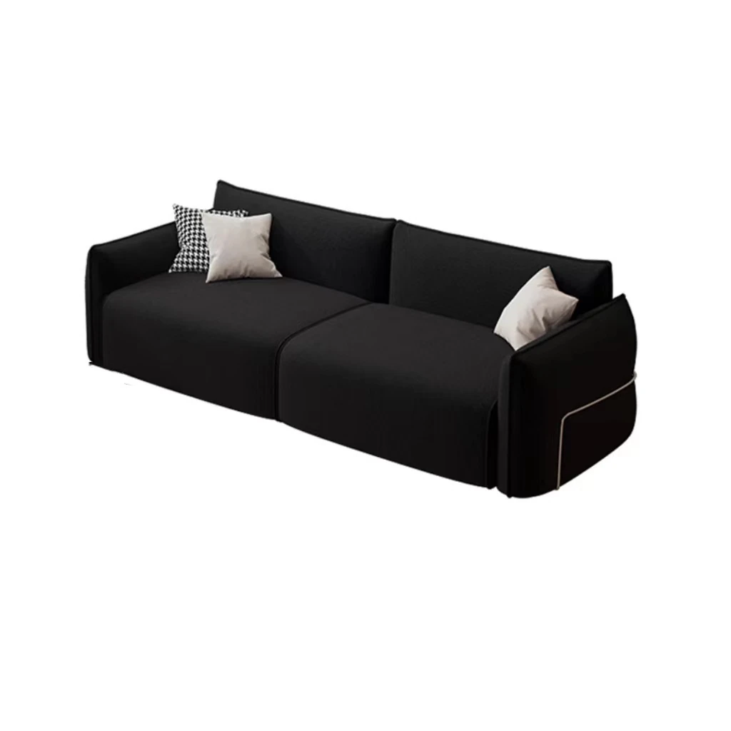 バウハウススタイルのミニマリストソファ - 侘び寂びデザインのリビング用3人掛けソファ。モダンな布製のダブルシープスキンソファで、居心地の良さとスタイリッシュさを兼ね備えています。