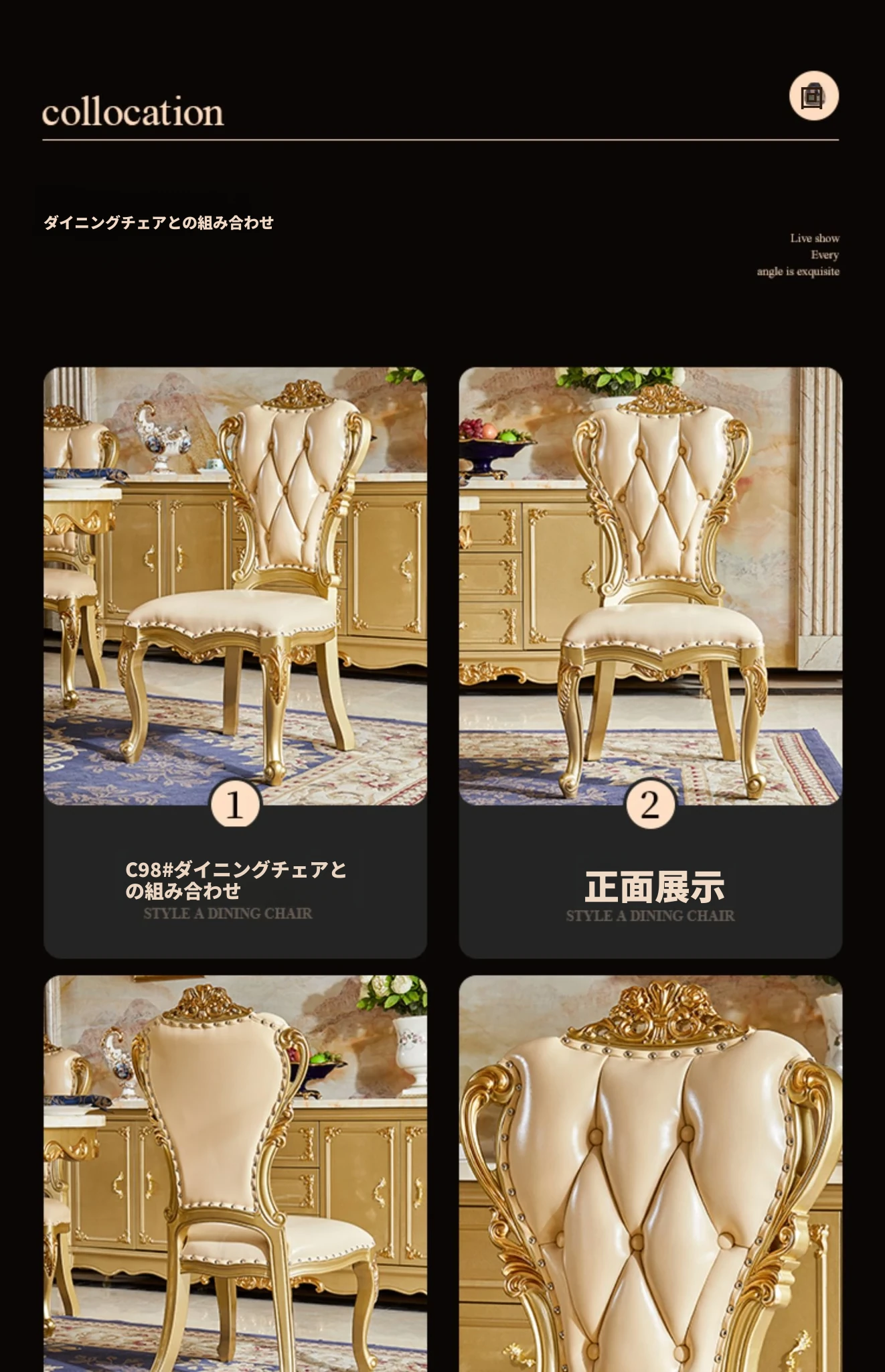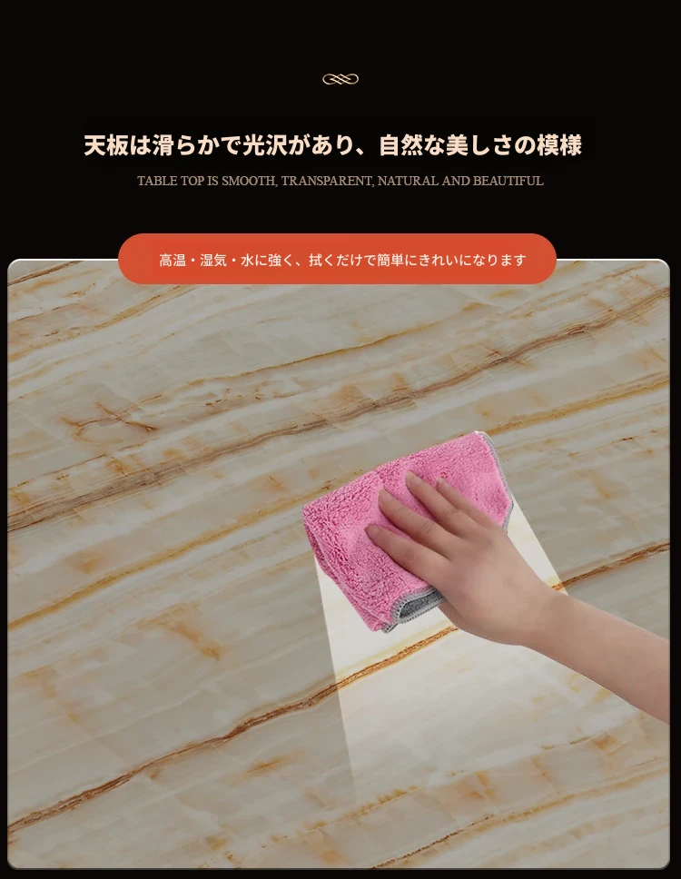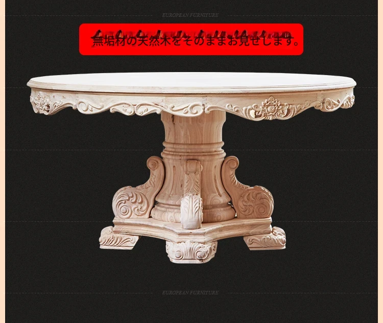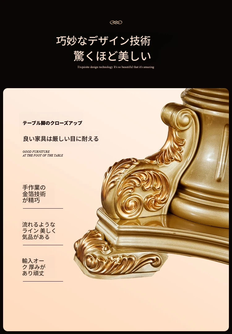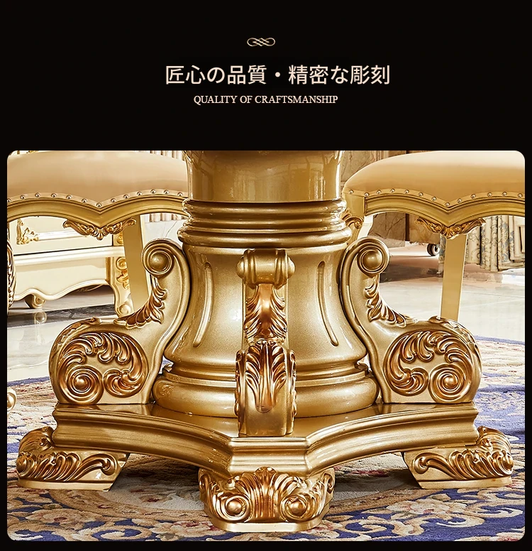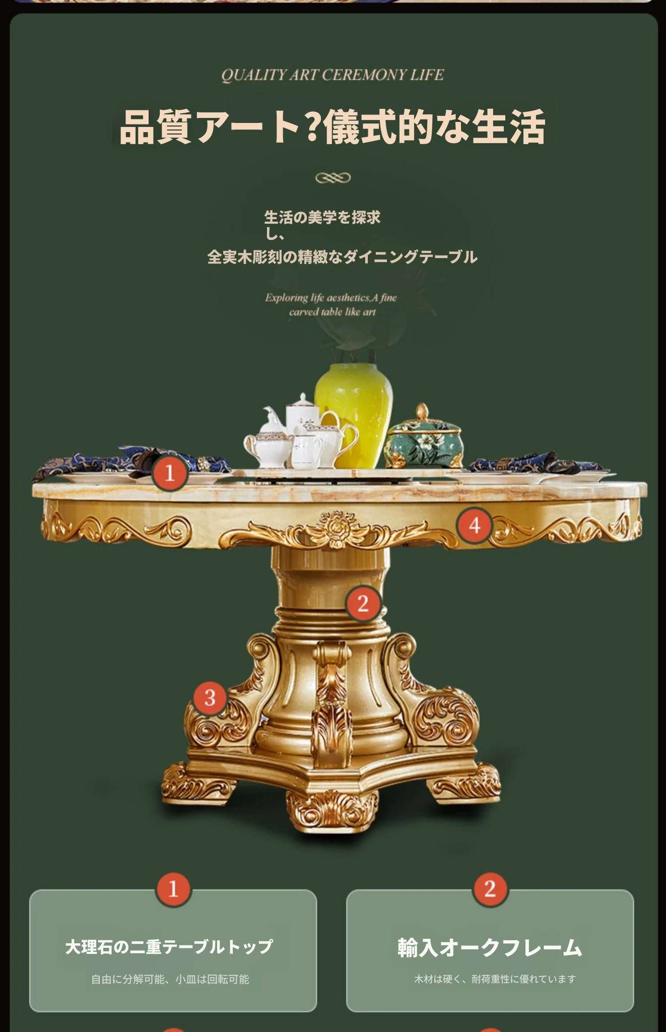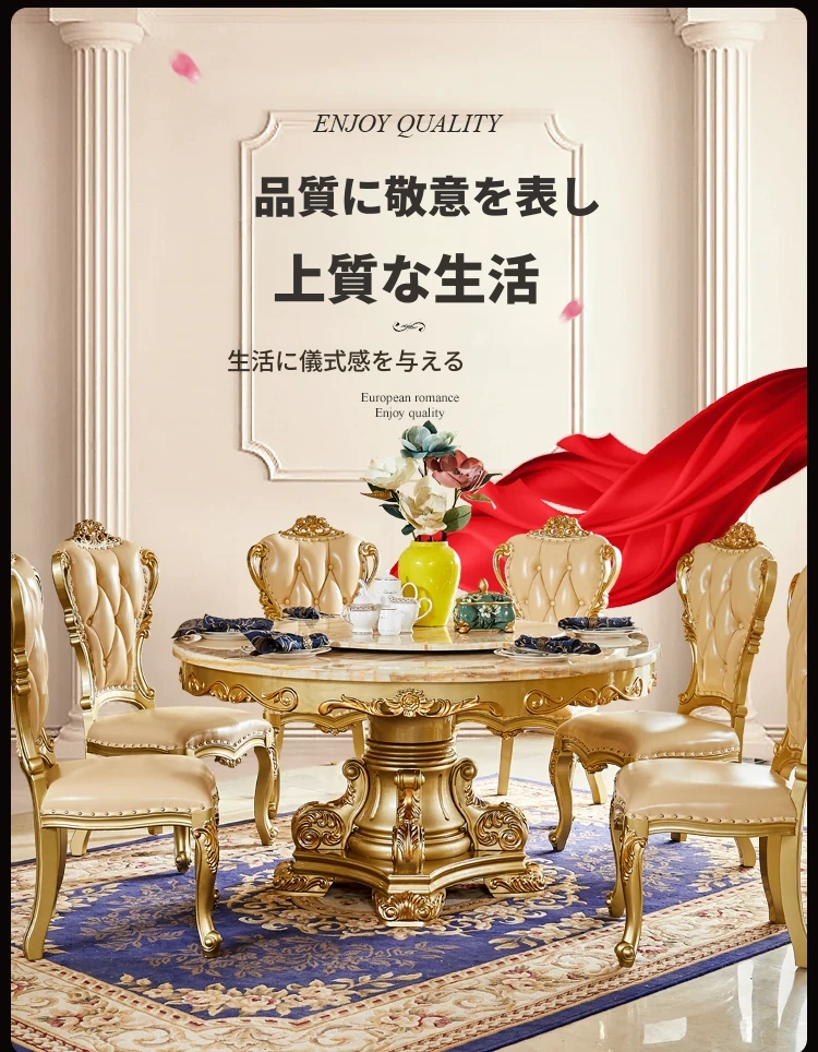 エレガントな欧式大理石ダイニングテーブル - ラウンドデザインの実木製、シャンパンカラー、回転式ターンテーブル付き。洗練された軽やかな雰囲気を演出し、家族や友人との特別な食卓を彩ります!