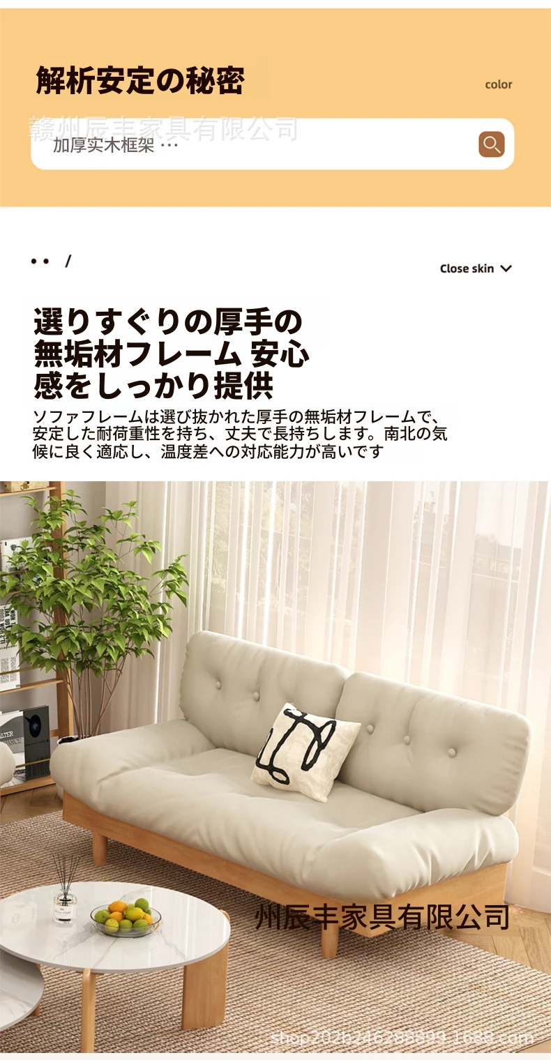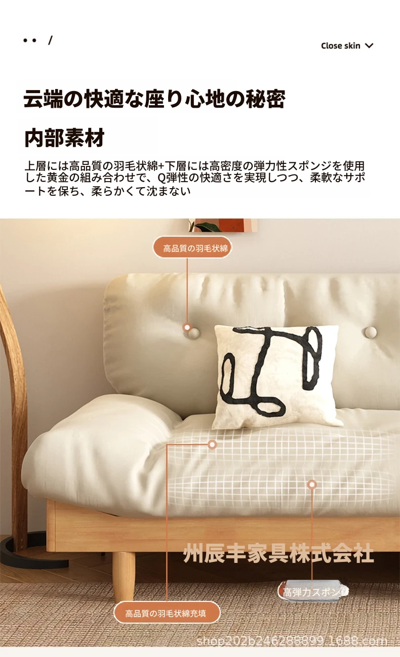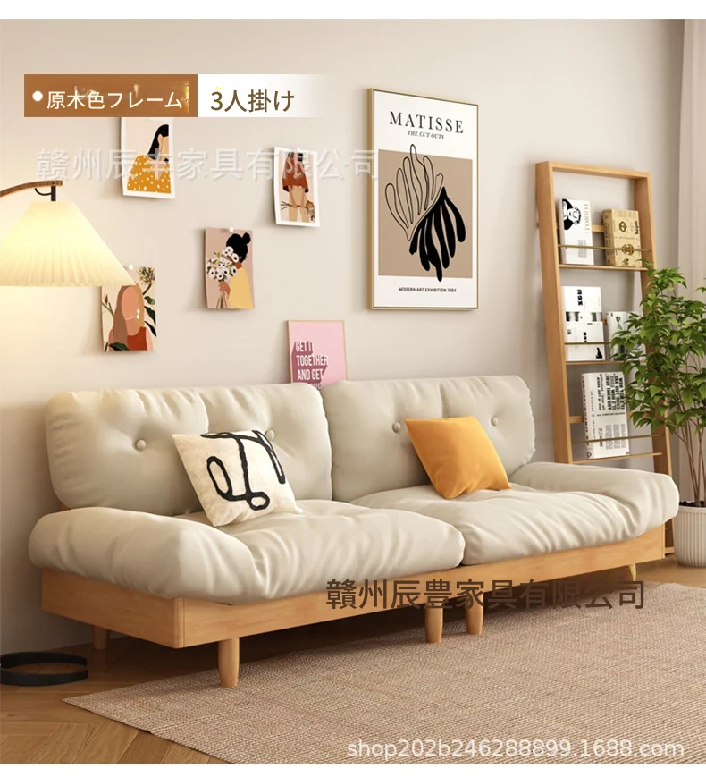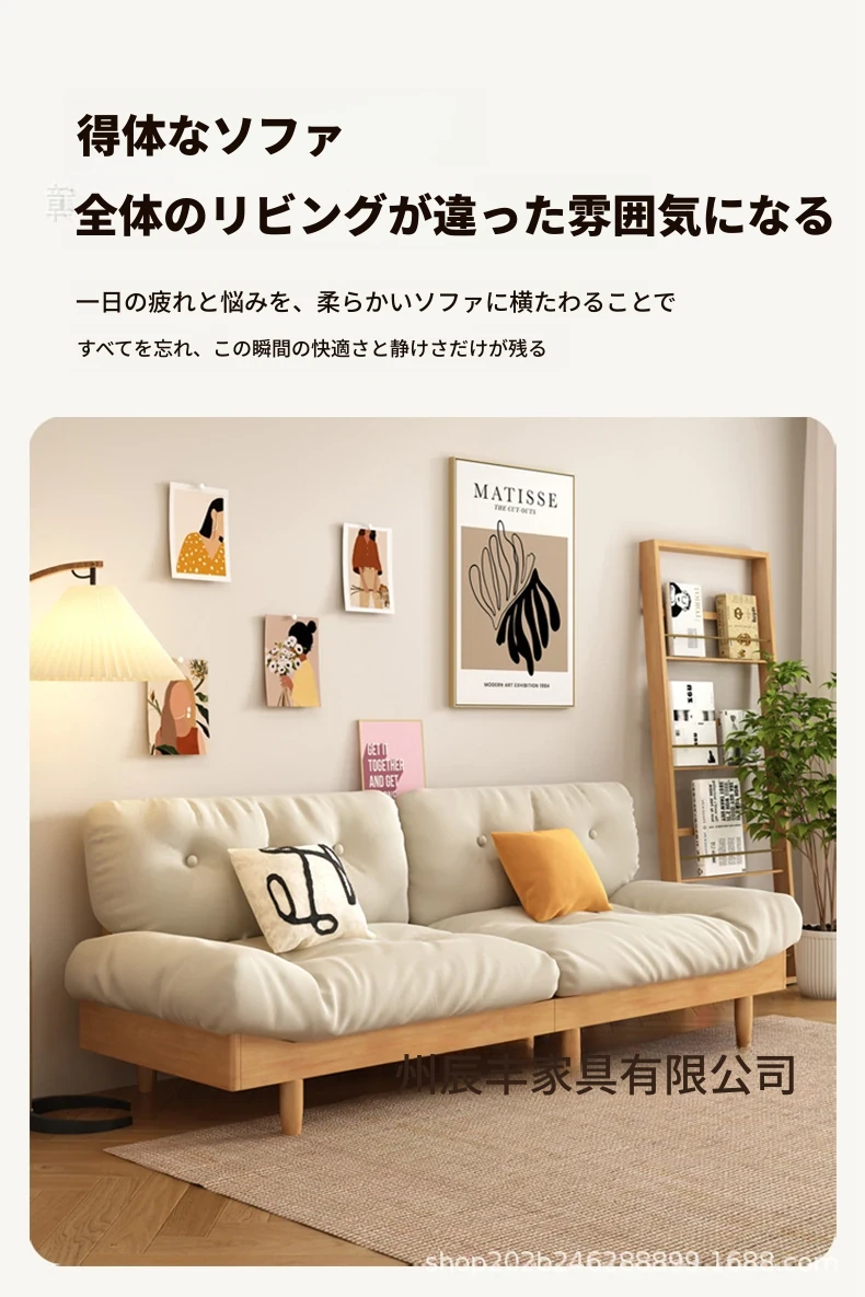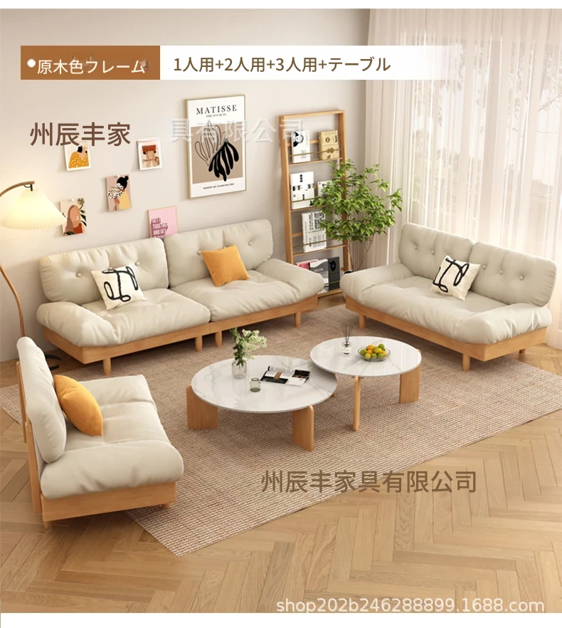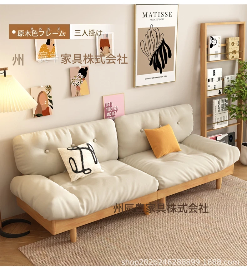雲のようなソファ|シンプルな和風デザインの無垢材3人掛けソファ|羽毛布地使用|小さなスペースにぴったりな侘寂スタイルのクリームカラーで心地よい空間を演出します!