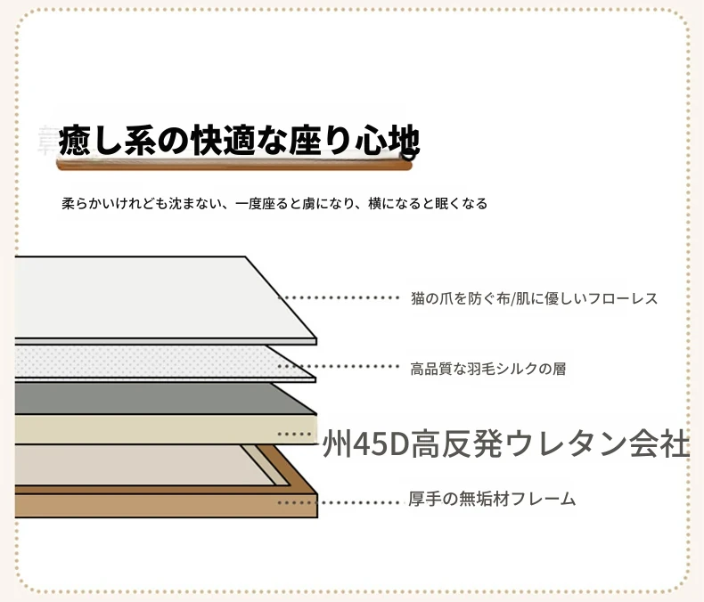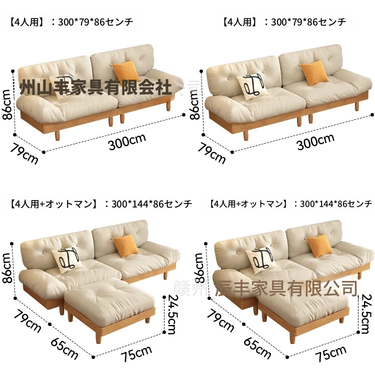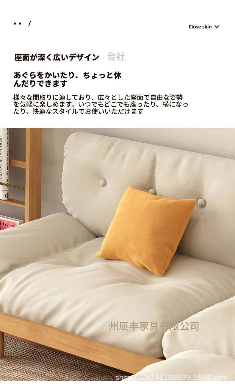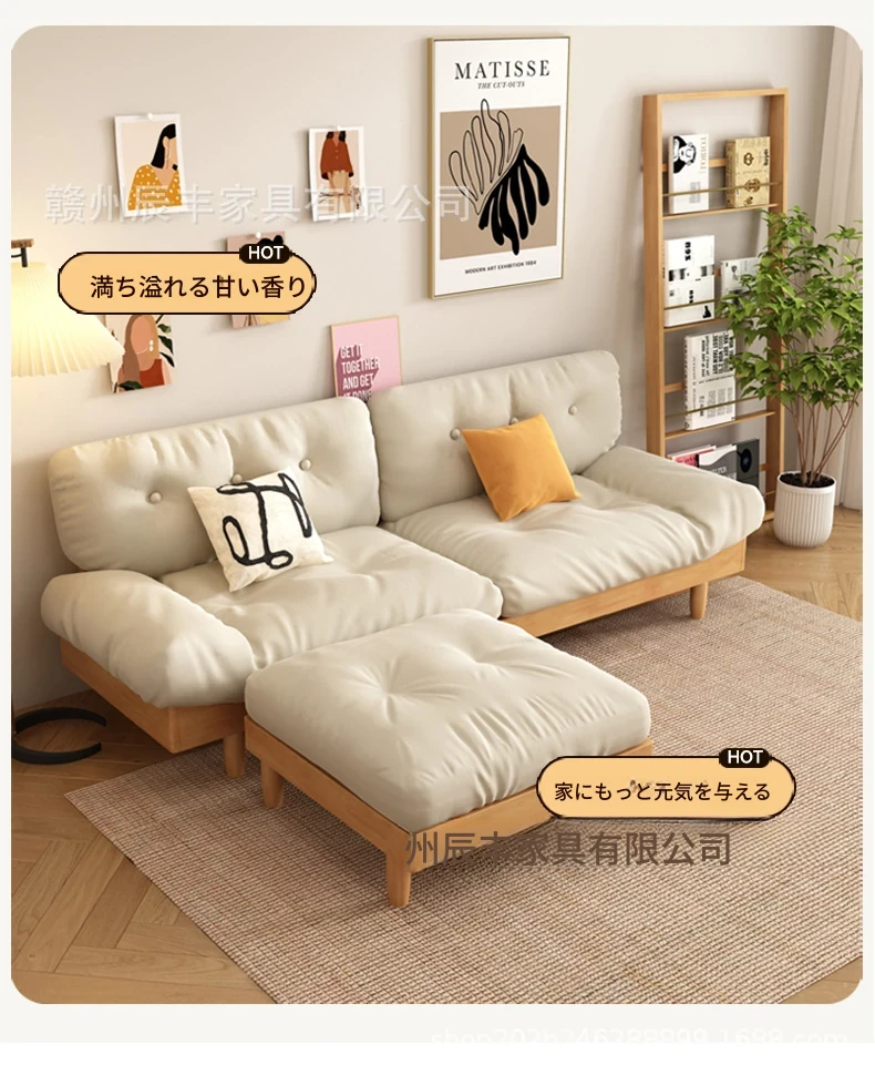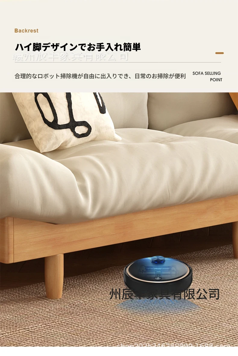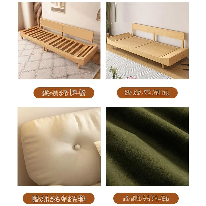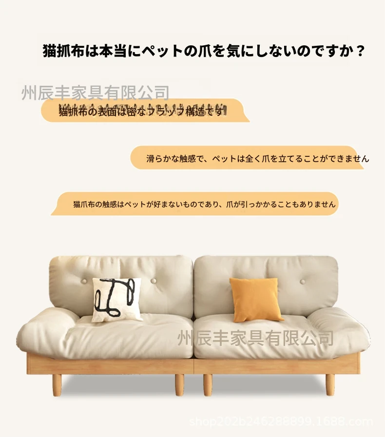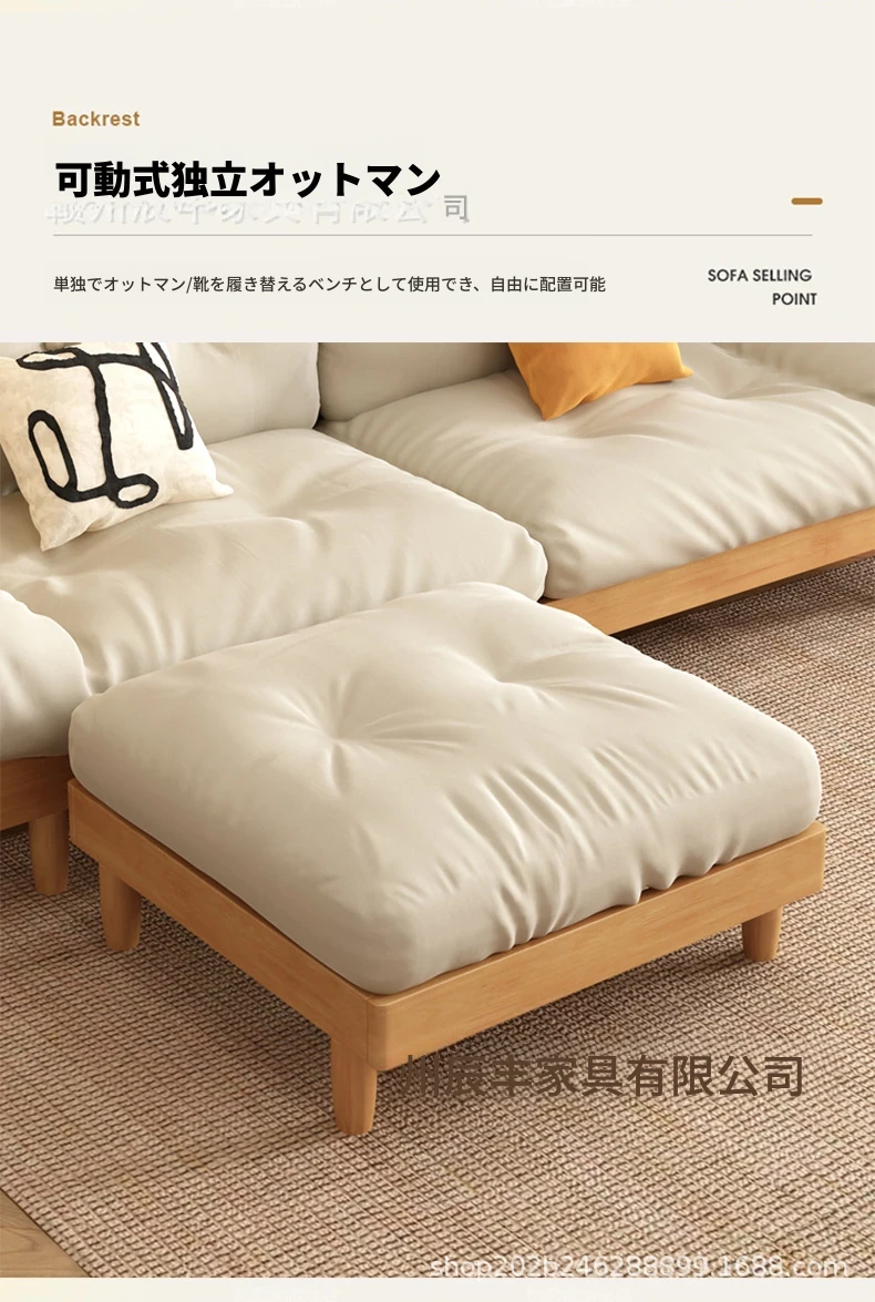 雲のようなソファ|シンプルな和風デザインの無垢材3人掛けソファ|羽毛布地使用|小さなスペースにぴったりな侘寂スタイルのクリームカラーで心地よい空間を演出します!