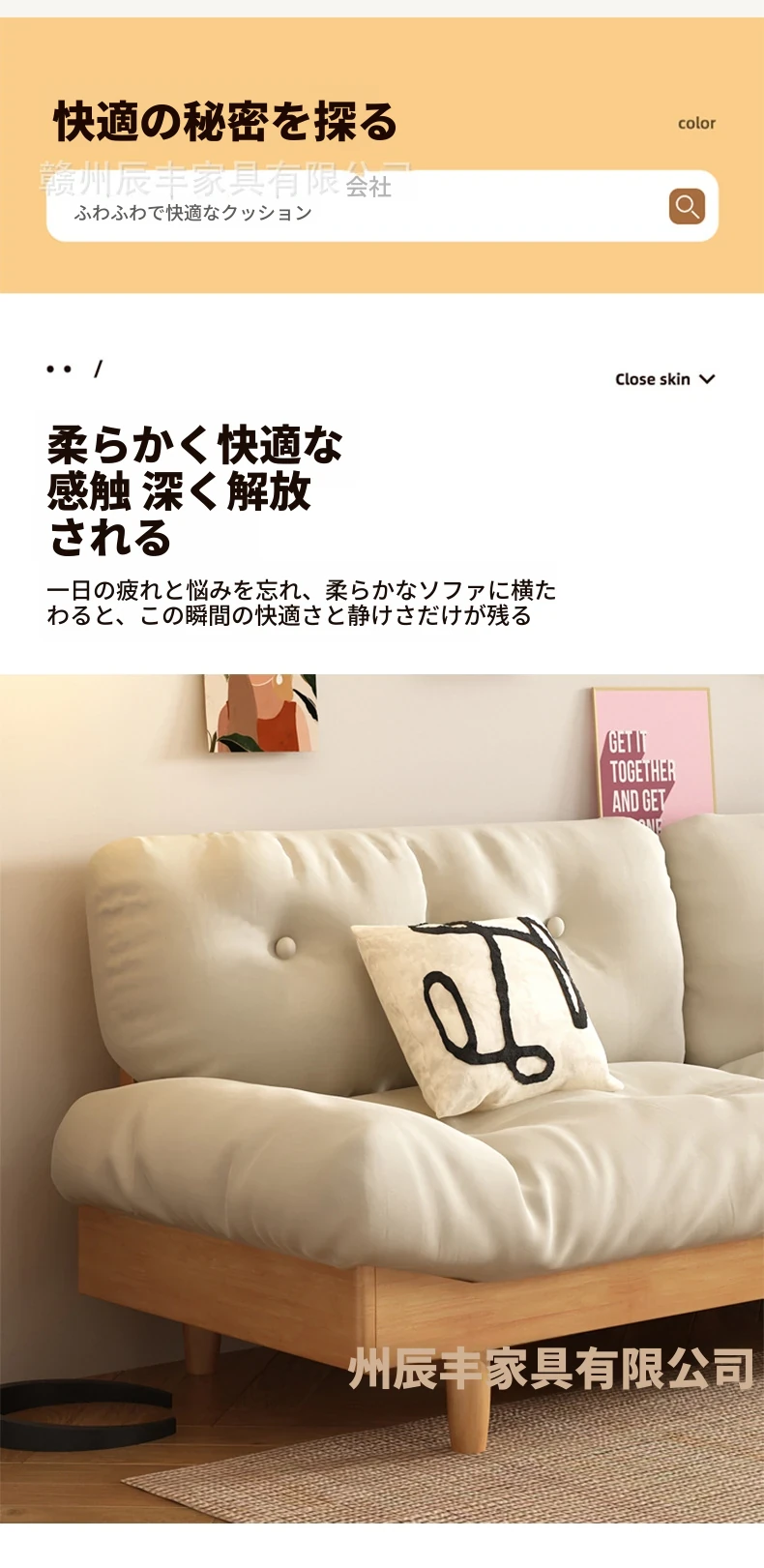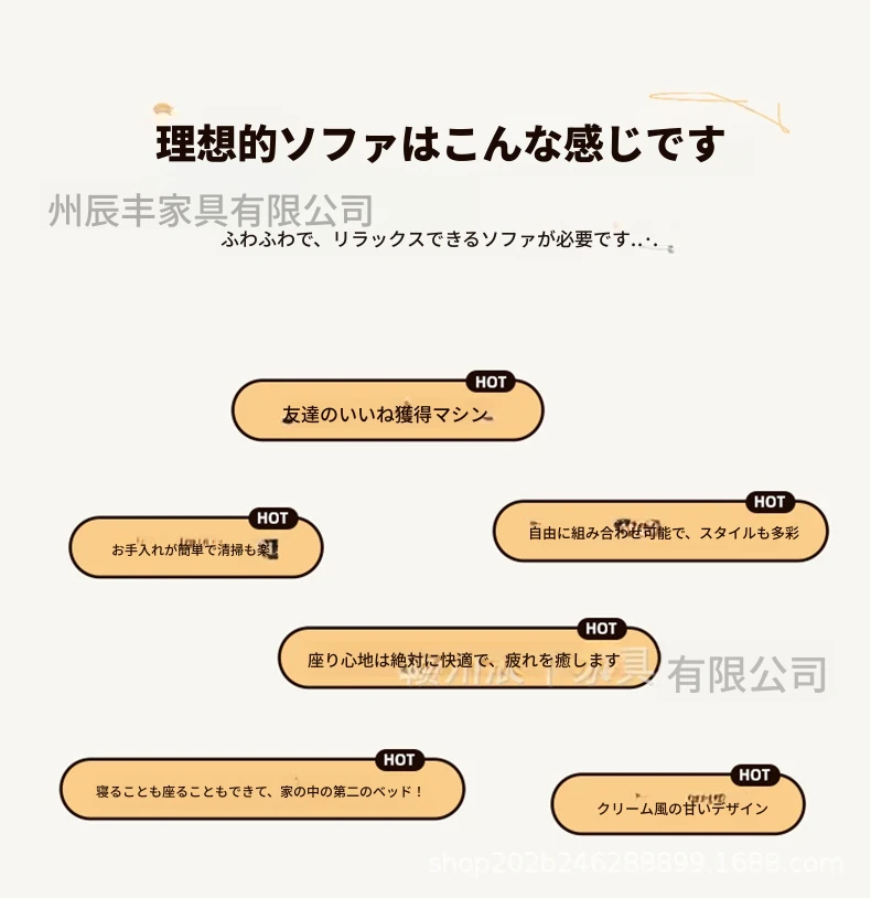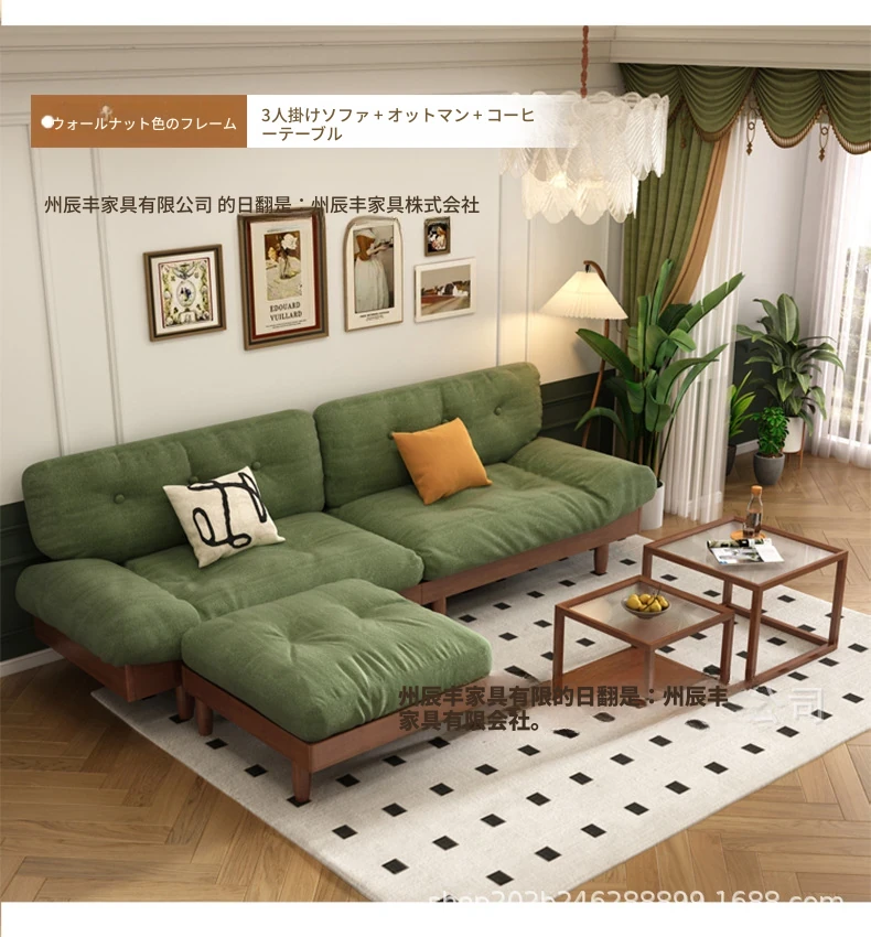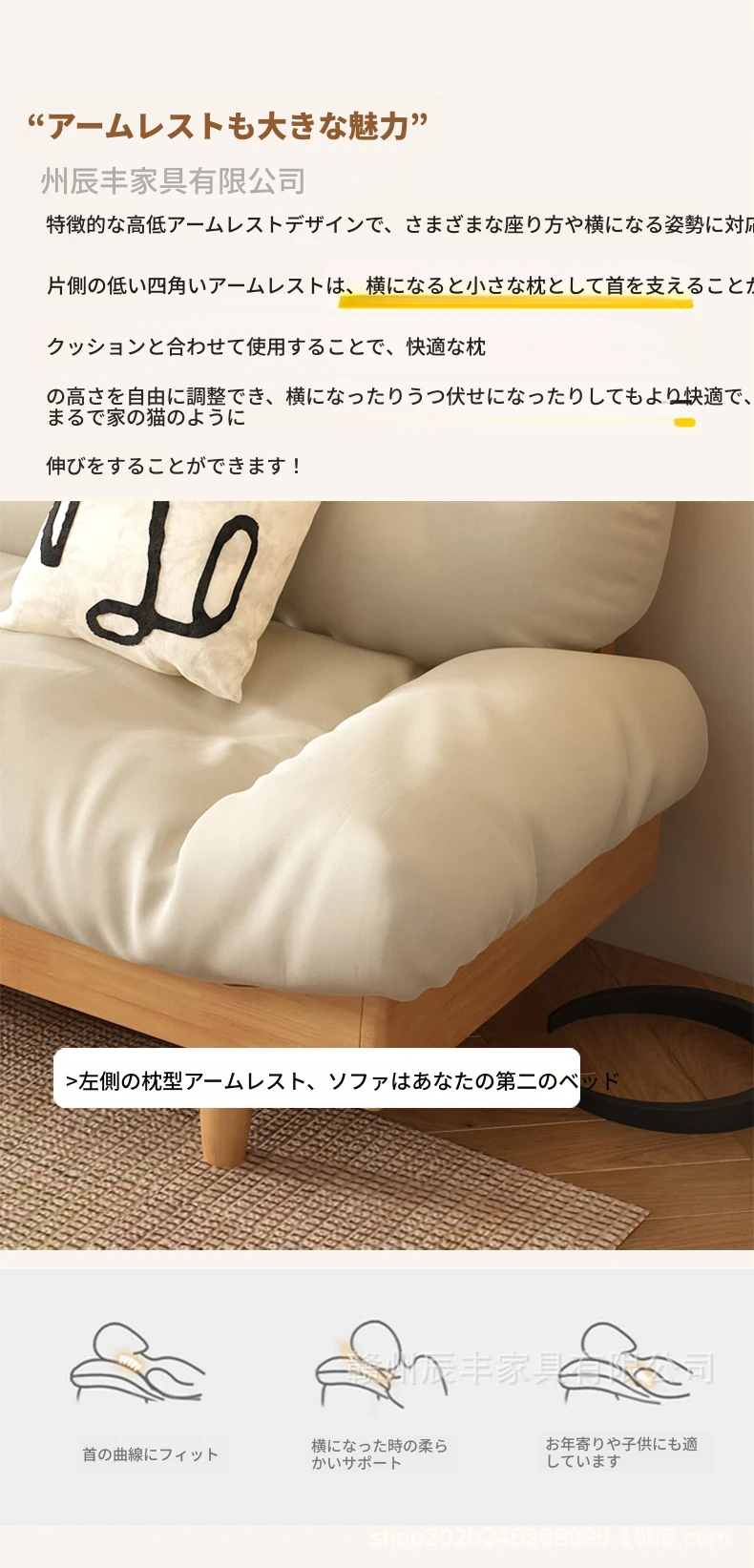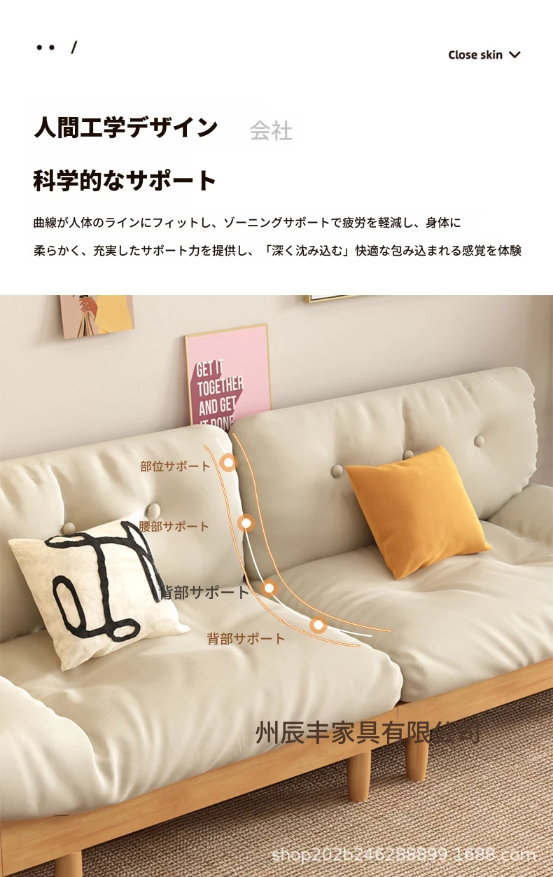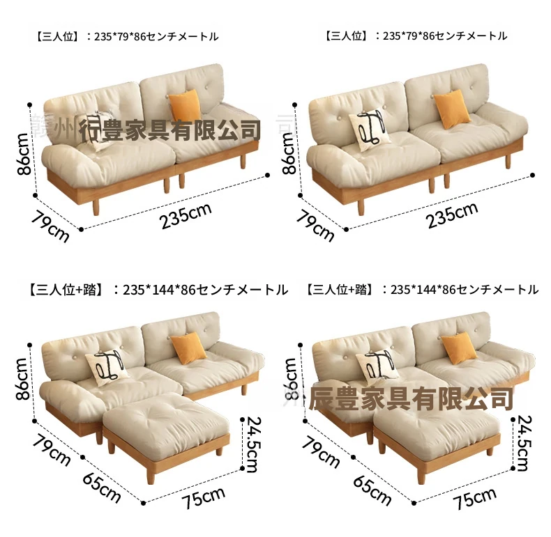 雲のようなソファ|シンプルな和風デザインの無垢材3人掛けソファ|羽毛布地使用|小さなスペースにぴったりな侘寂スタイルのクリームカラーで心地よい空間を演出します!