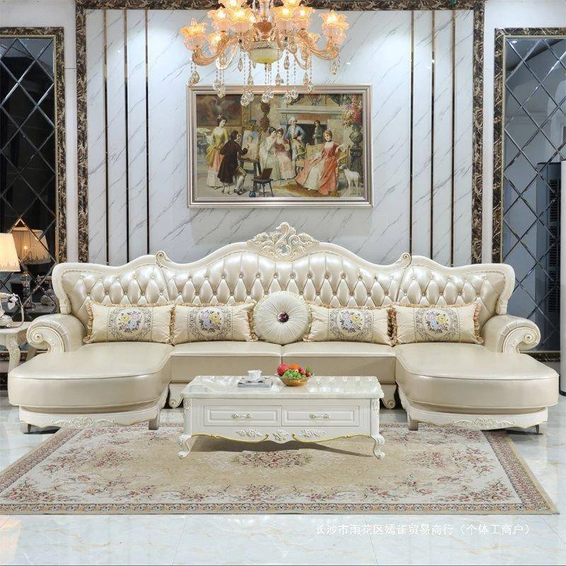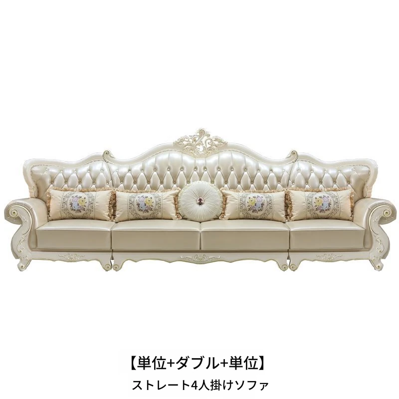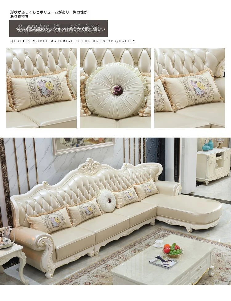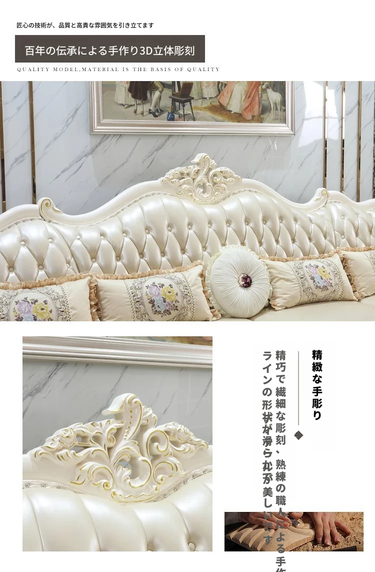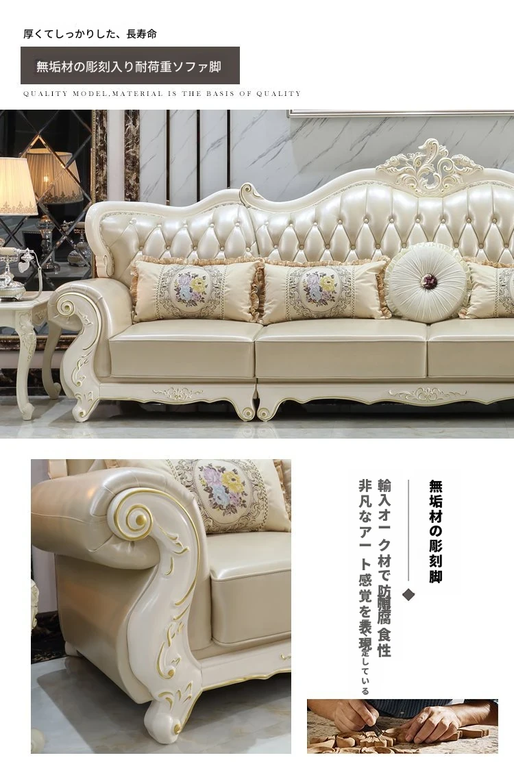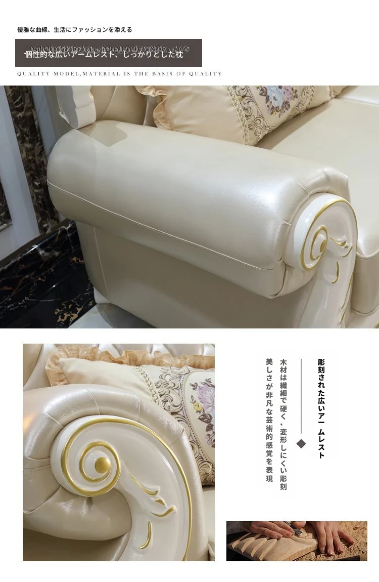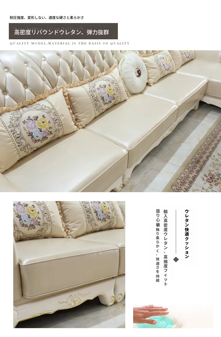 エレガントなヨーロピアンコーナーソファ0688 - 小型リビングに最適!フランス風デザインの4人掛け、全木製のL字型ソファ。スタイリッシュで快適、家族や友人との楽しいひとときを演出します。