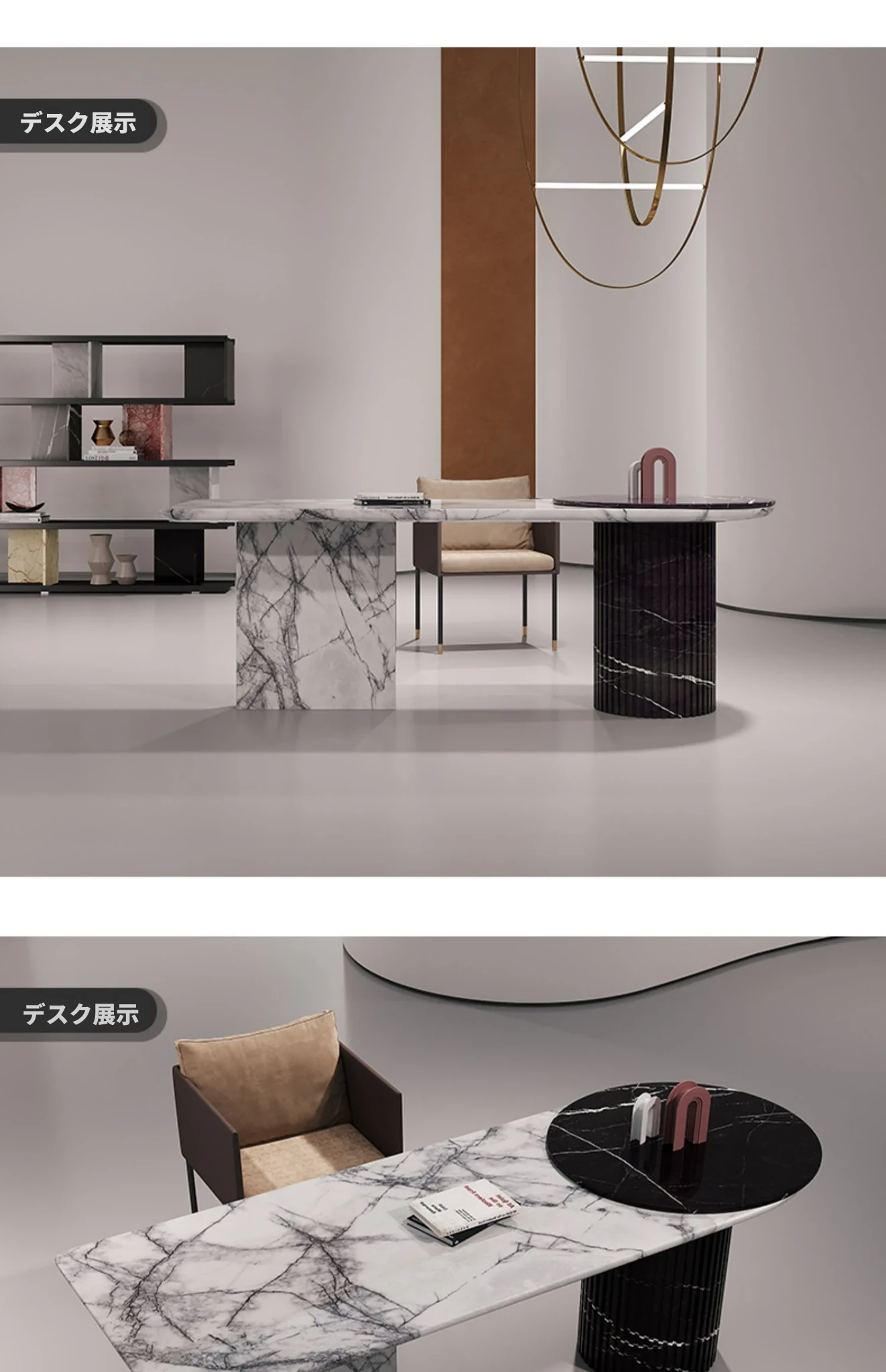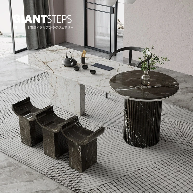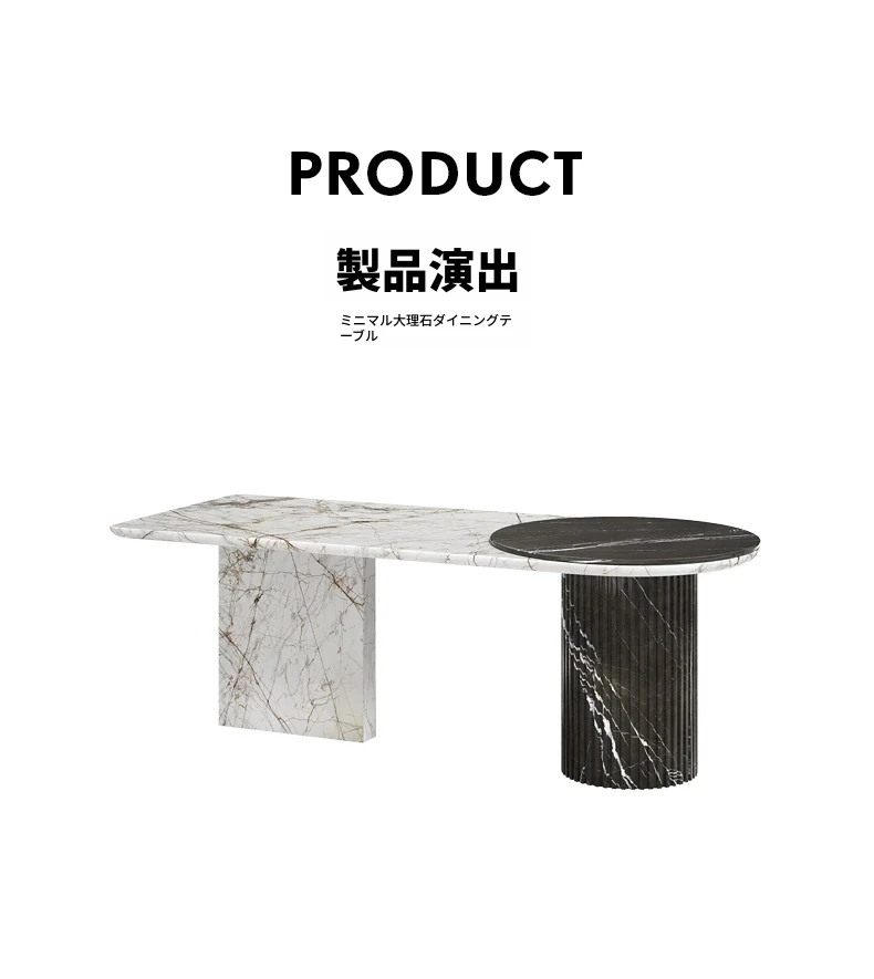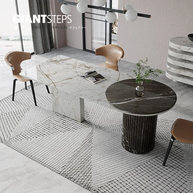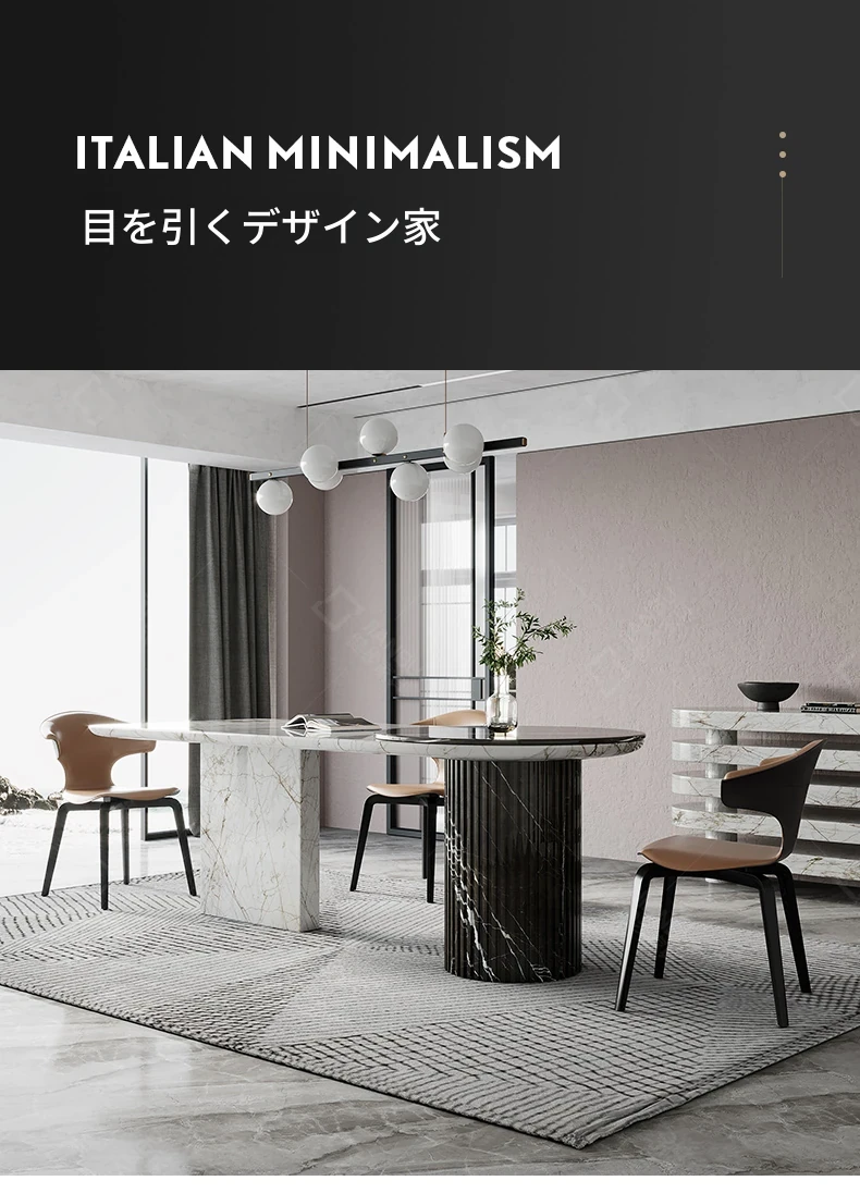 イタリアンミニマル天然大理石ダイニングテーブル&チェアセット|現代的で個性的なデザインの長方形テーブル|高級感あふれる上質なインテリアを演出!