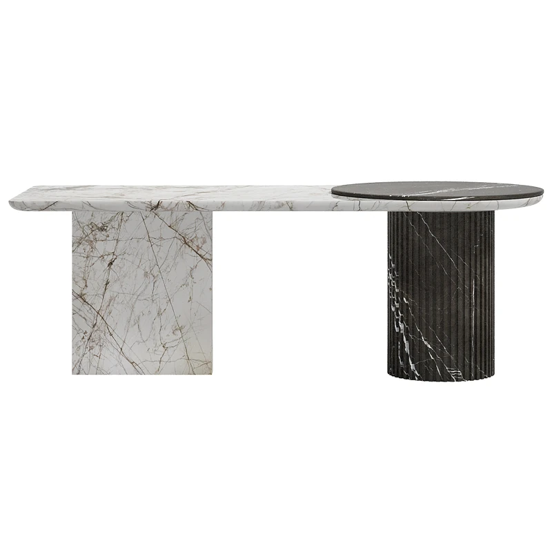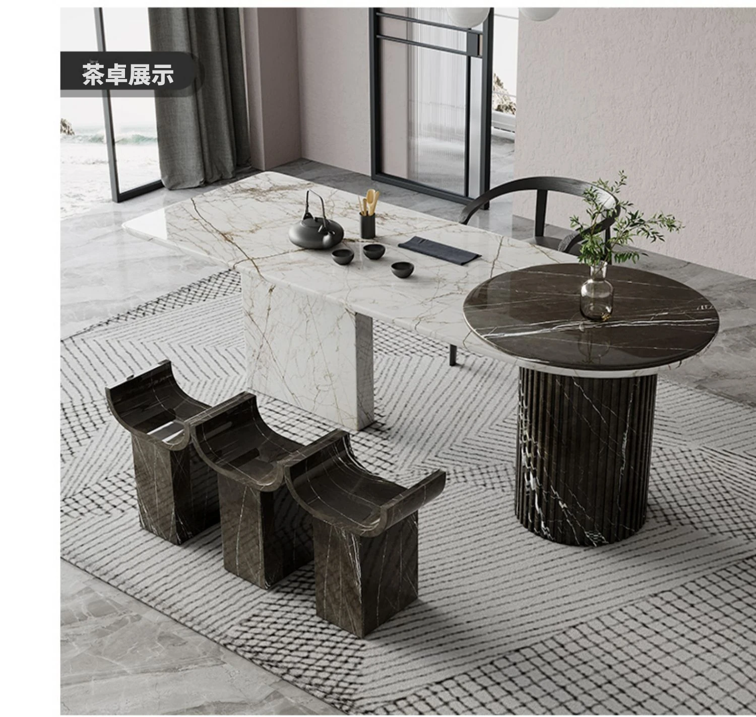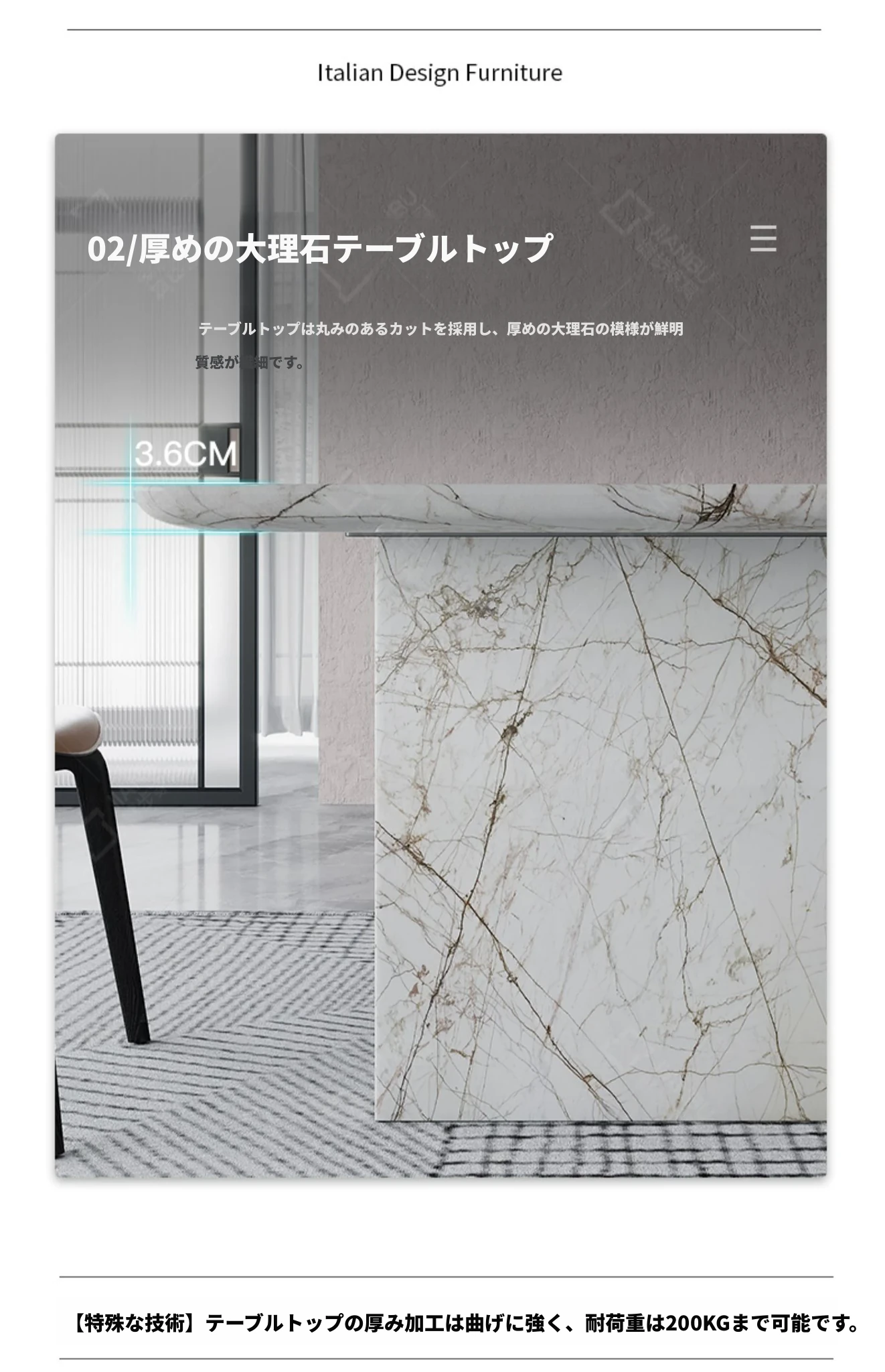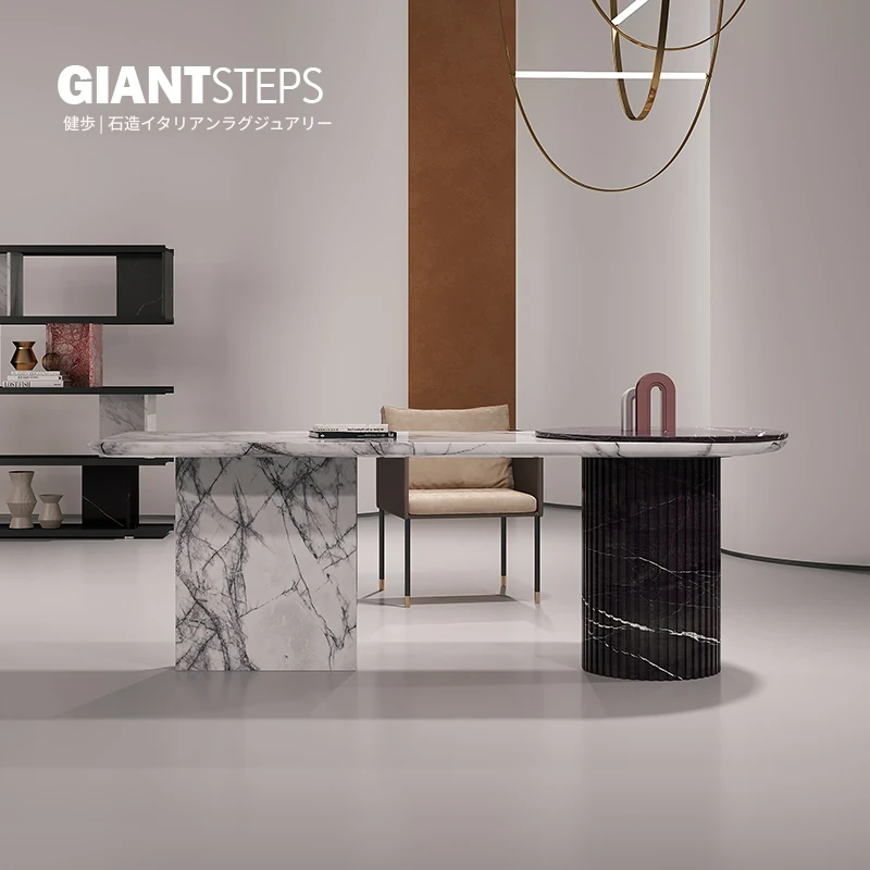 イタリアンミニマル天然大理石ダイニングテーブル&チェアセット|現代的で個性的なデザインの長方形テーブル|高級感あふれる上質なインテリアを演出!