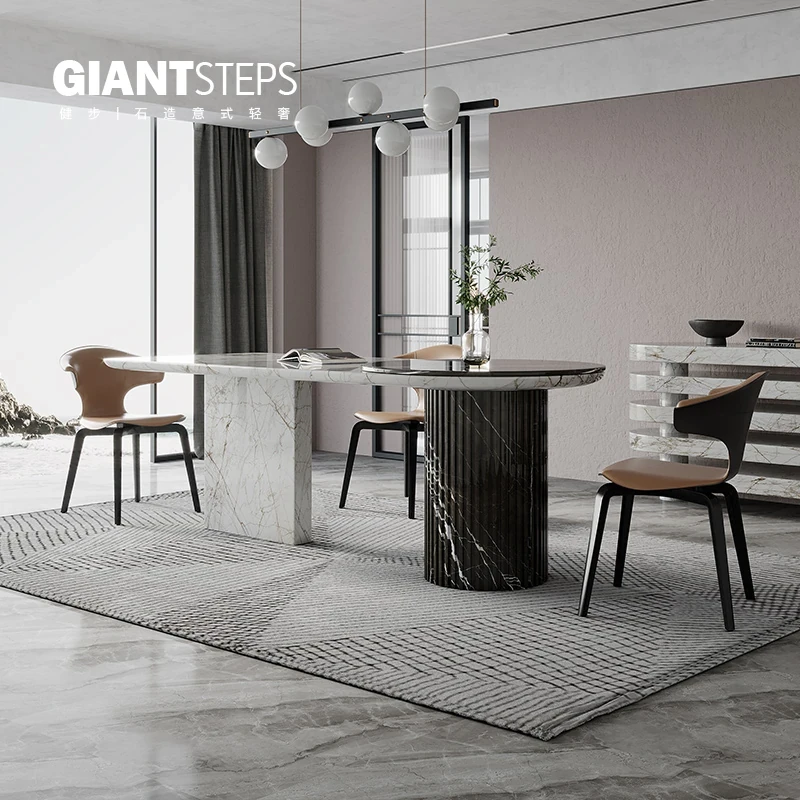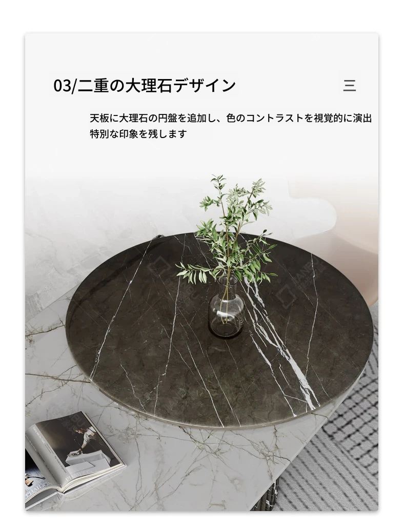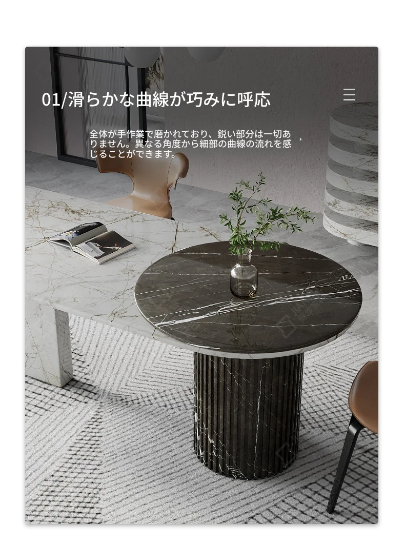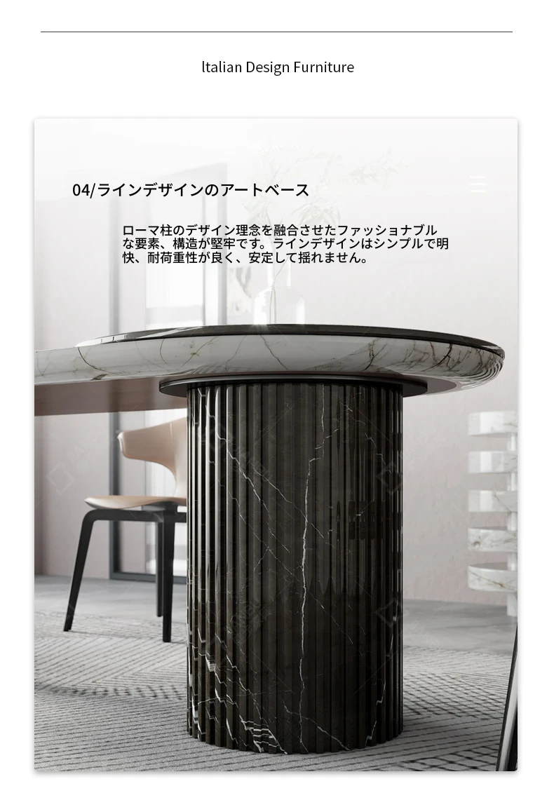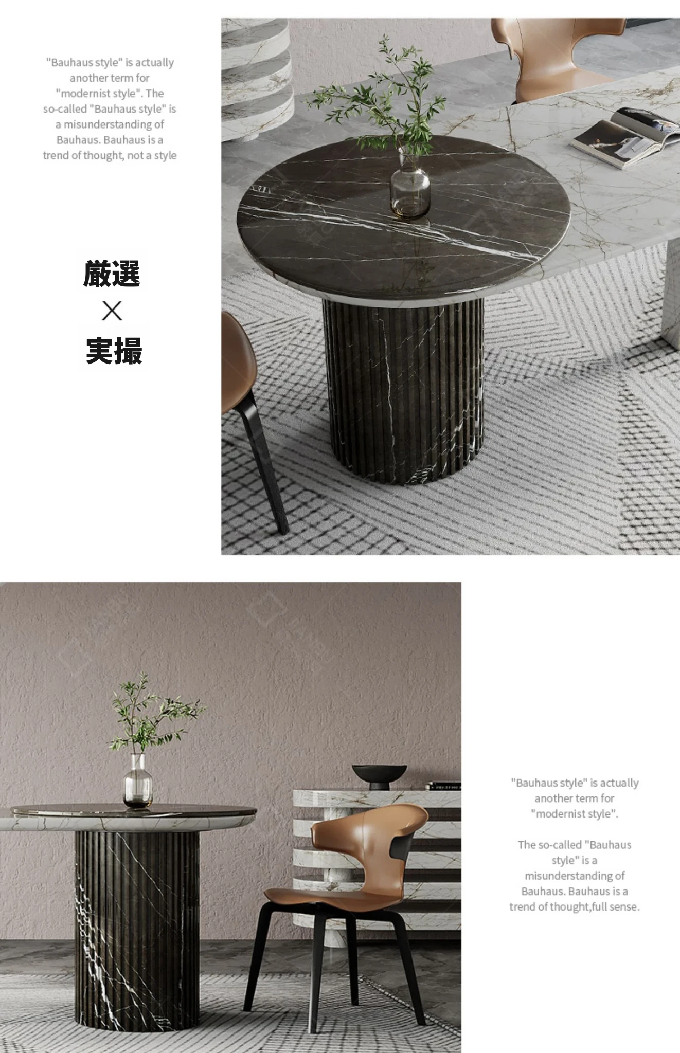 2025年新作!イタリアンミニマルデザインの天然大理石使用、中古風のラグジュアリーな丸型ダイニングテーブル&チェアセット。クリエイティブなデザインで、特別な空間を演出します!