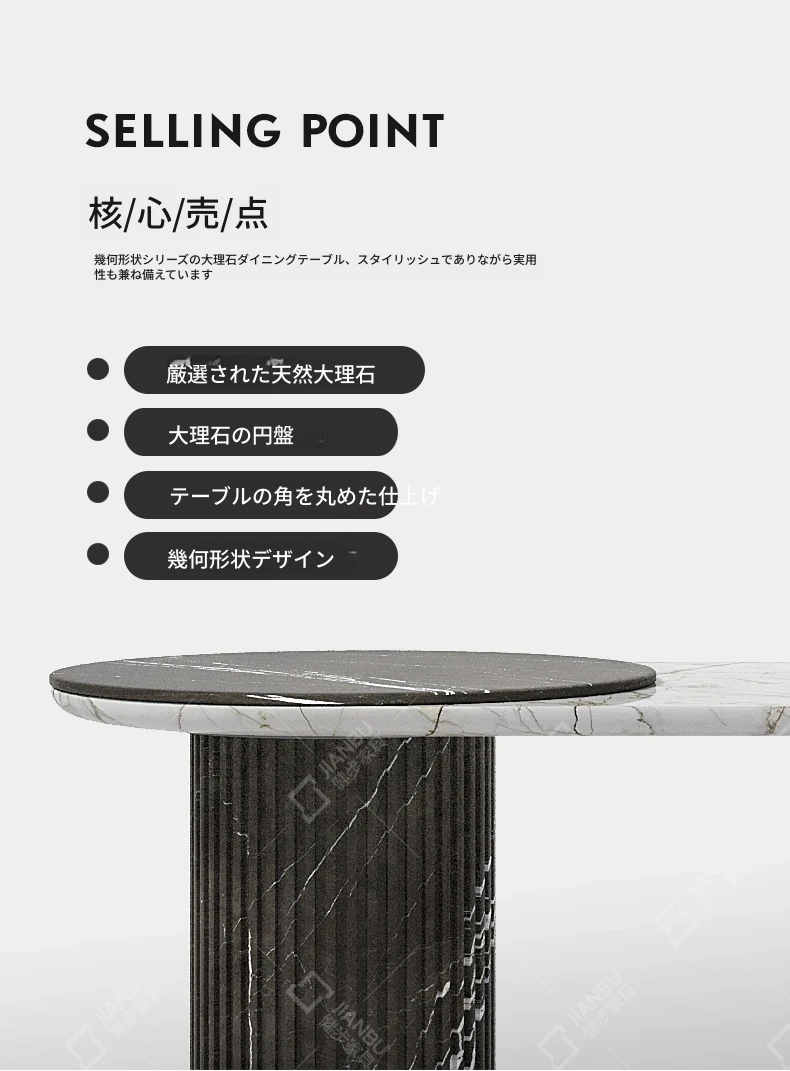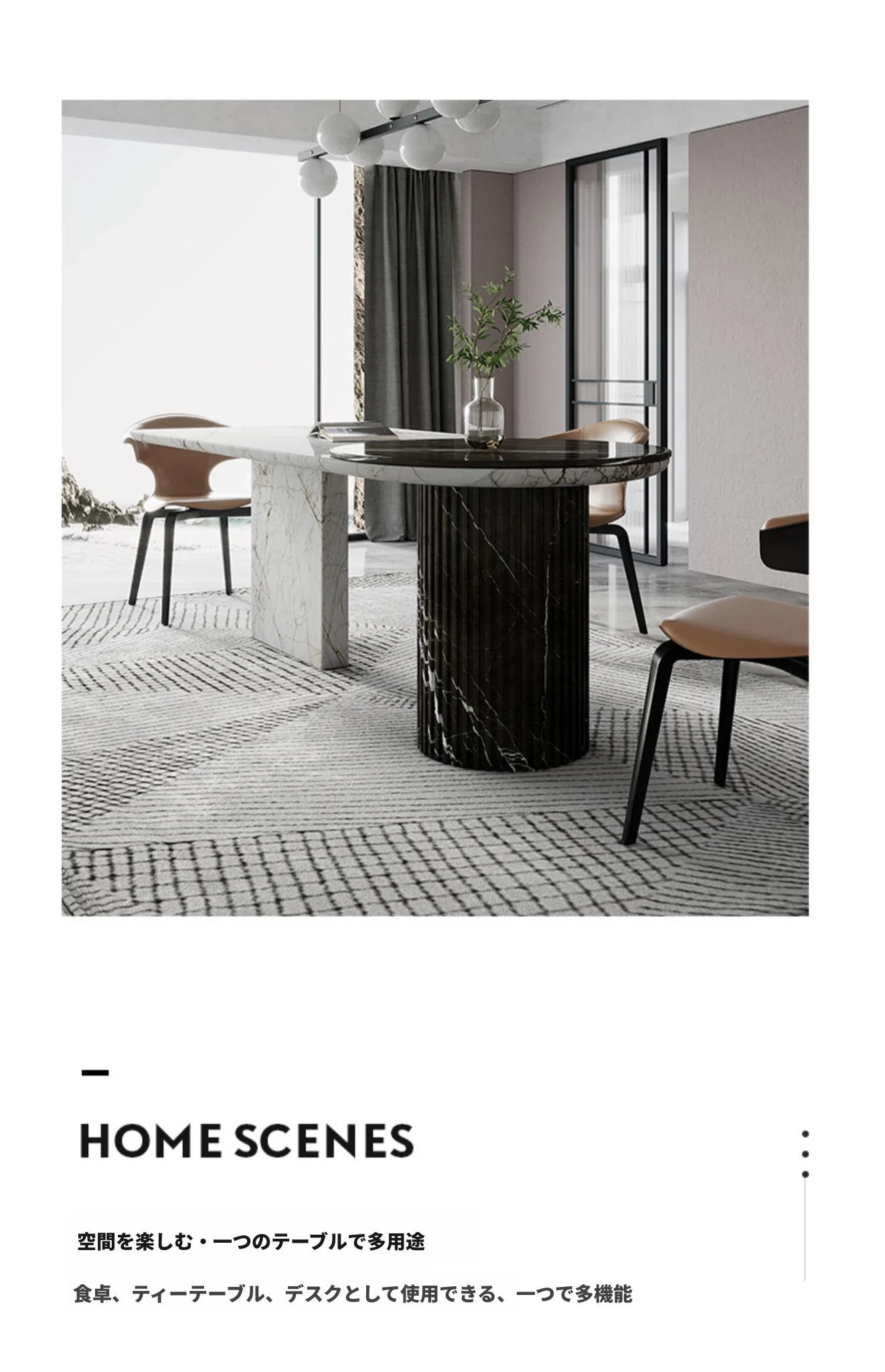 エレガントな欧風ダイニングテーブルセット - 高級感あふれる大理石使用、シンプルで洗練されたデザイン。別荘や小さな家にぴったりのスタイリッシュな食卓で、特別な時間を演出します。