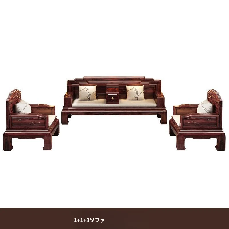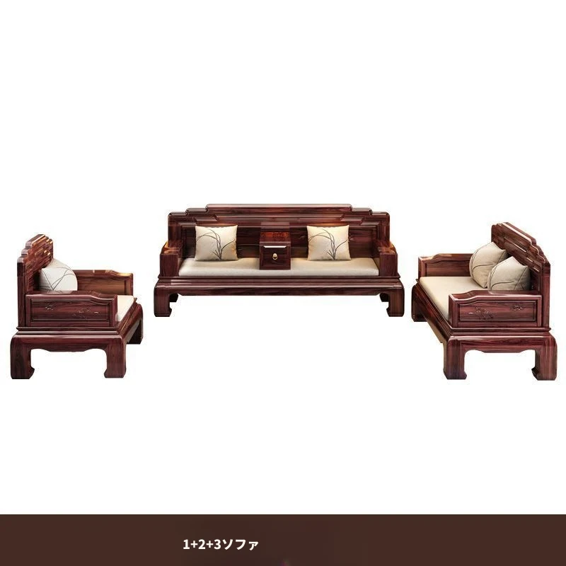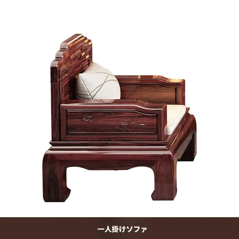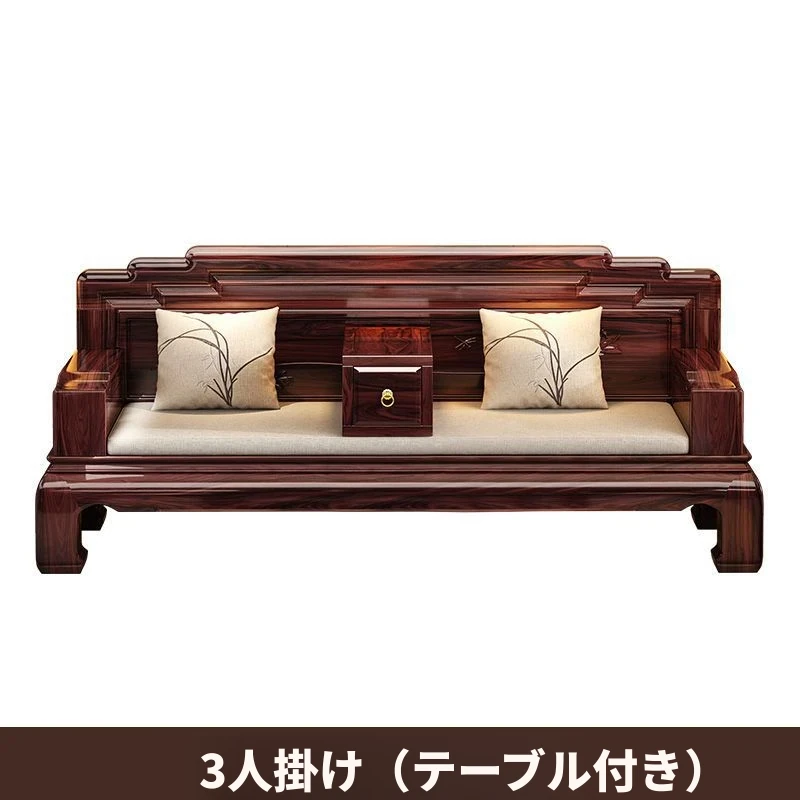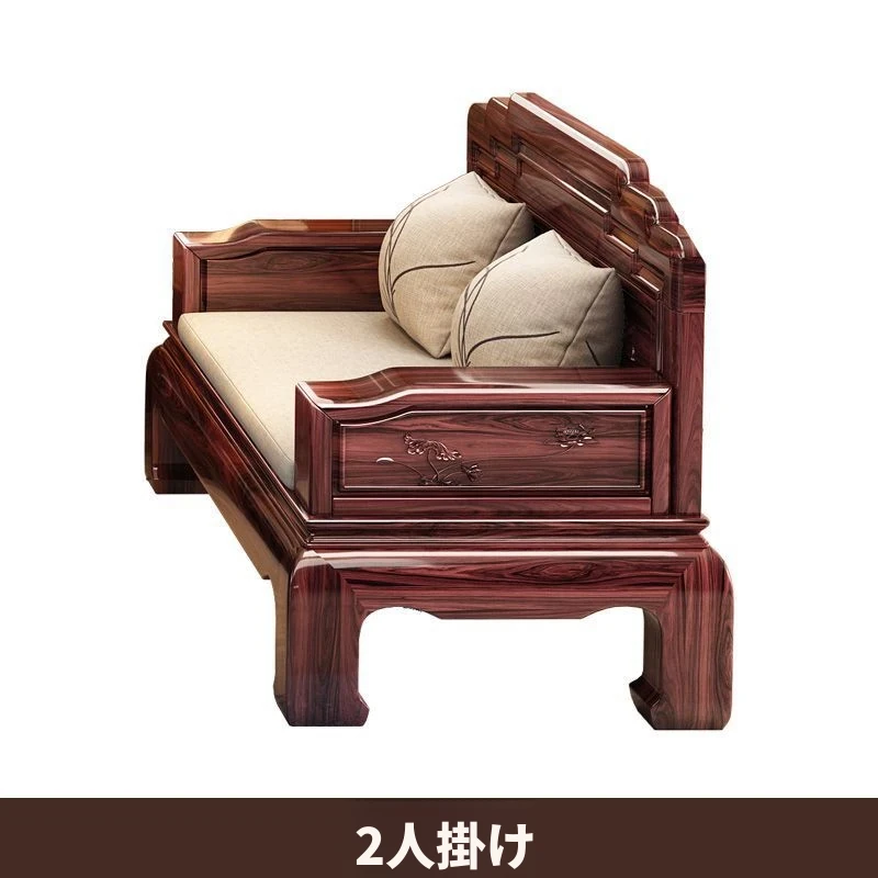 新中式金華梨木ロハンベッド - 古典的な無垢材ソファ、リビングルームにぴったりな彫刻入りの紅木家具。大小様々な部屋に最適な高級感あふれるデザイン!