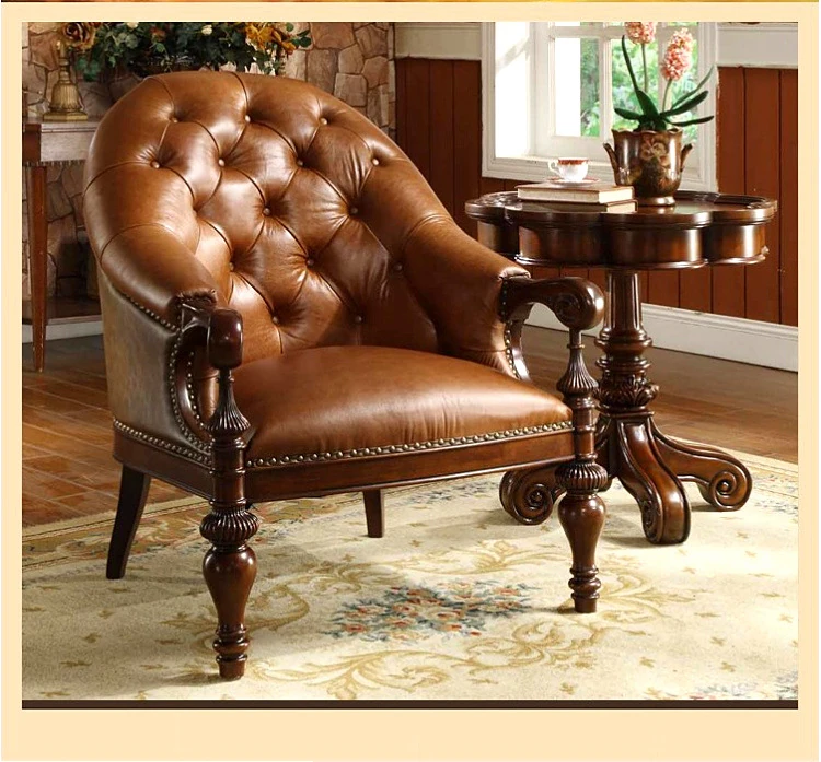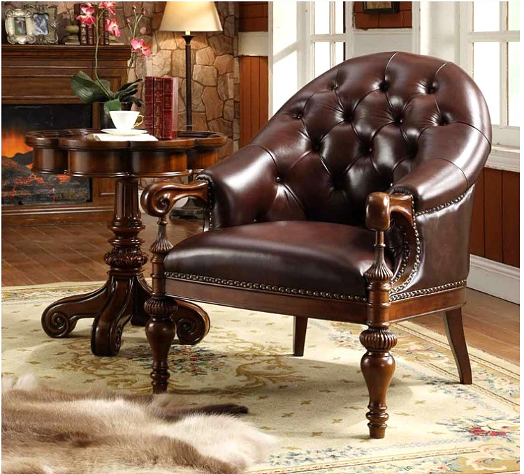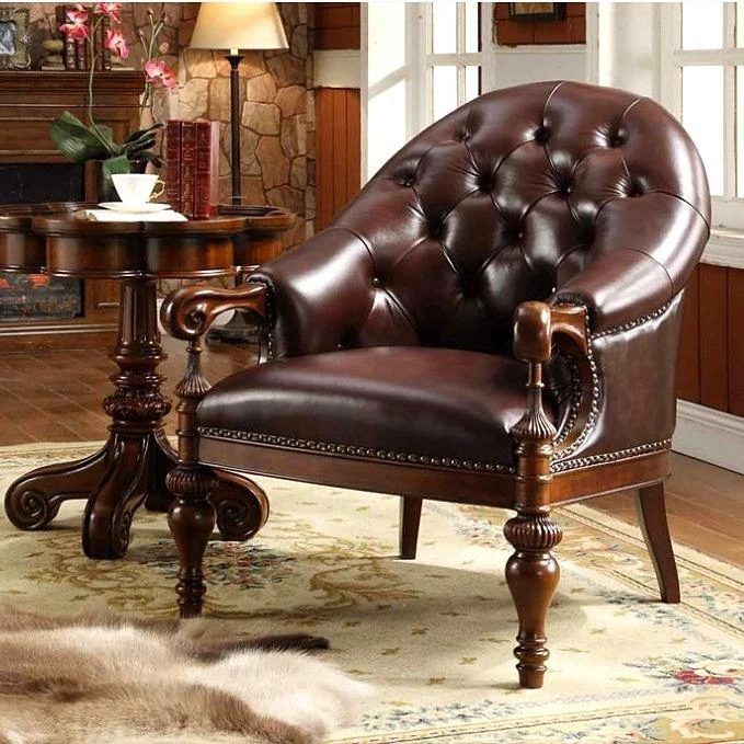 スタイリッシュな無垢材の一人掛け軽奢ラモダン虎椅子 - おしゃれな皮革張り、リビングや客間にぴったりの80876ソファ。心地よいリラックス空間を演出します!