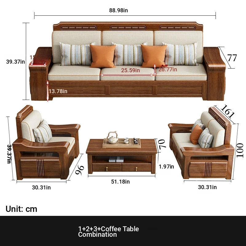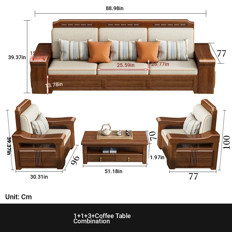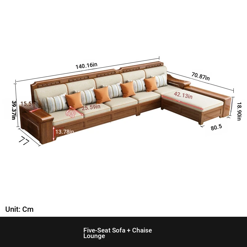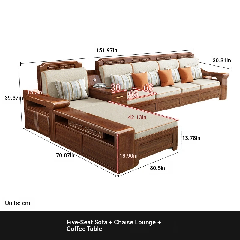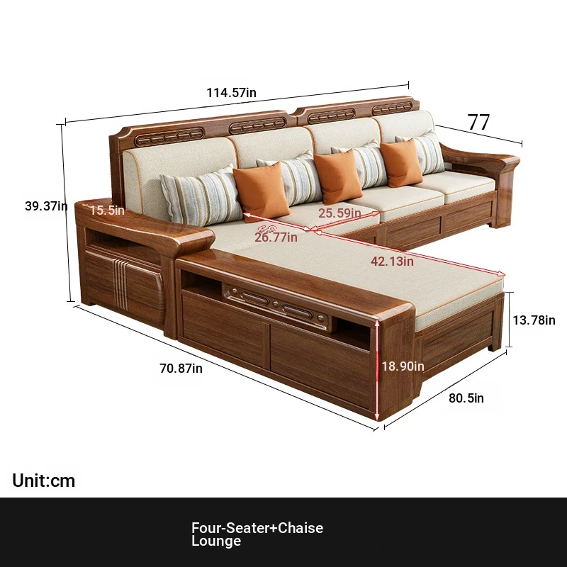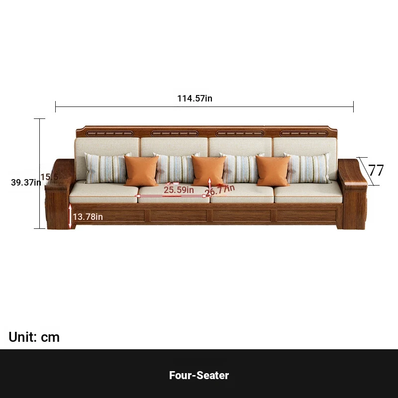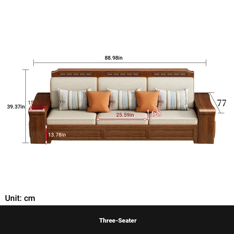 Elegant Solid Wood Sofa for Living Room - Chinese Style Corner Sofa with Turned Arms, Perfect for Small Spaces - Model 308#