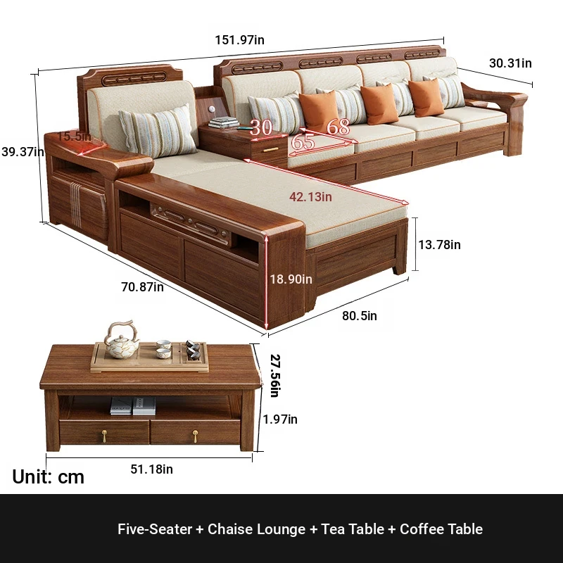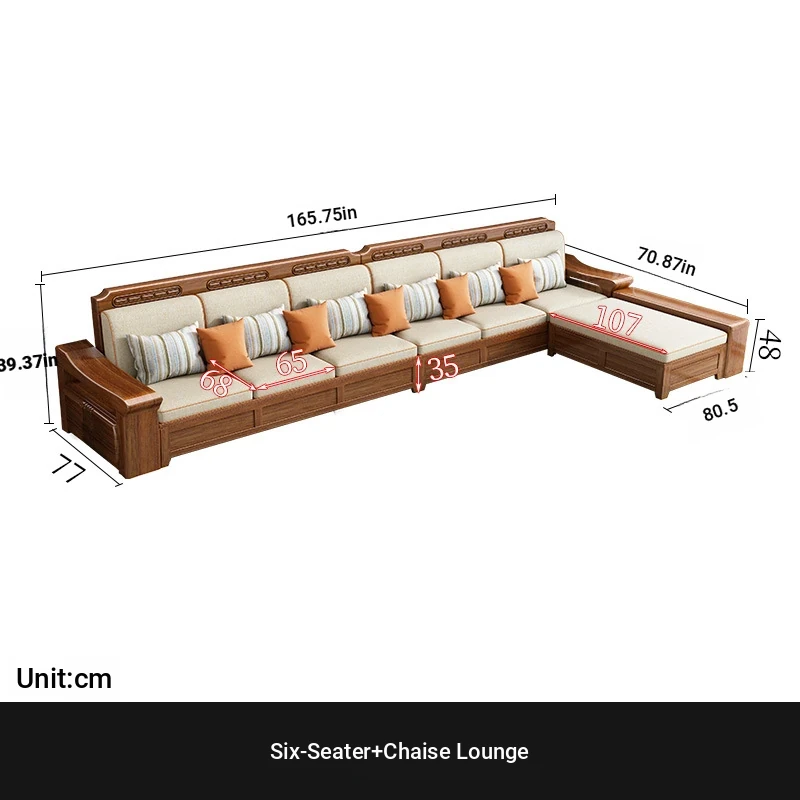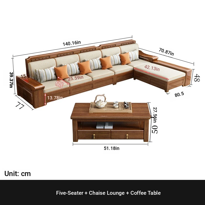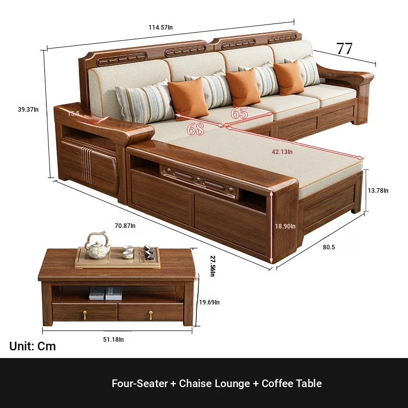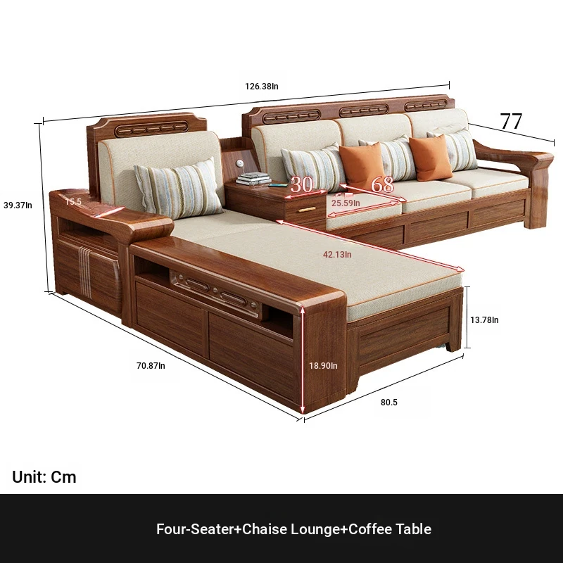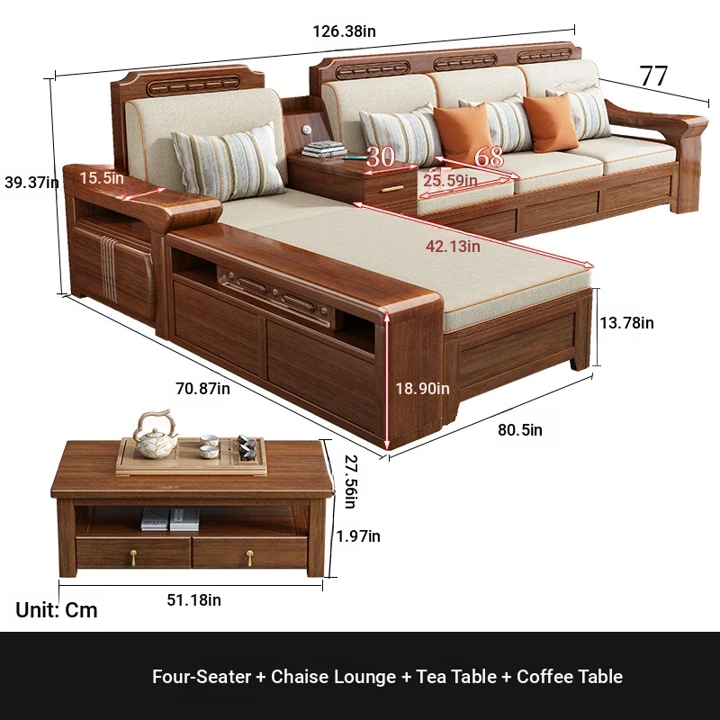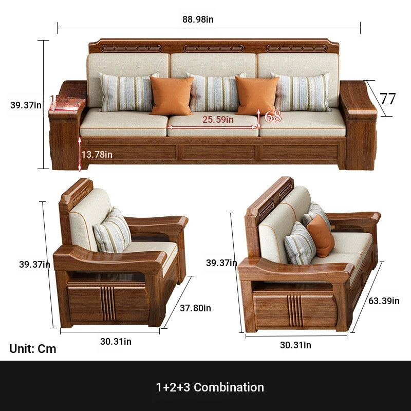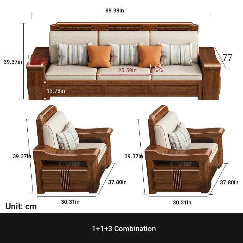 Elegant Solid Wood Sofa for Living Room - Chinese Style Corner Sofa with Turned Arms, Perfect for Small Spaces - Model 308#