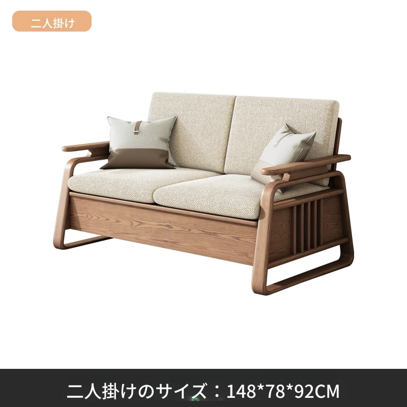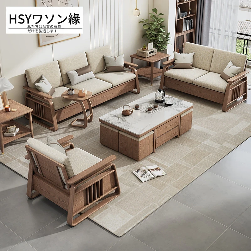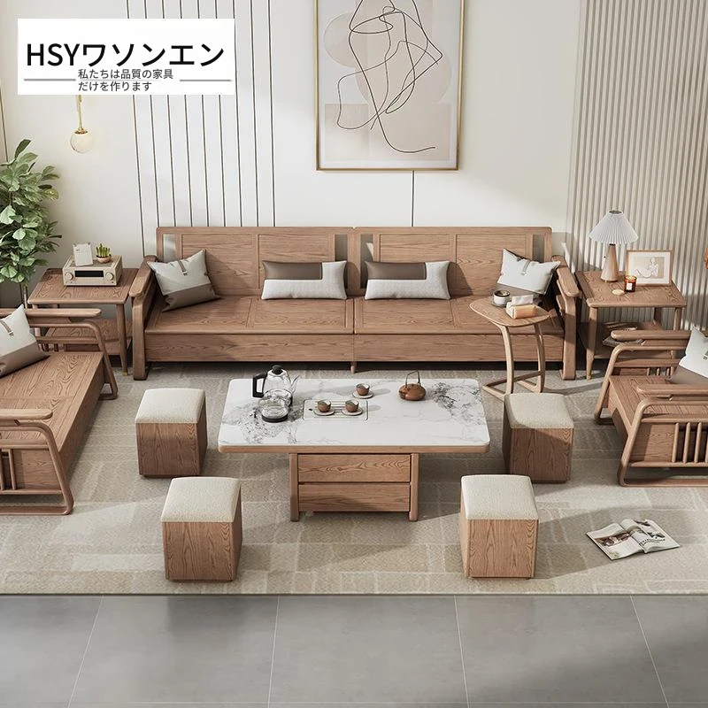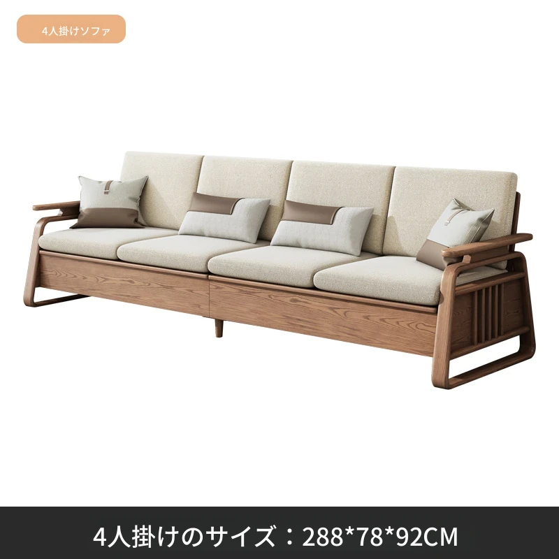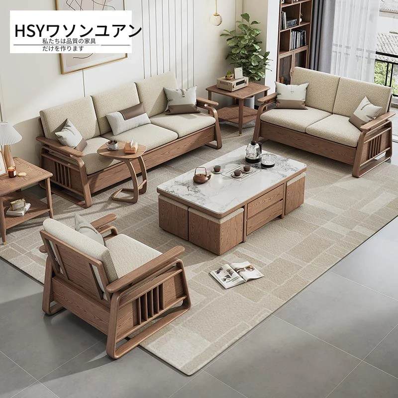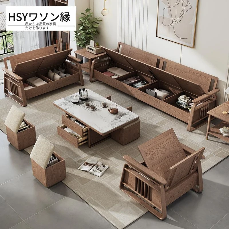 リビングルーム用高箱収納付き本格木製ソファセット - 新中式デザイン、白アリの木材使用、冬夏兼用で快適なひとときを提供します。おしゃれで機能的な空間作りに最適!