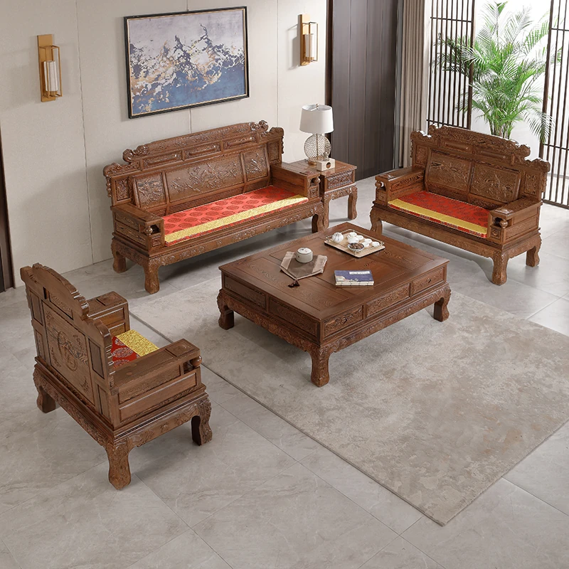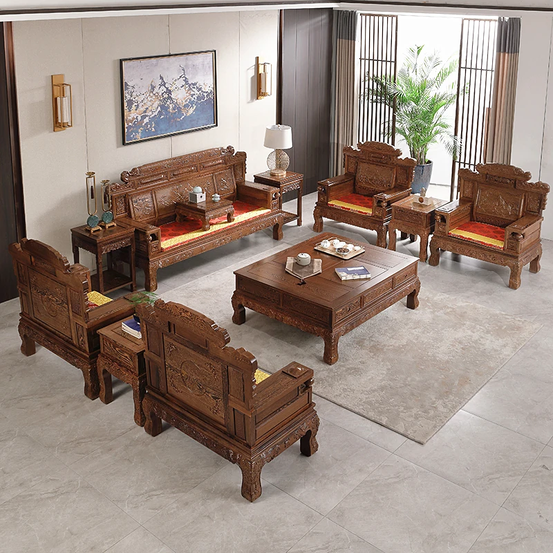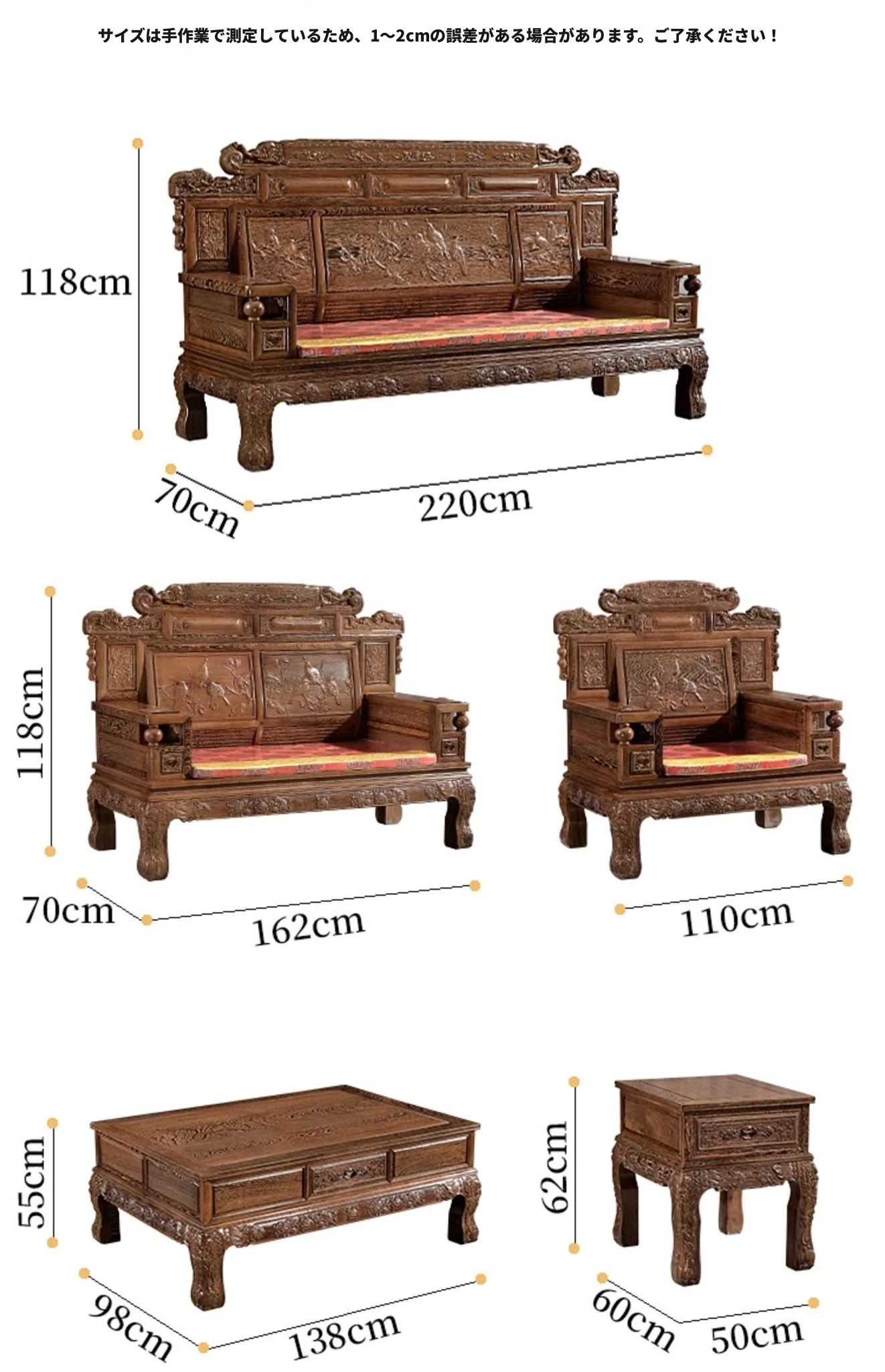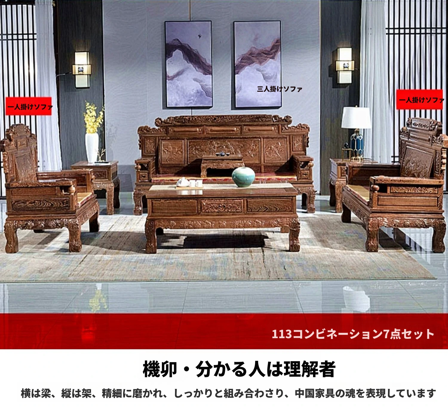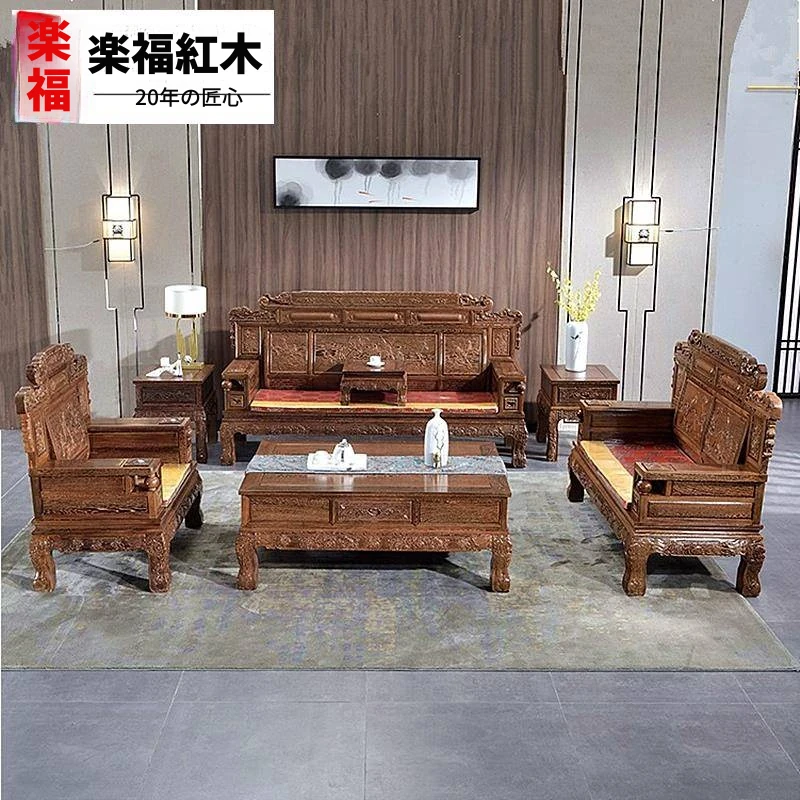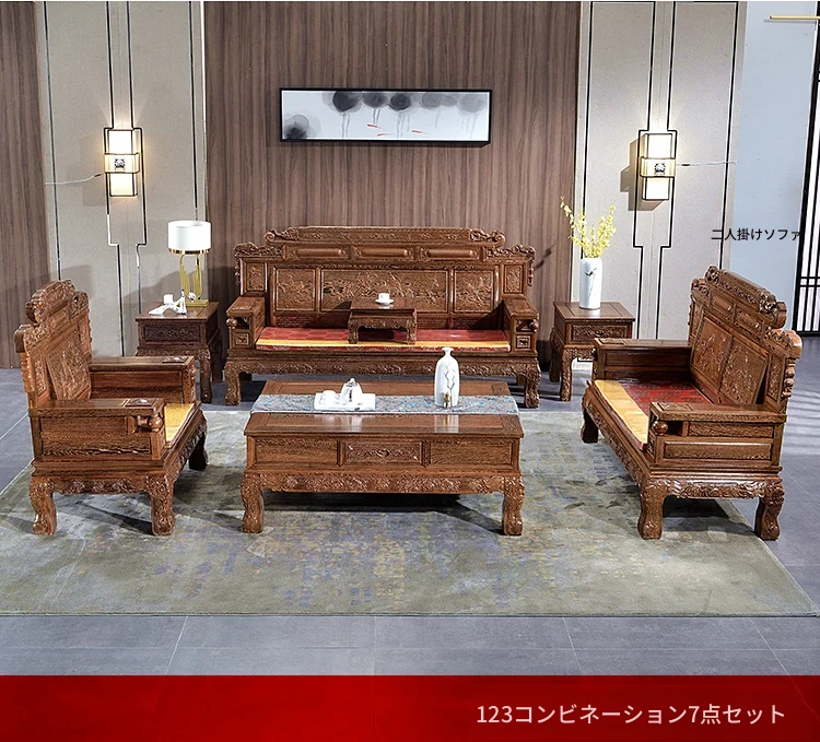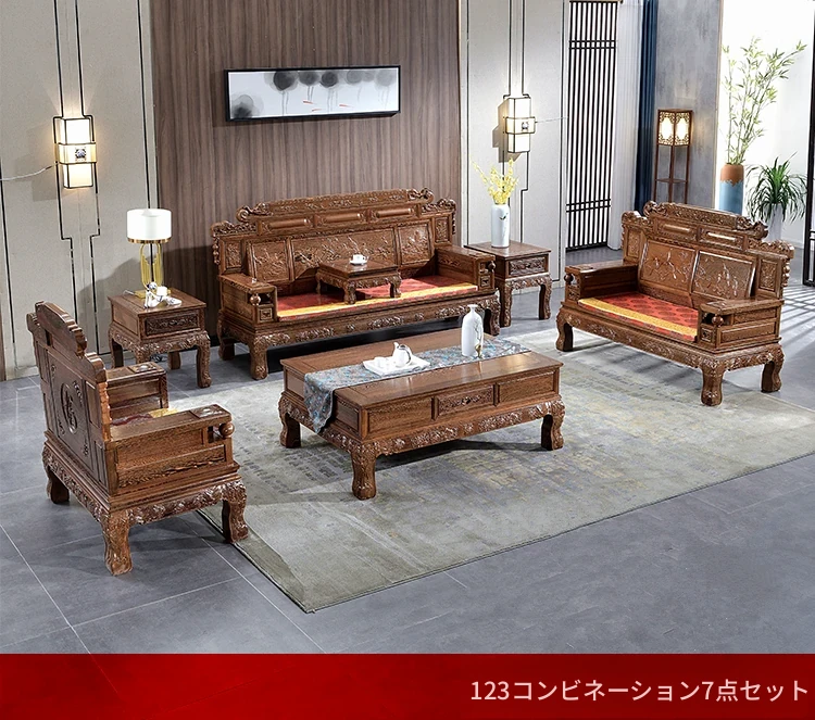 7種類の紅木家具!高級チーク材使用の財運を呼ぶソファセットで、贅沢なリビング空間を演出。中華スタイルの実木製で、居心地抜群な組み合わせです。今すぐ手に入れて、運気をアップしましょう!