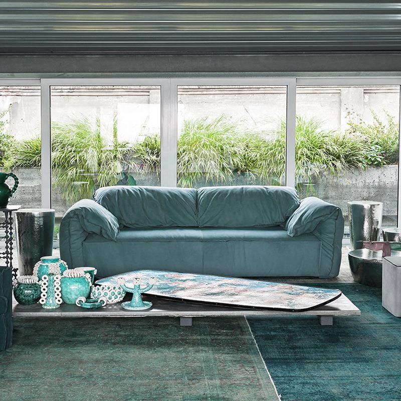 イタリアンスタイルの小象耳デザイン!本革製のダウン入りソファ。リビングルームにぴったりのラグジュアリーな布製ソファ。佛山家具で、快適さとスタイルを両立させましょう!