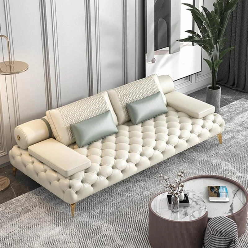 2025年新作!豪華イタリアンデザインの軽やかなラグジュアリー豆腐ブロック本革ソファ。シンプルで洗練された現代的なリビングルーム家具の組み合わせで、贅沢な空間を演出します!