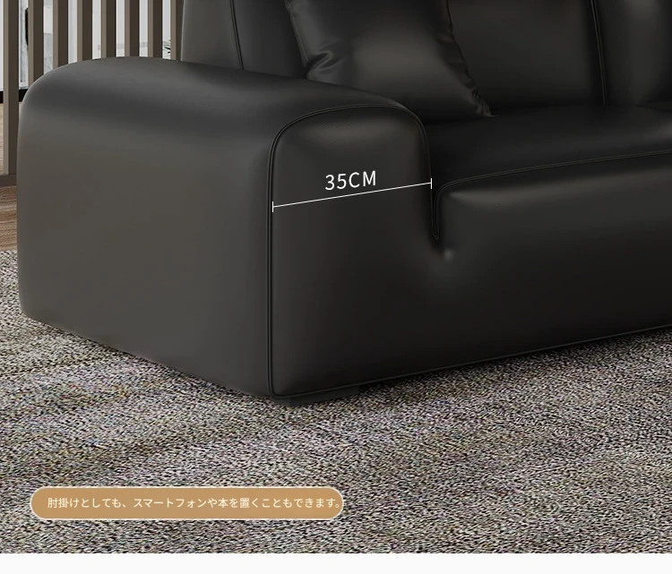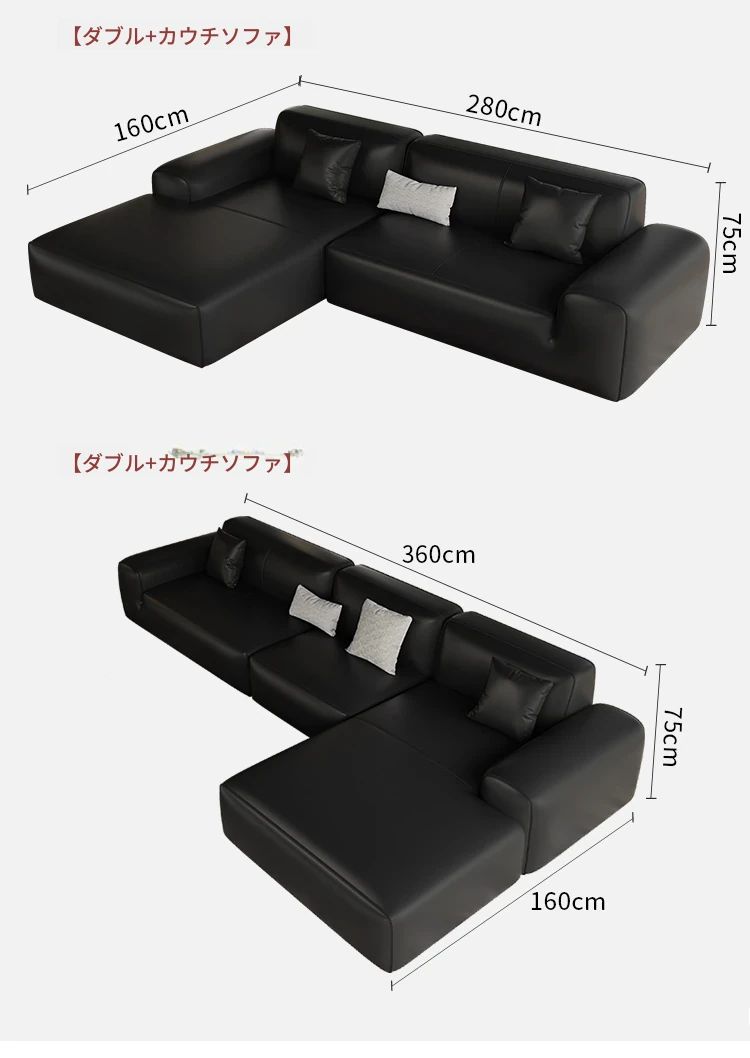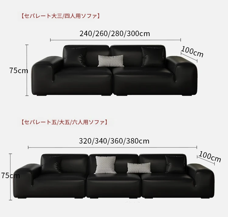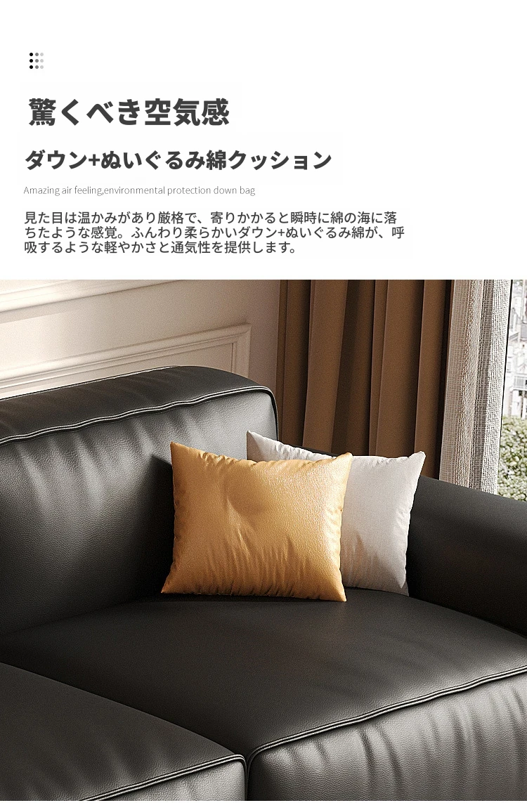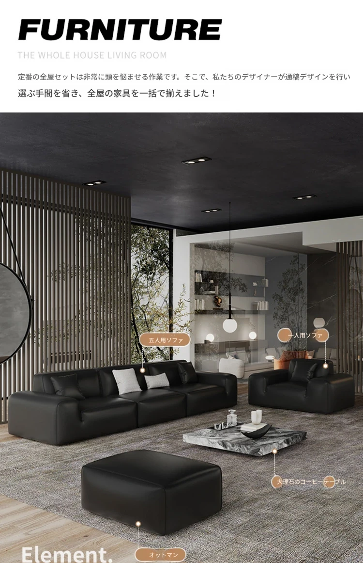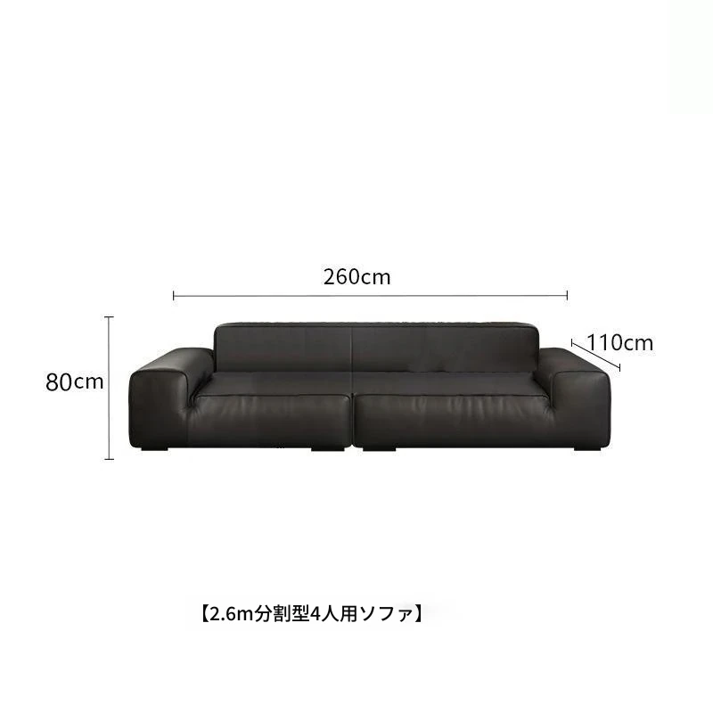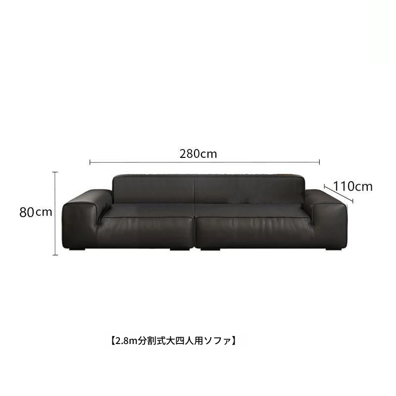 イタリアンミニマリズムの高級感漂うブラックレザーソファ|本革使用の贅沢なリビング用ソファセット|シンプルで洗練されたデザインの直線的なスタイル