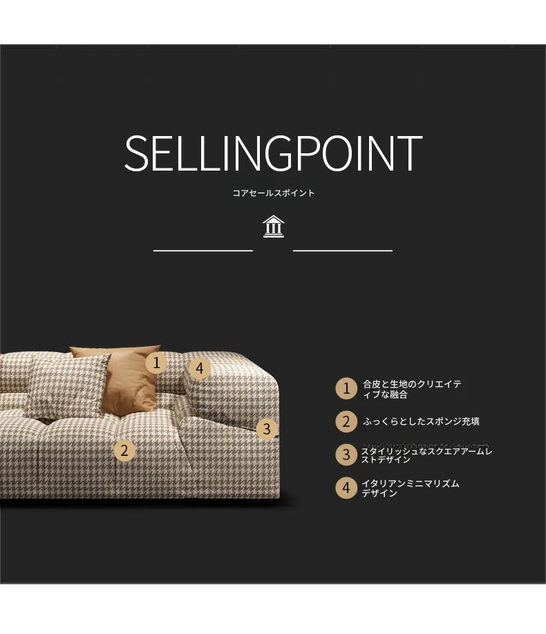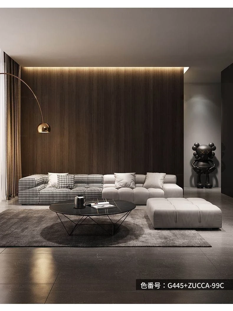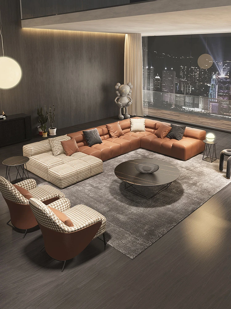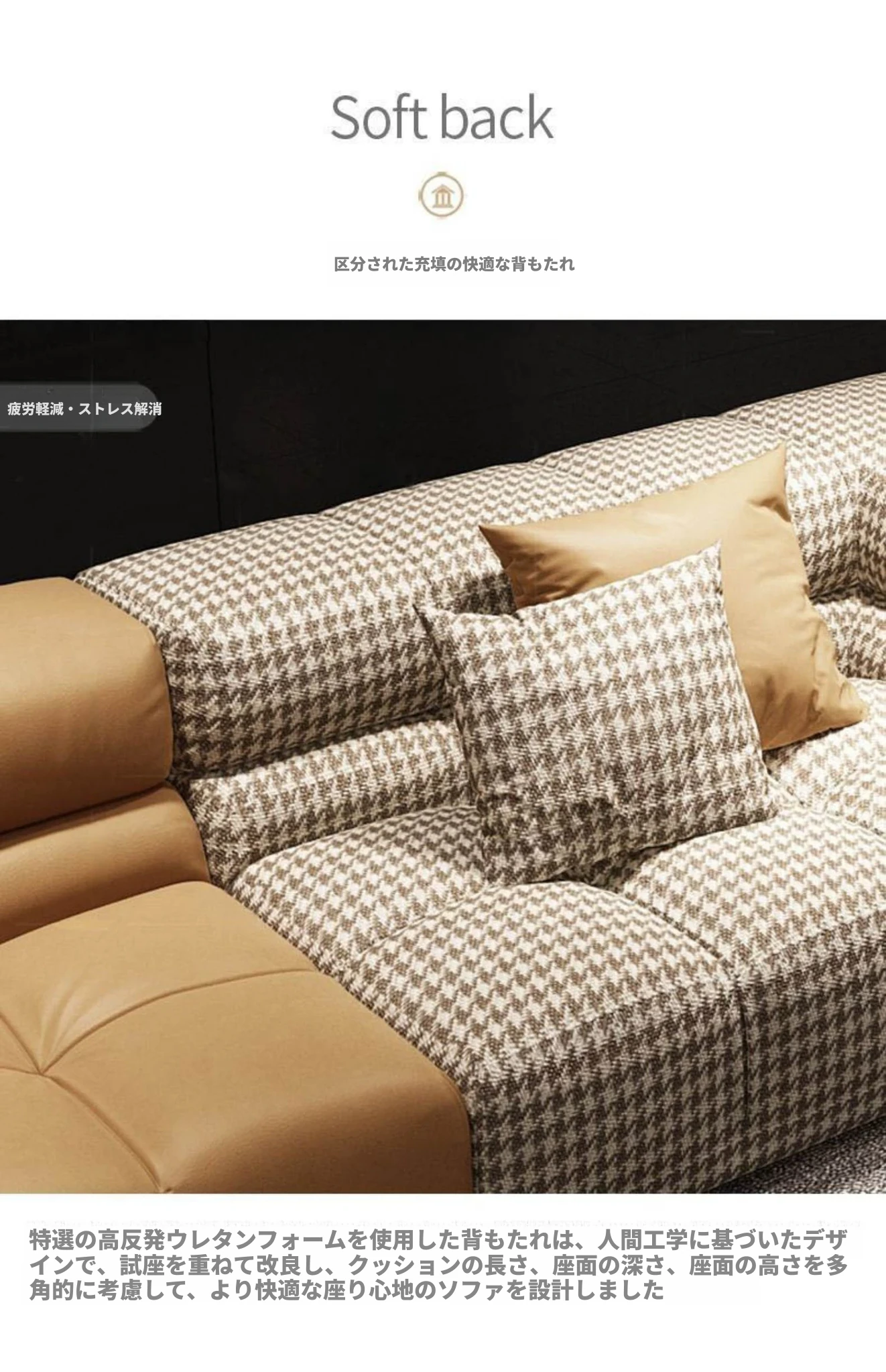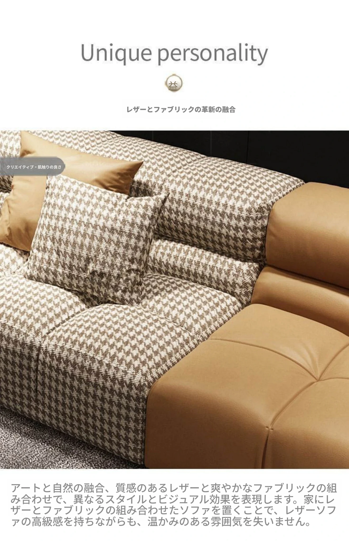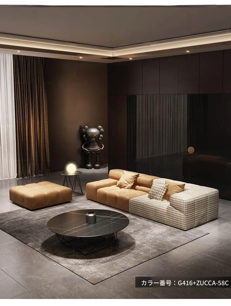 イタリアンミニマル真皮ソファー - 北欧風の軽やかなラグジュアリー、現代的でシンプルなモジュール式デザイン、コンパクトなリビングに最適な豆腐型ソファー。