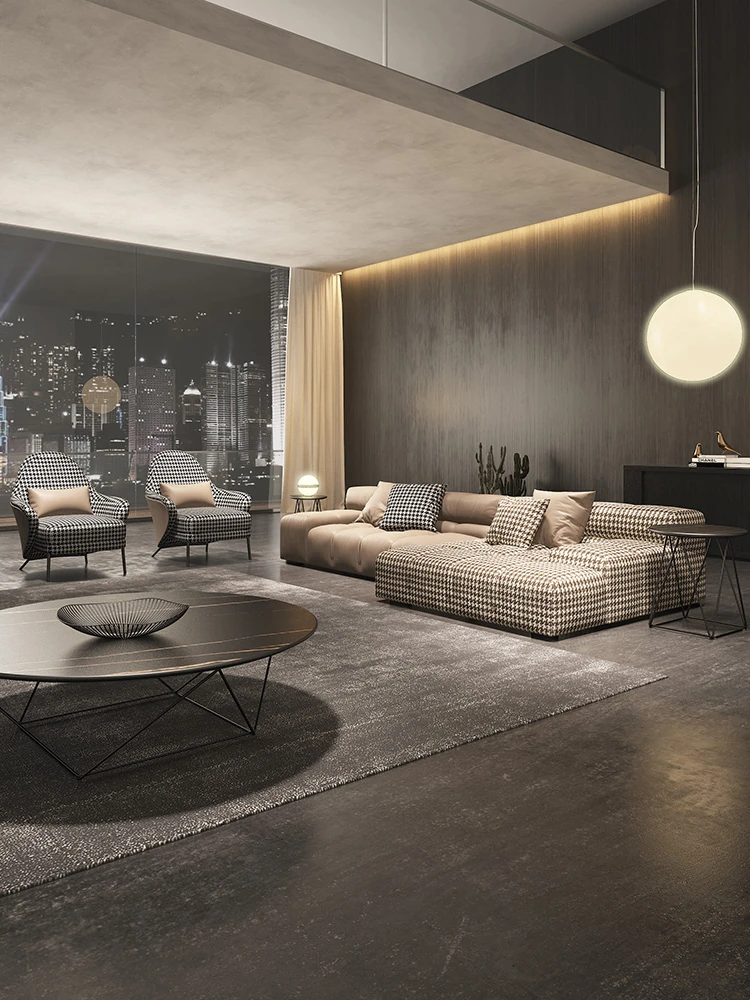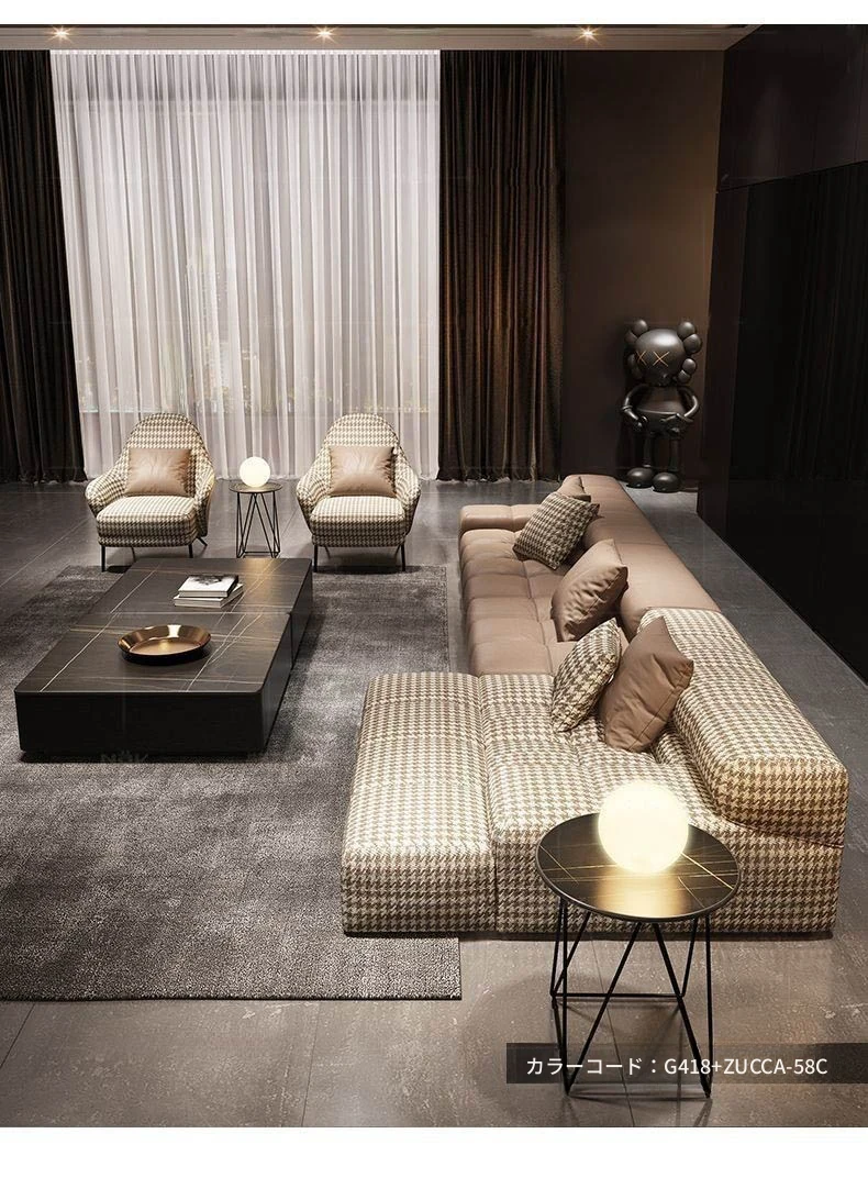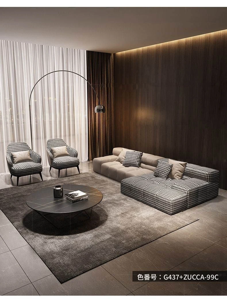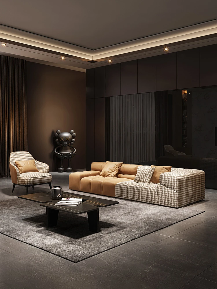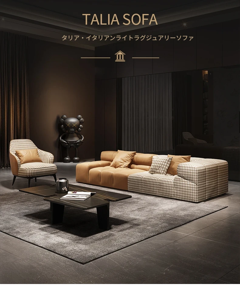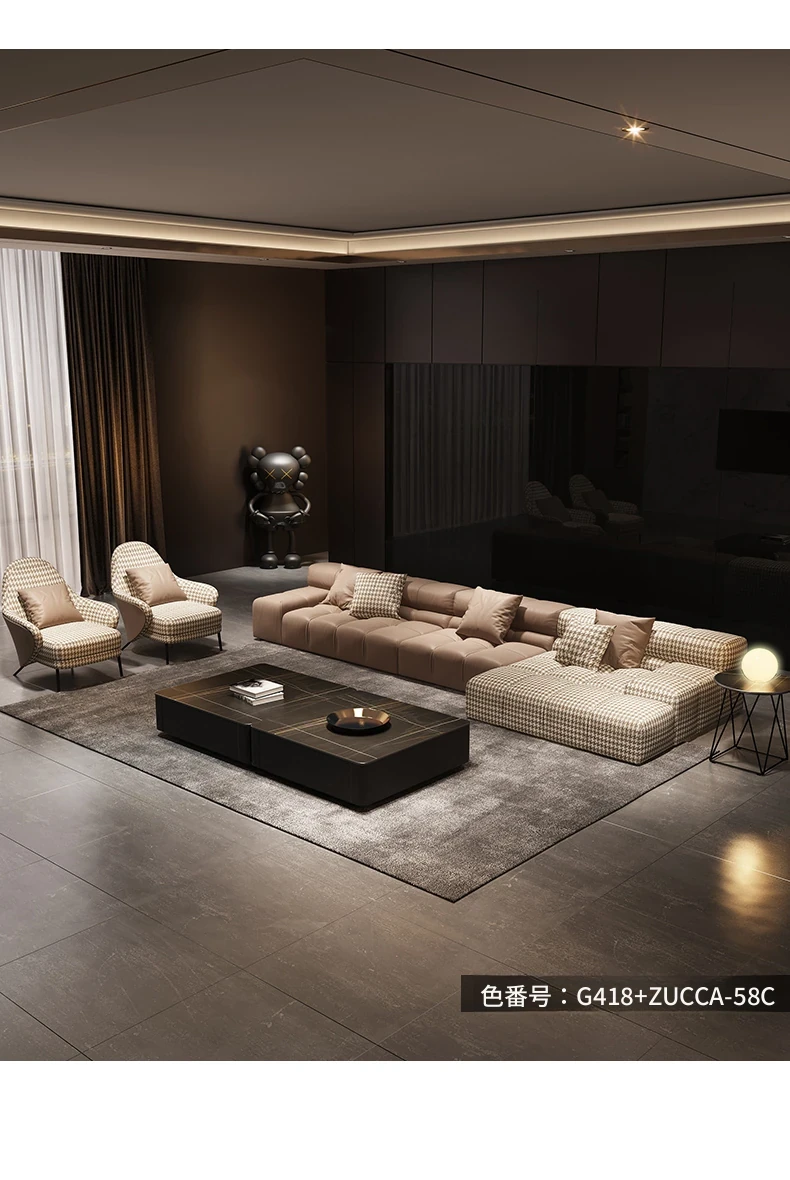 イタリアンミニマル真皮ソファー - 北欧風の軽やかなラグジュアリー、現代的でシンプルなモジュール式デザイン、コンパクトなリビングに最適な豆腐型ソファー。