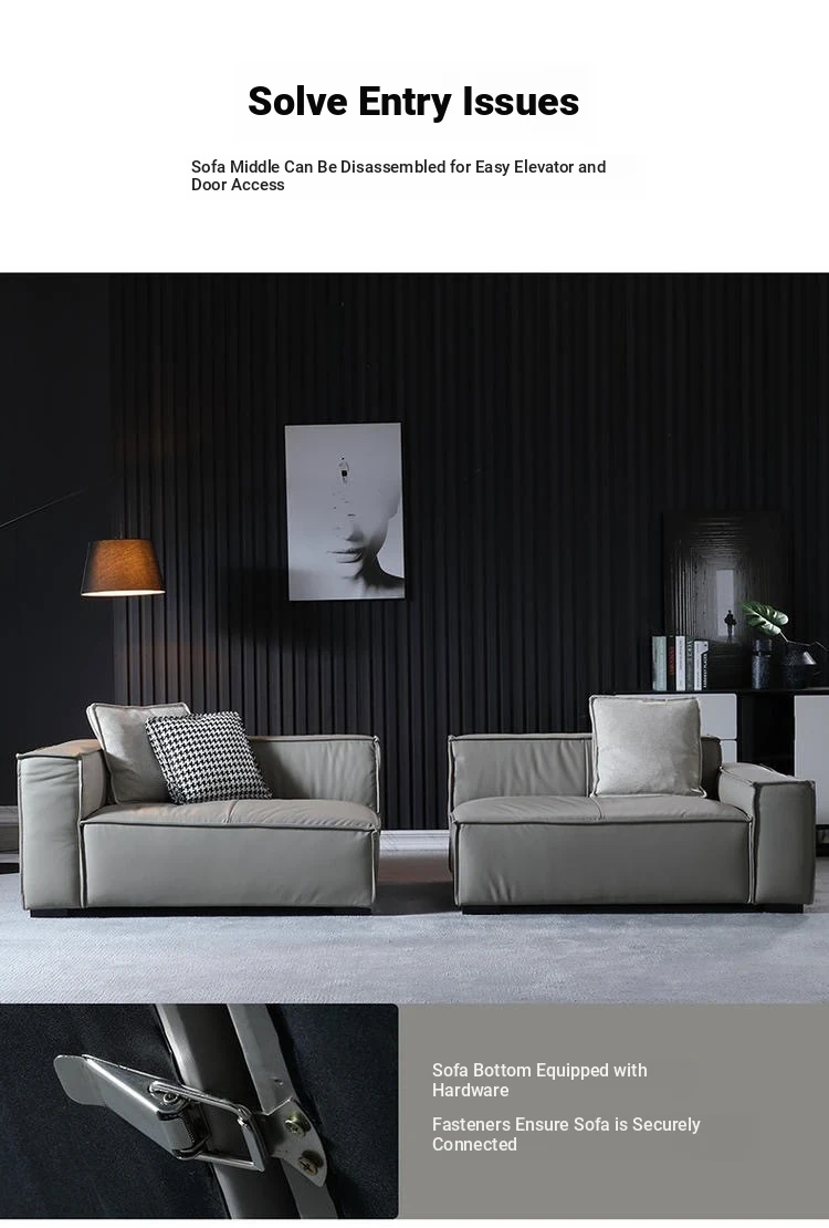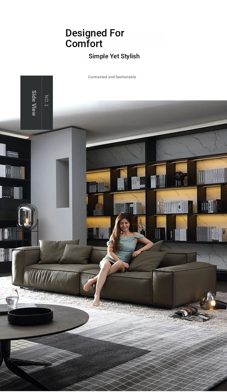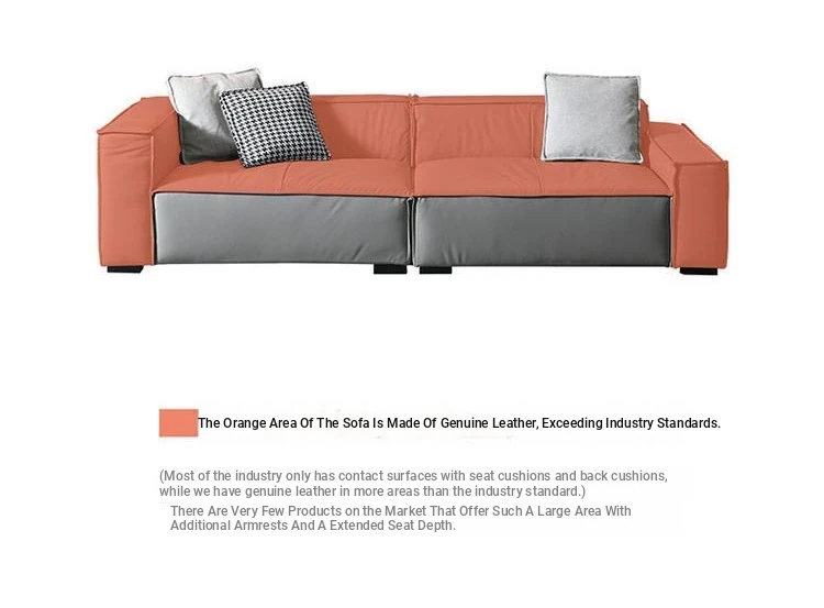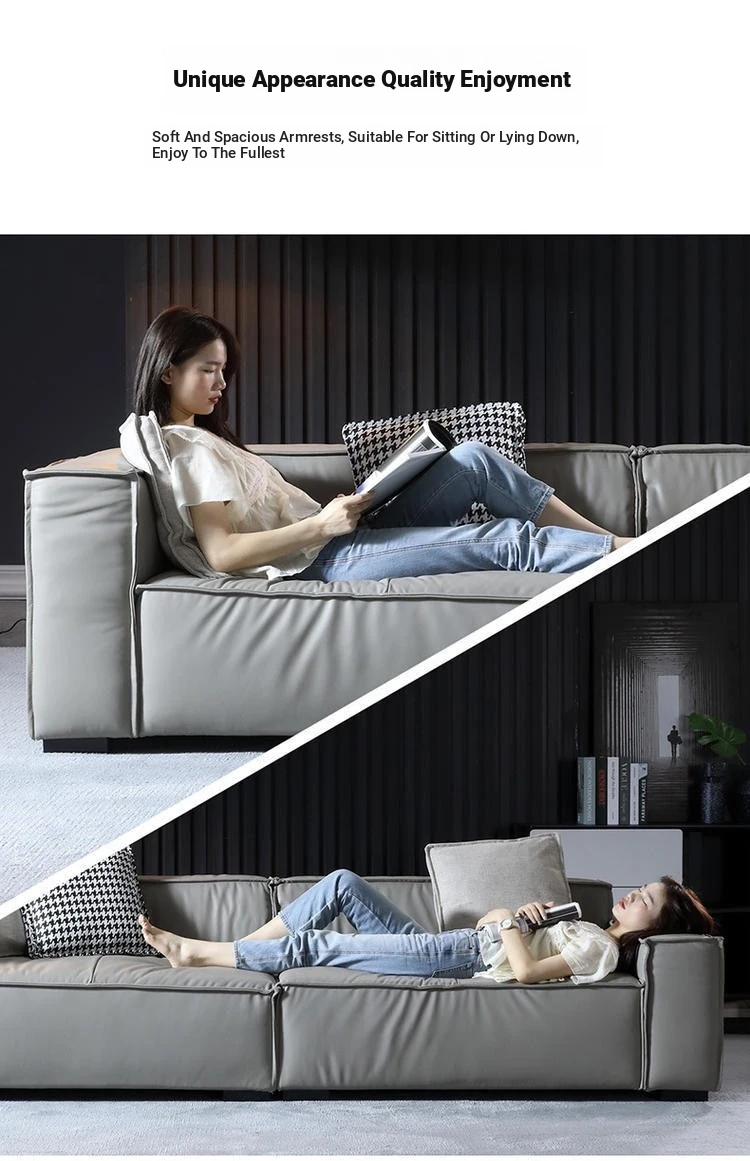 Italian Style Real Leather Sofa Set - Modern Minimalist Three-Seater with Genuine Top-Grain Cowhide, Perfect for Trendy Living Rooms.