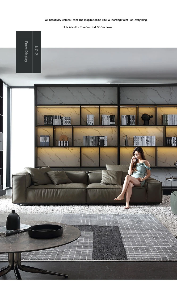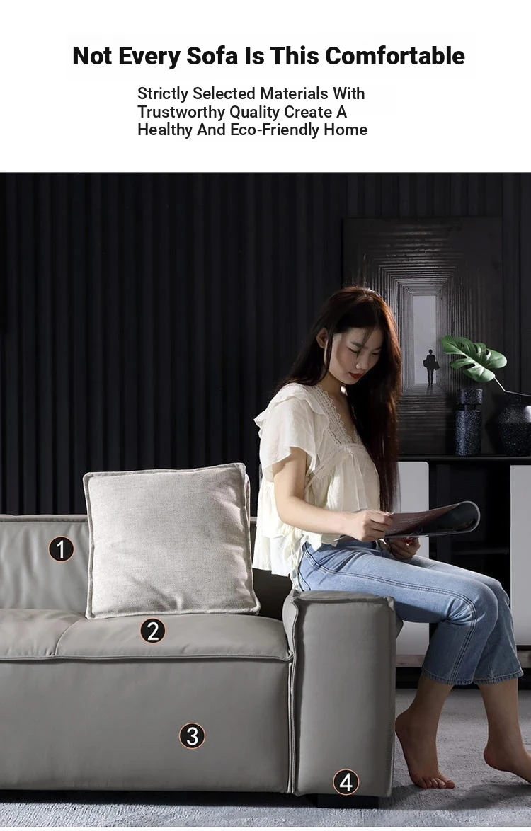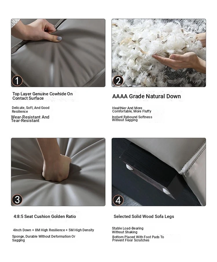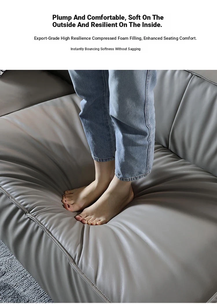Italian Style Real Leather Sofa Set - Modern Minimalist Three-Seater with Genuine Top-Grain Cowhide, Perfect for Trendy Living Rooms.