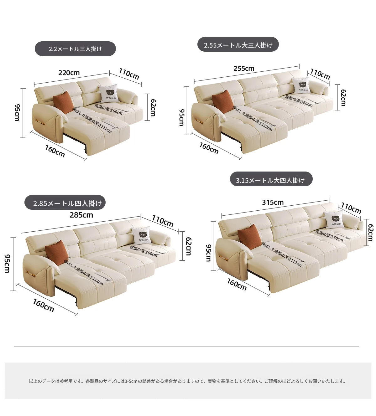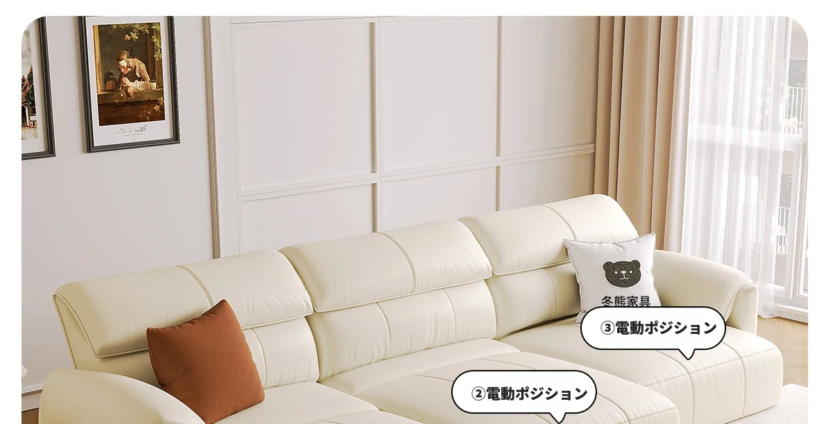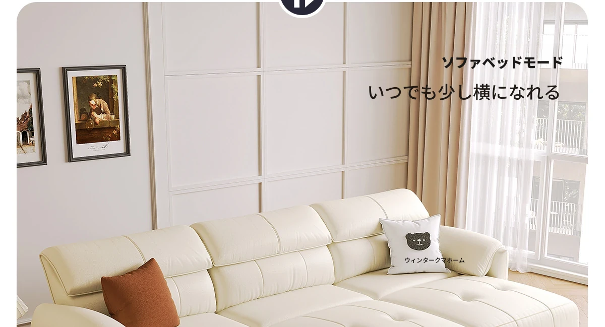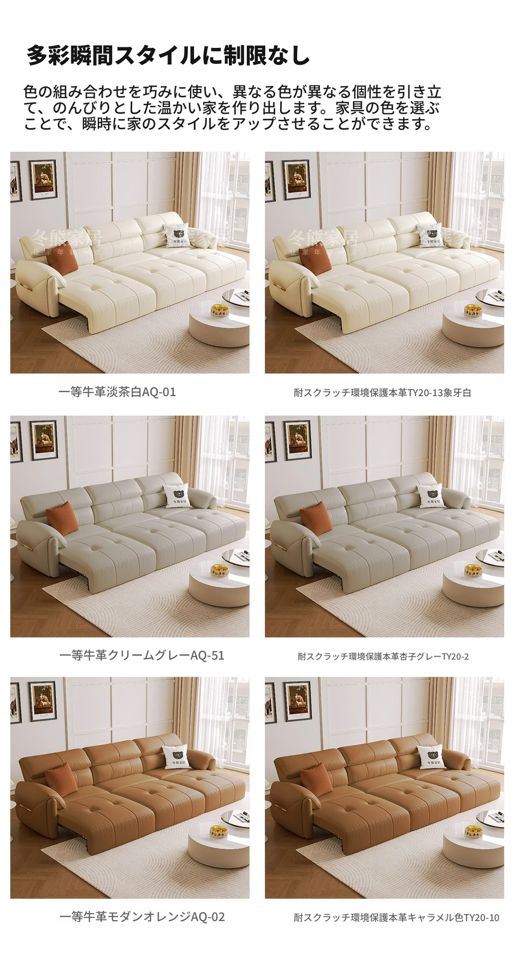 吉与 大象耳朵デザインの電動多機能本革ソファ!小型住宅にぴったりな伸縮式ソファベッド!快適なリラックスタイムをお届けします!