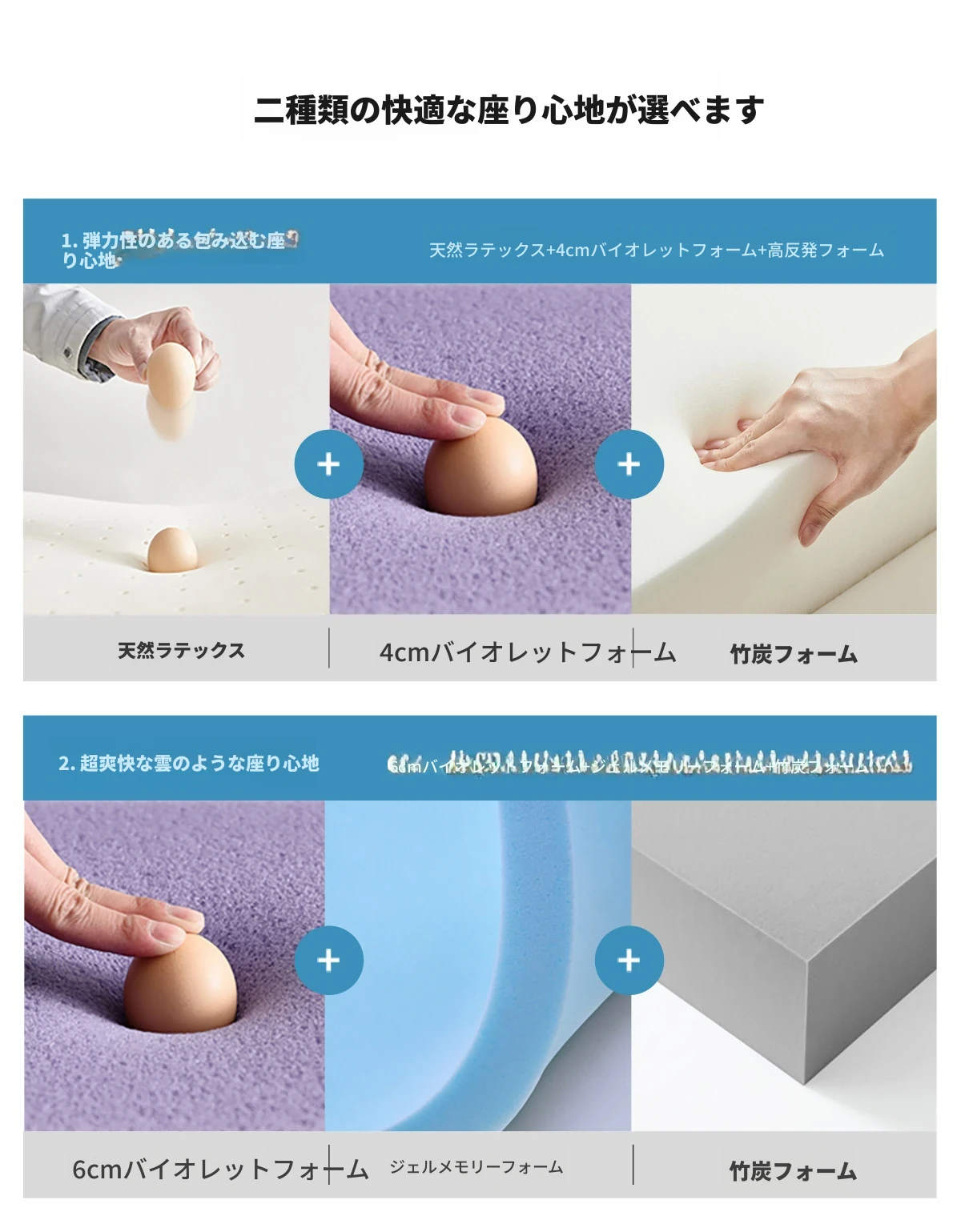 【シートパッケージアップグレード】厚手のトップレザー【宇宙ジェルメモリーフォーム+6CMバイオレット+竹炭スポンジ】【デフォルト淡茶ホワイトAQ-01】