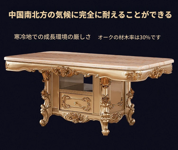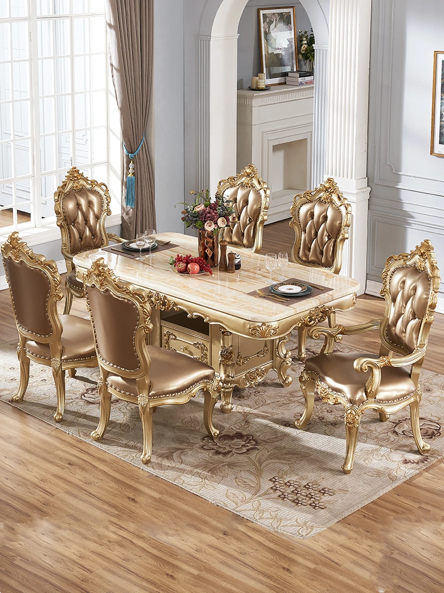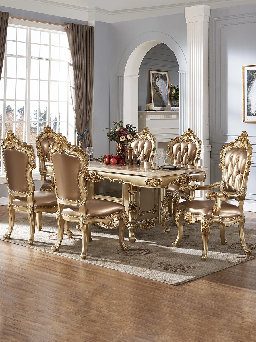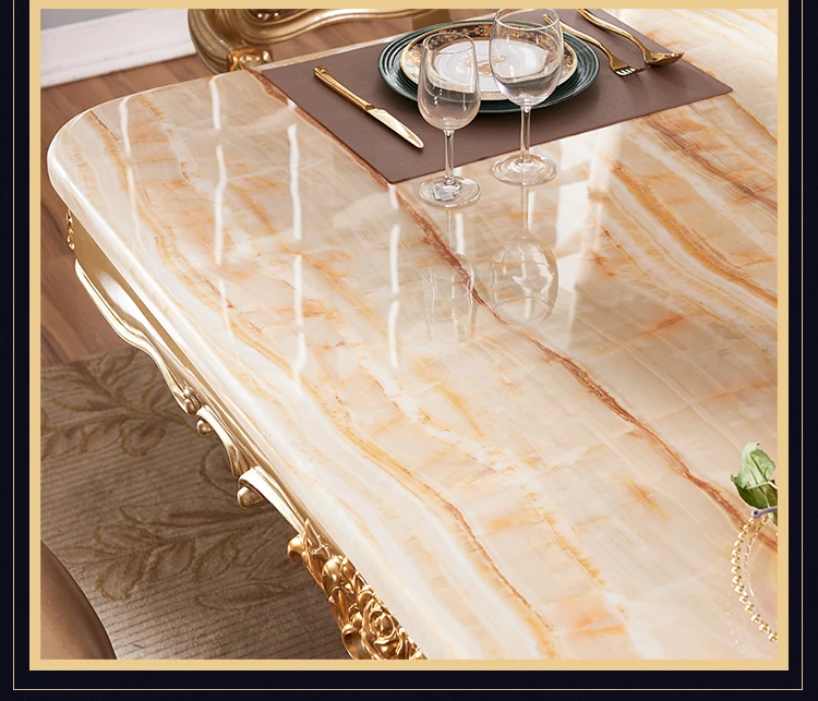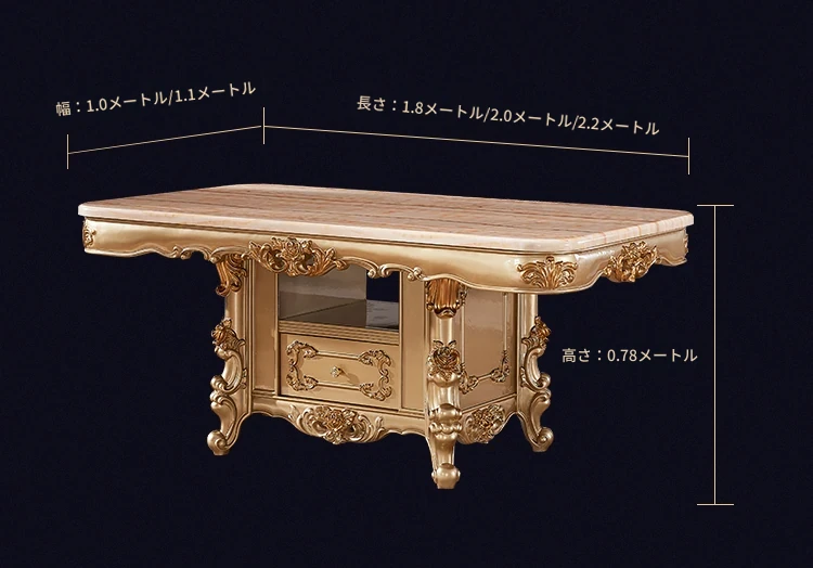 豪華シャンパンゴールドの欧風大理石長方形ダイニングテーブルセット - ヴィラにぴったり、2m/2.2mの広々としたデザインで、エレガントな食事体験をお楽しみください!
