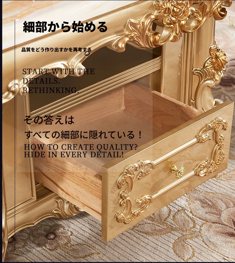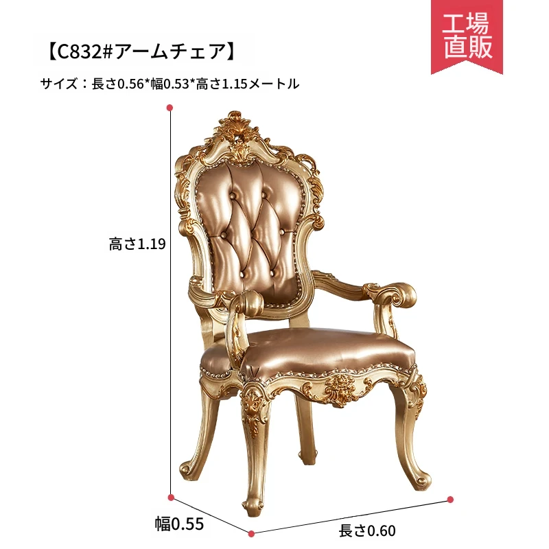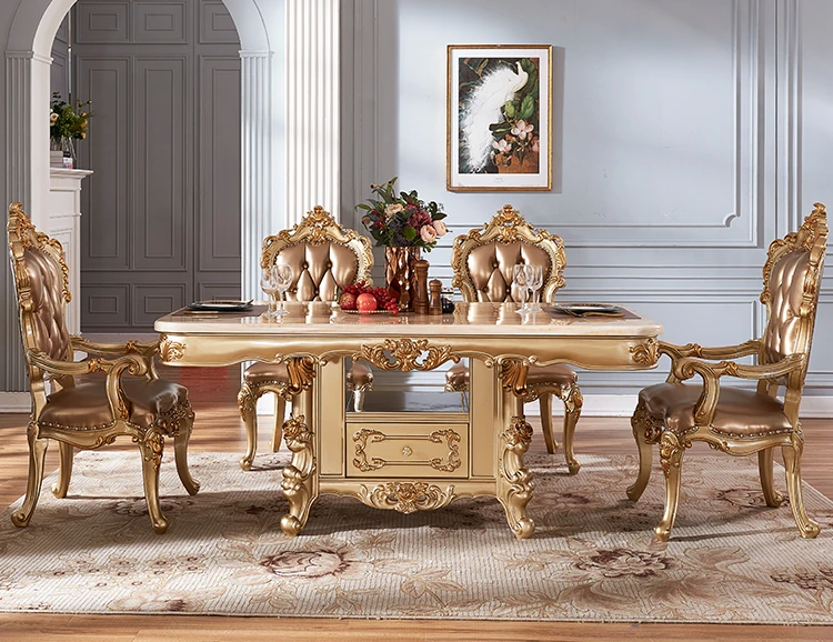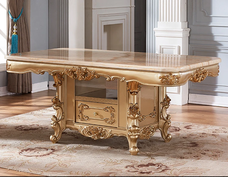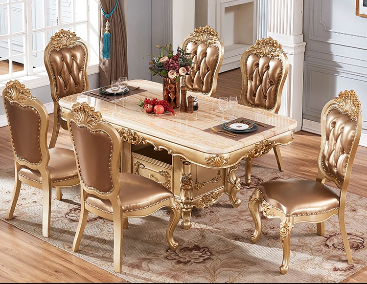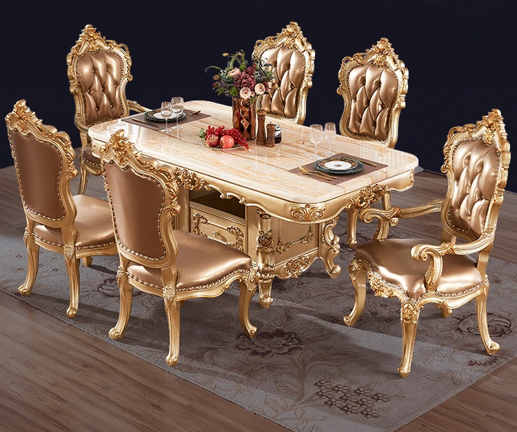 豪華シャンパンゴールドの欧風大理石長方形ダイニングテーブルセット - ヴィラにぴったり、2m/2.2mの広々としたデザインで、エレガントな食事体験をお楽しみください!