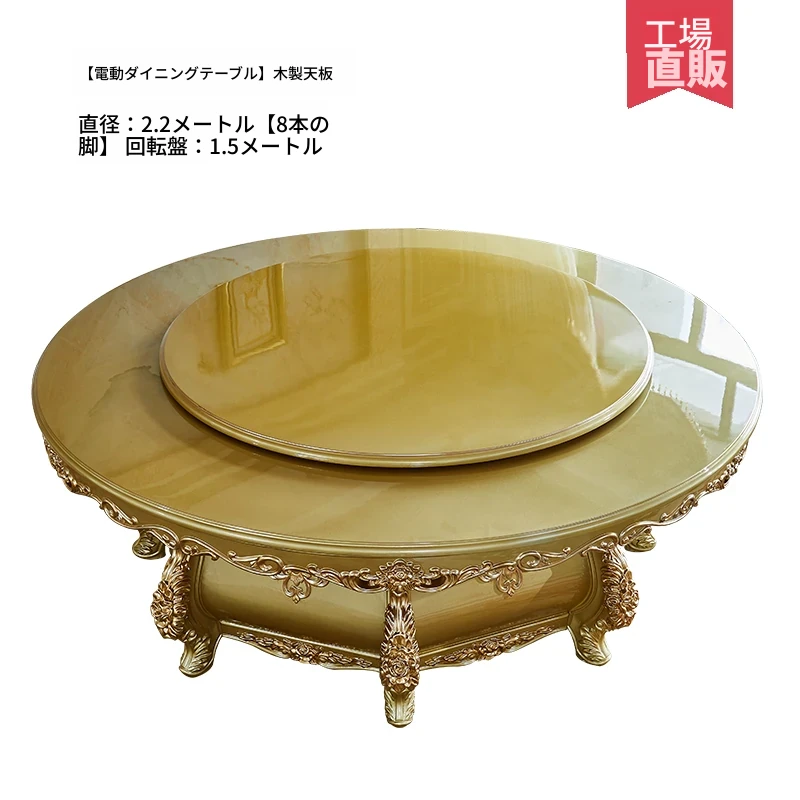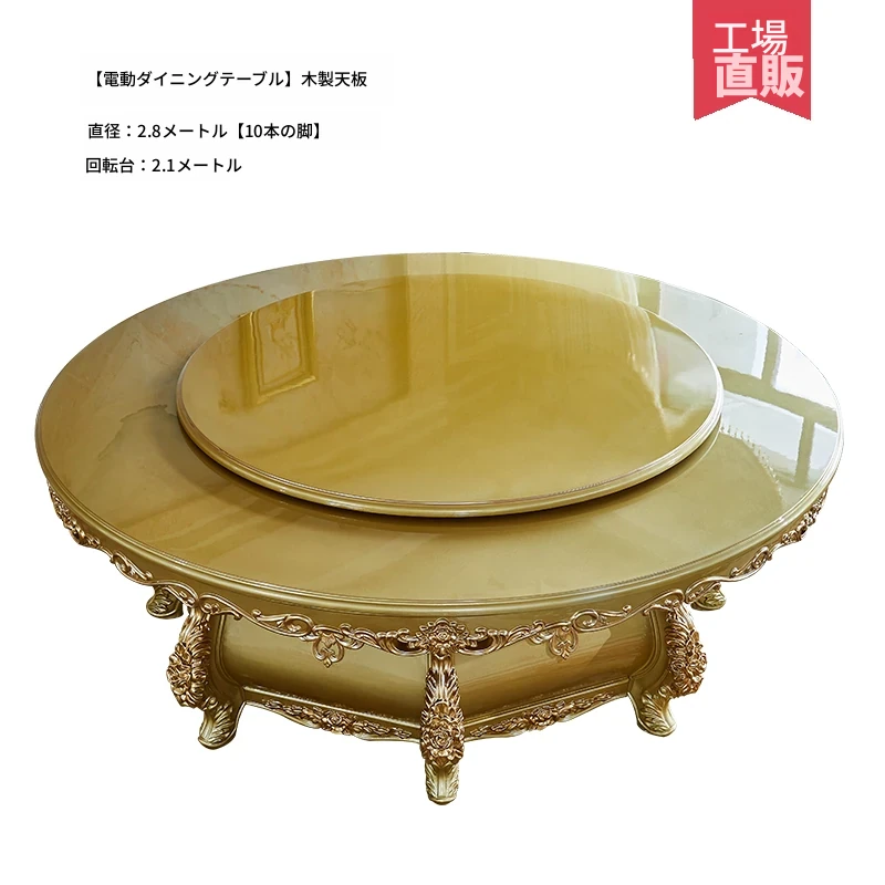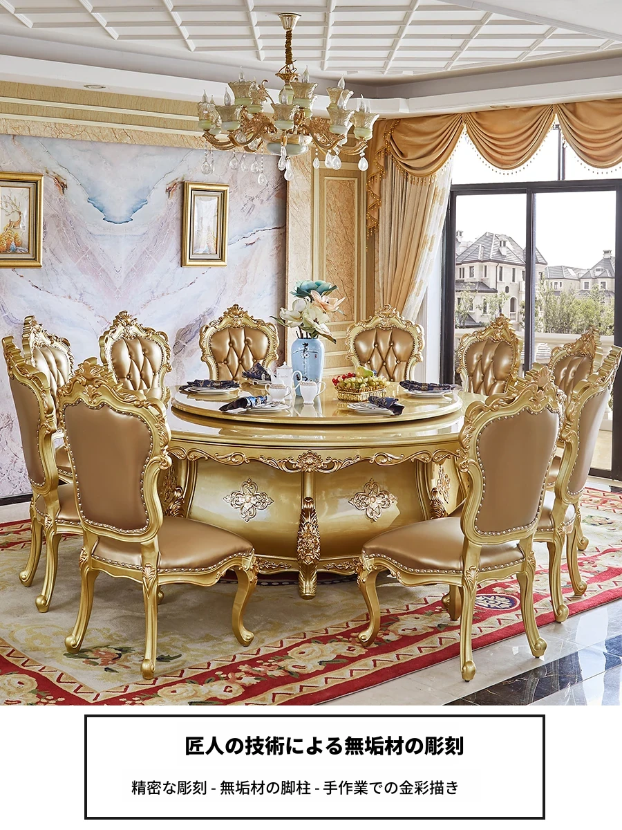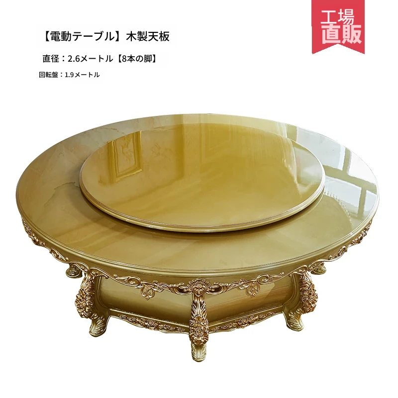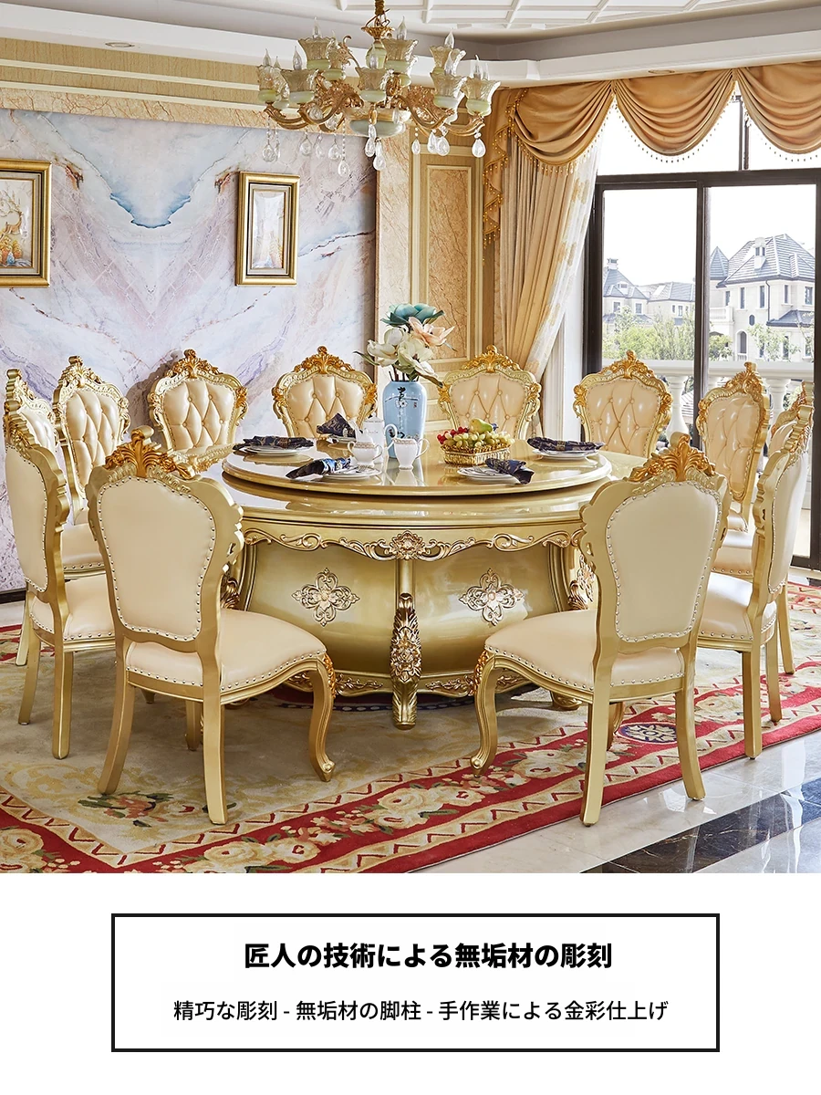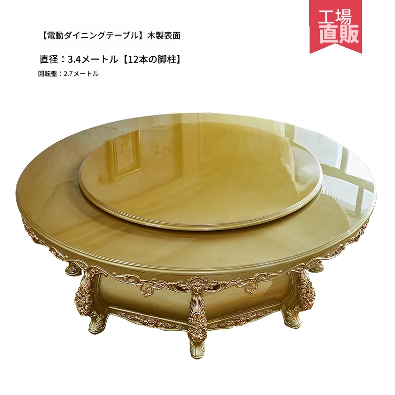 豪華なシャンパンゴールドの欧式全木製円形ダイニングテーブル - 2.4メートルのレストラン用セット、洗練された雰囲気で特別なひとときを演出します。