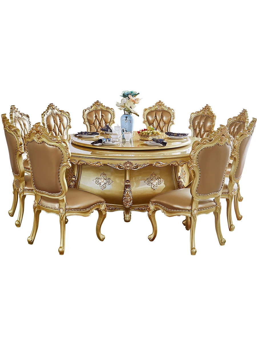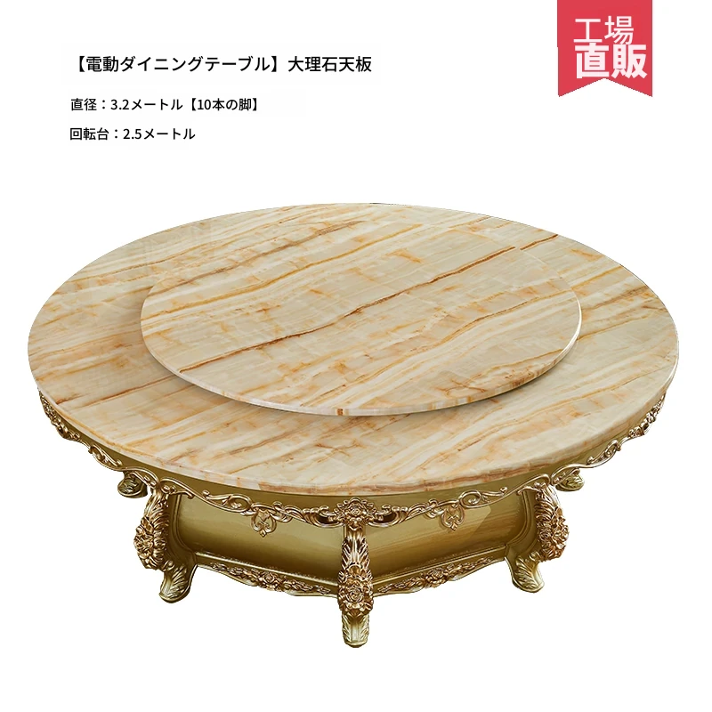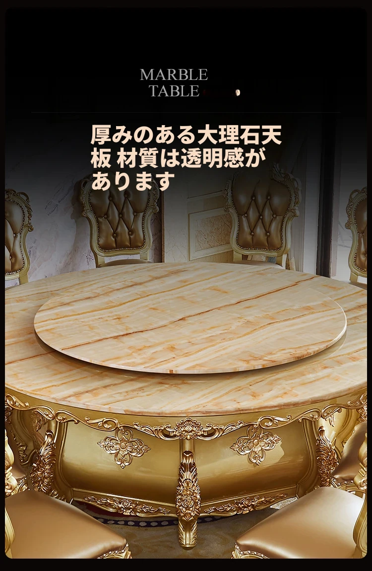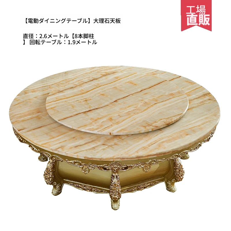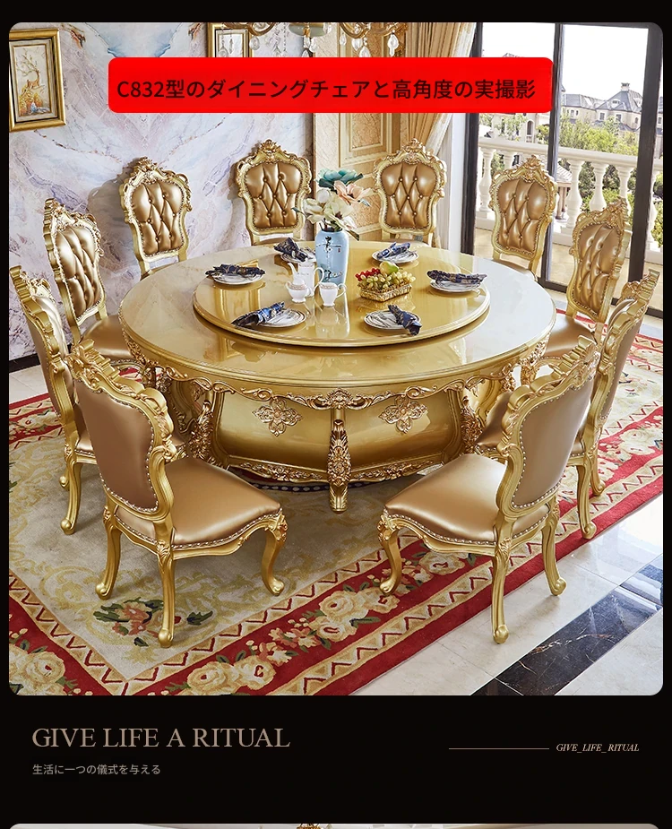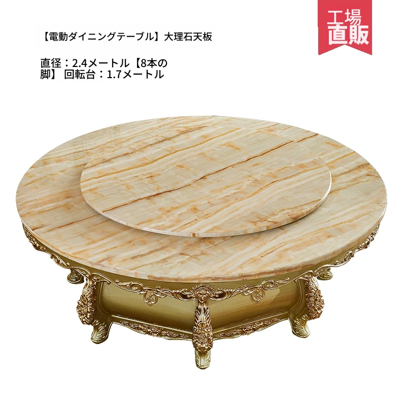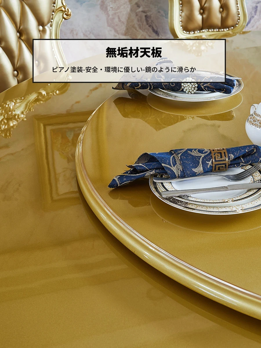 豪華なシャンパンゴールドの欧式全木製円形ダイニングテーブル - 2.4メートルのレストラン用セット、洗練された雰囲気で特別なひとときを演出します。
