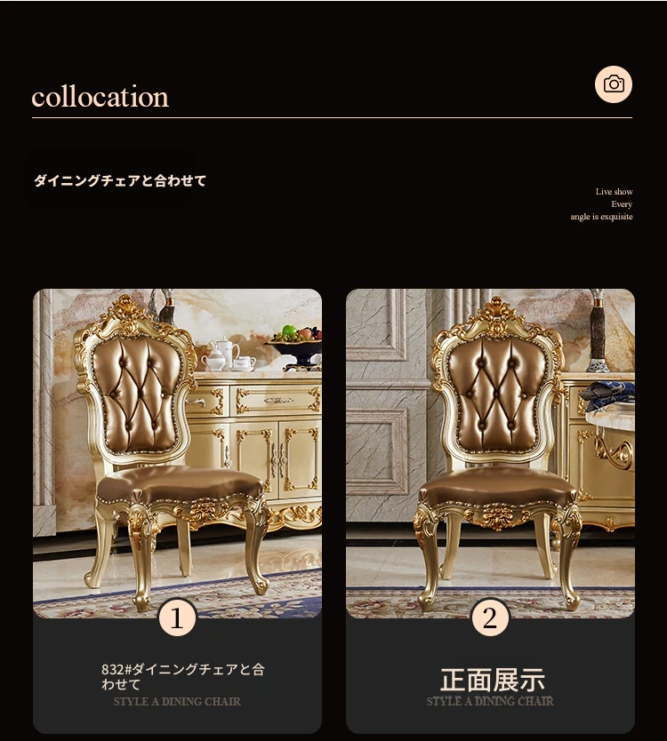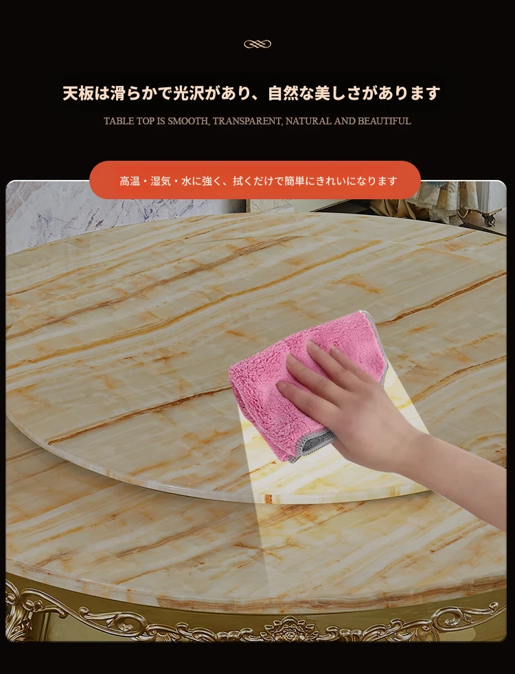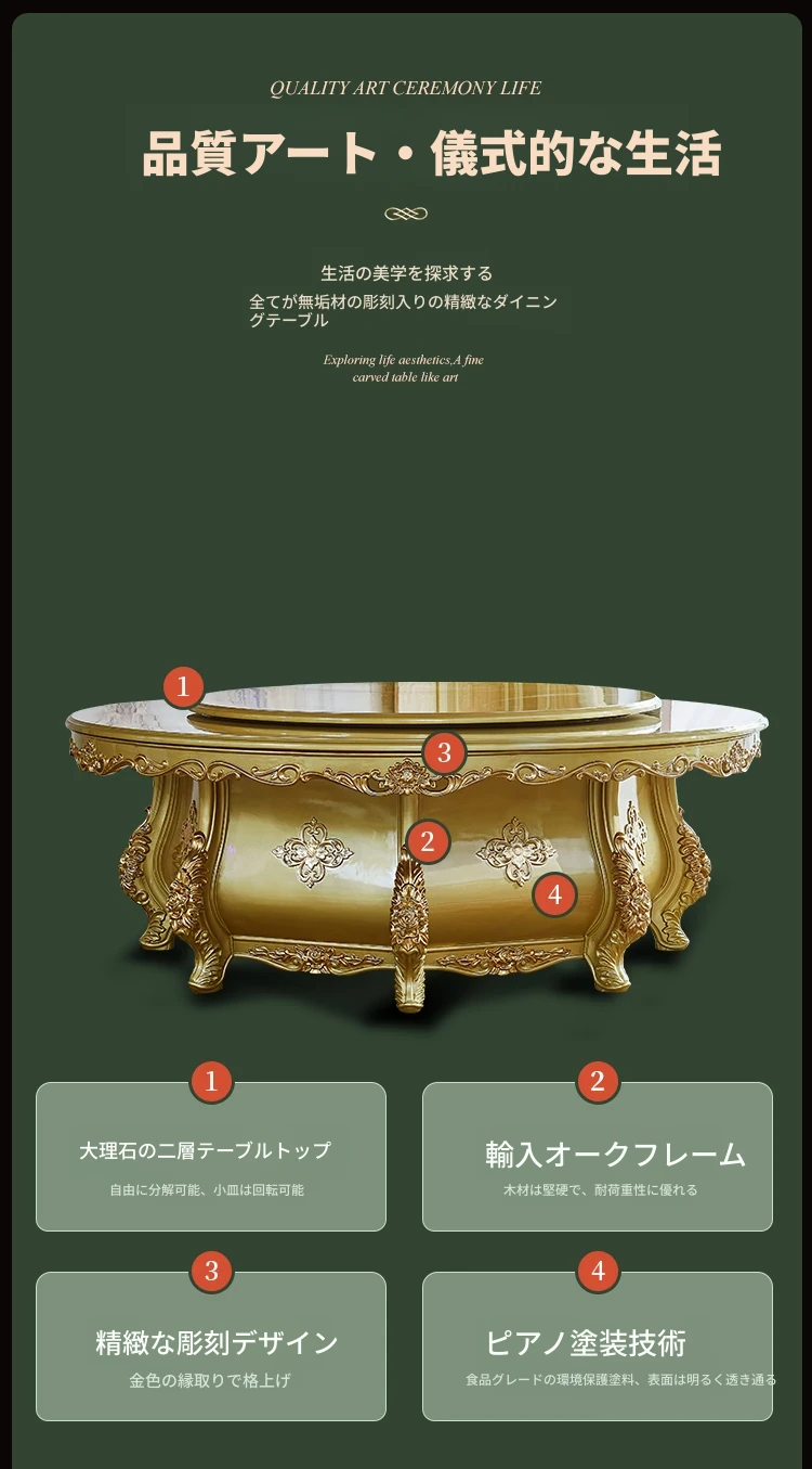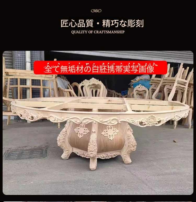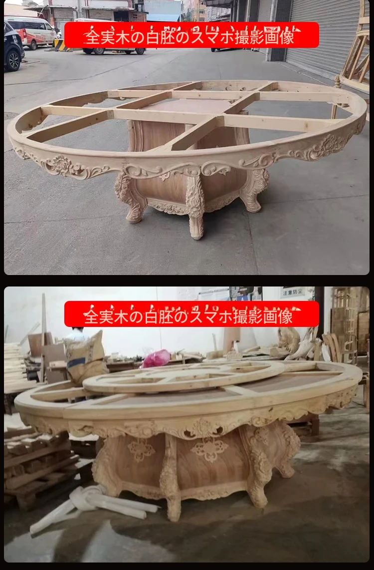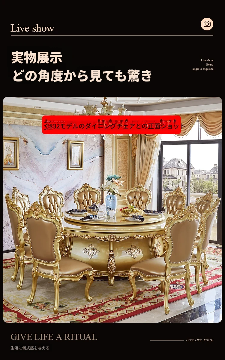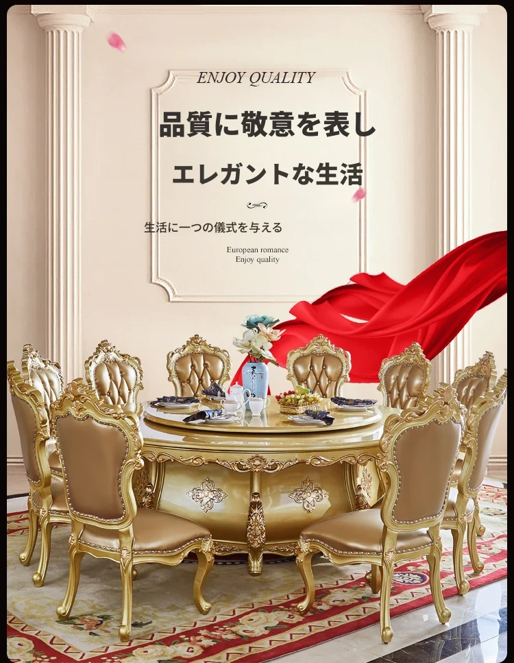 豪華なシャンパンゴールドの欧式全木製円形ダイニングテーブル - 2.4メートルのレストラン用セット、洗練された雰囲気で特別なひとときを演出します。