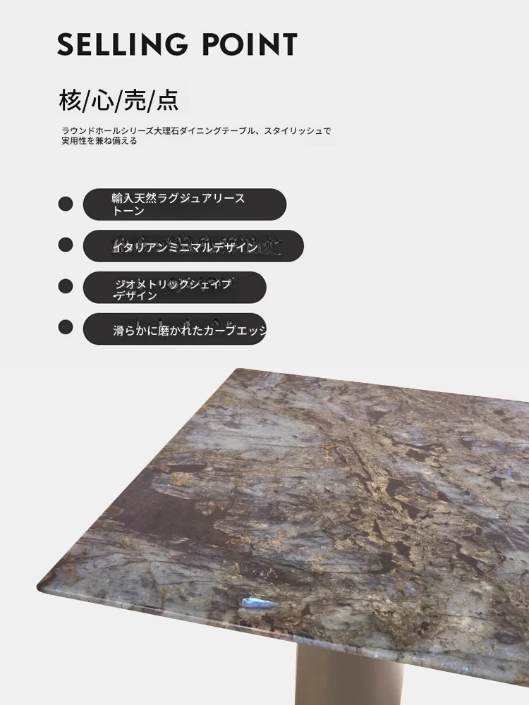 ブルージェイドのラグジュアリーストーンダイニングテーブル 1.4x0.8x0.75M
