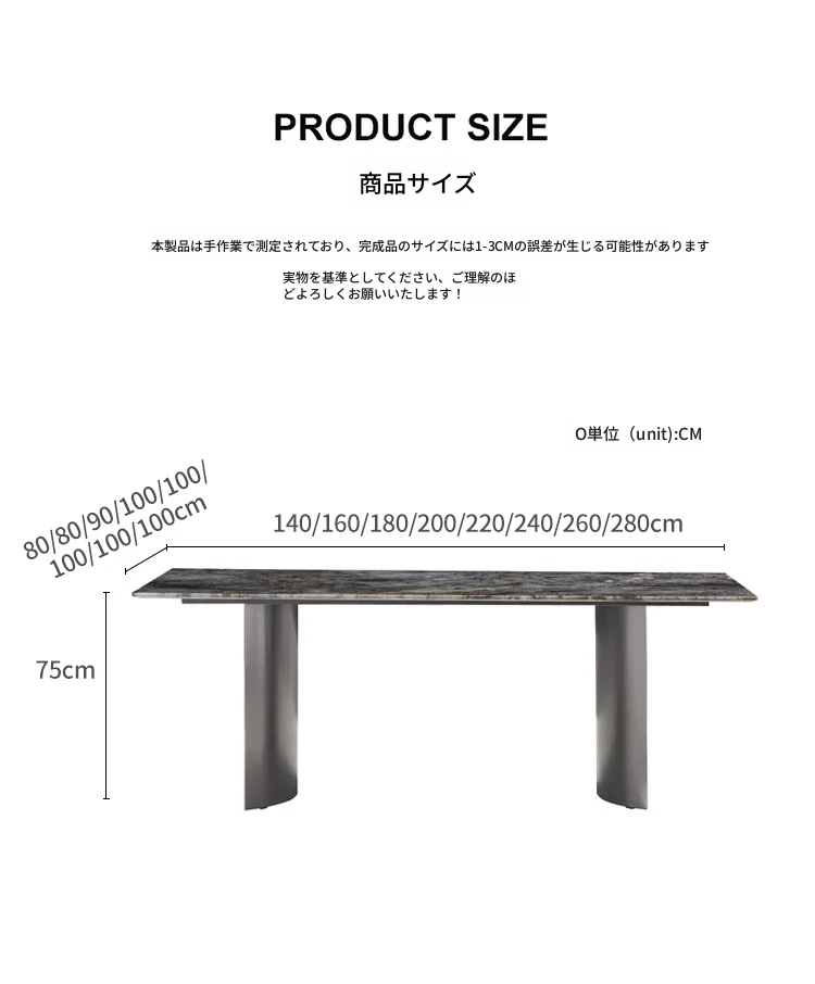 ブルージェイドのラグジュアリーストーンダイニングテーブル 2.8x1.0x0.75M