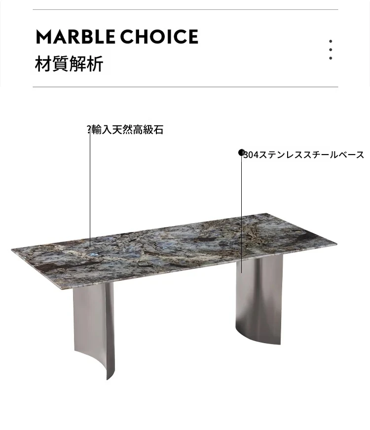ブルージェイドのラグジュアリーストーンダイニングテーブル 2.4x1.0x0.75M