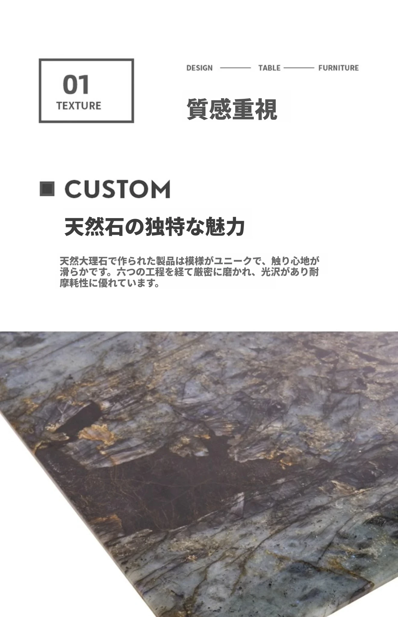 ブルージェイドのラグジュアリーストーンダイニングテーブル 2.6x1.0x0.75M