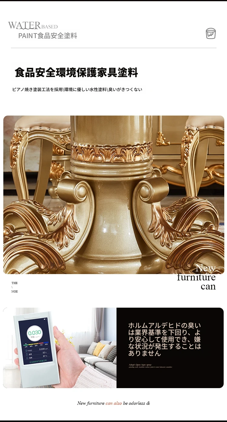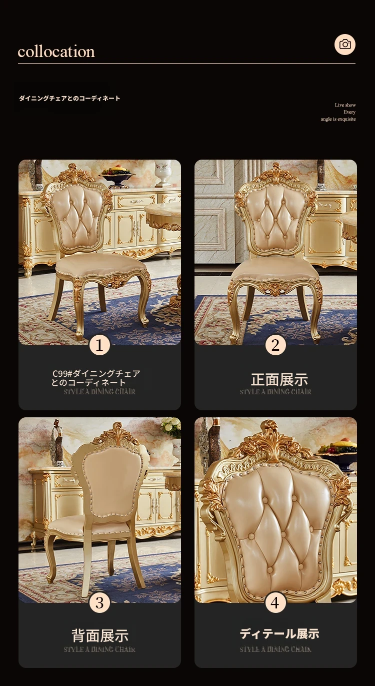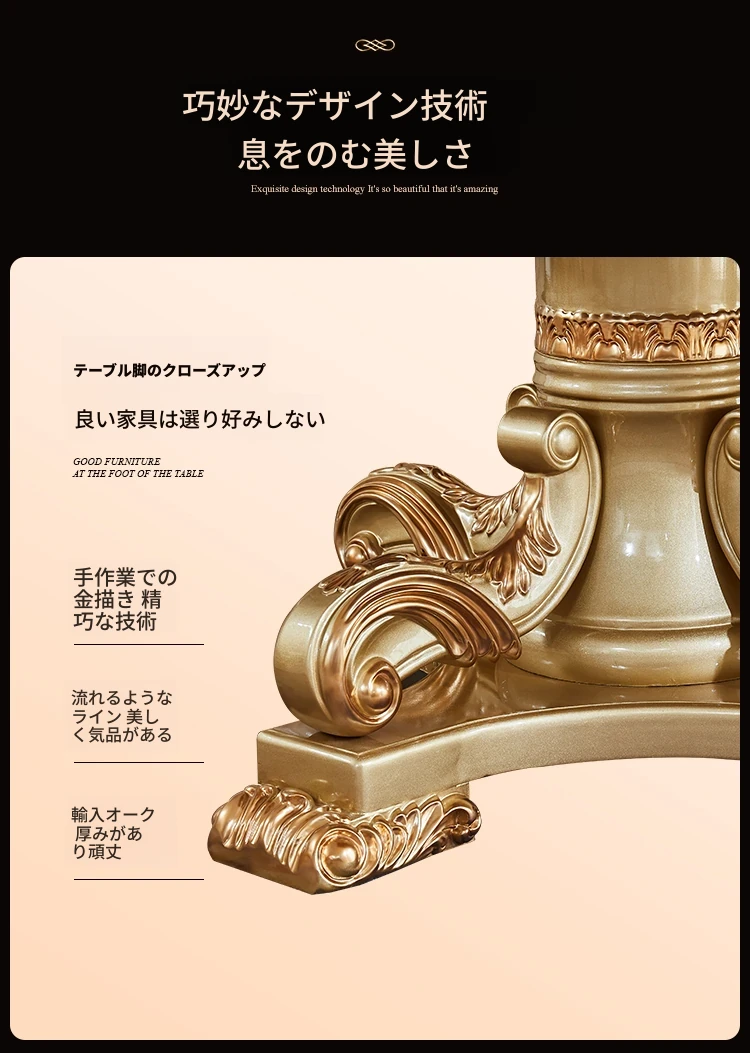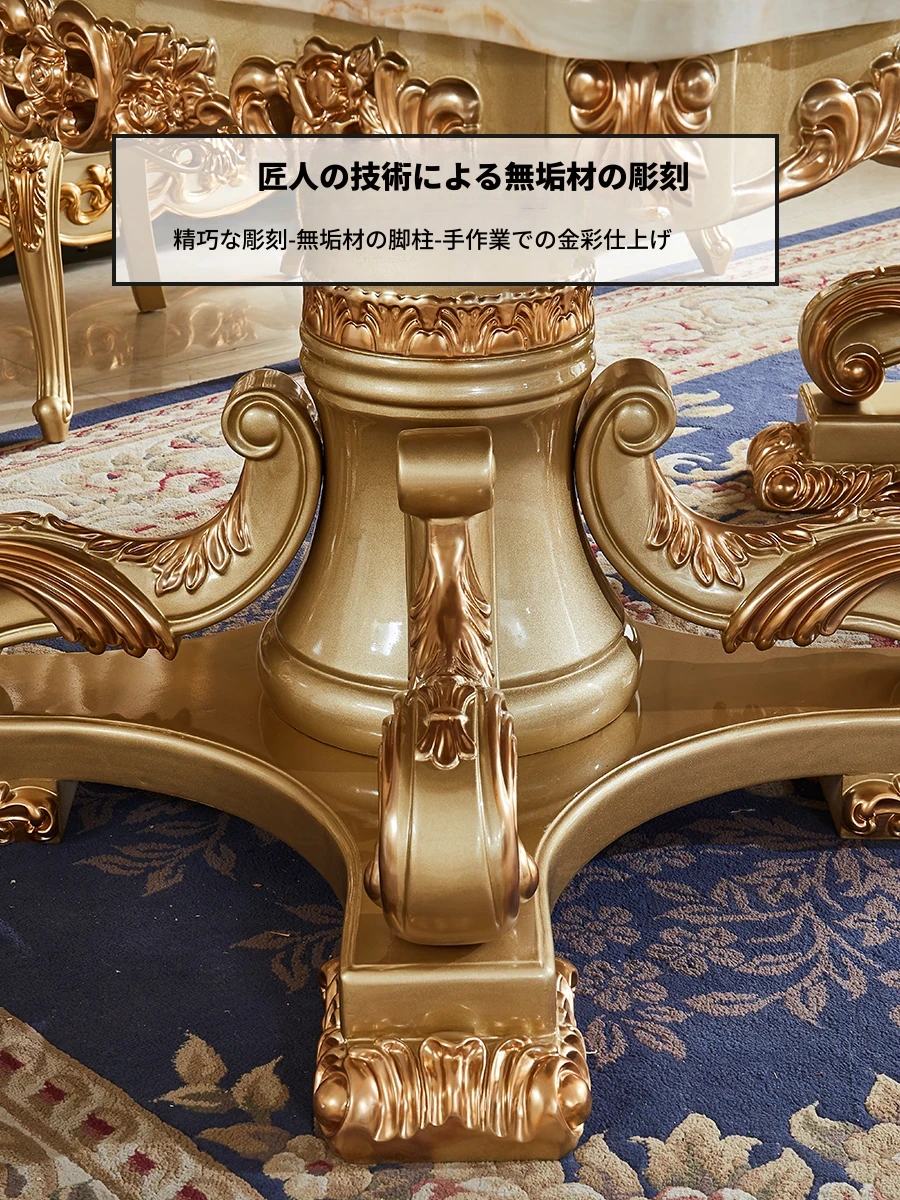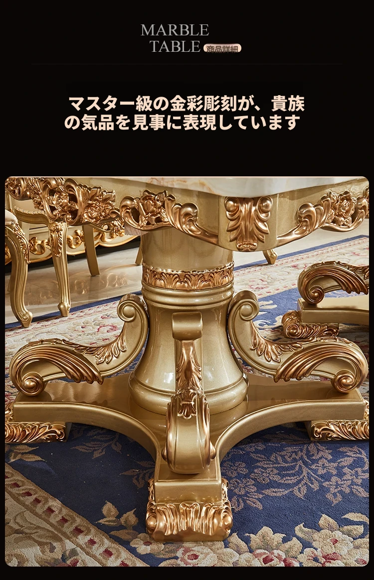 豪華な欧風大理石長方形ダイニングテーブルセット|高級別荘スタイル|全実木彫刻家具|優雅な空間を演出する贅沢なダイニング体験をお楽しみください!