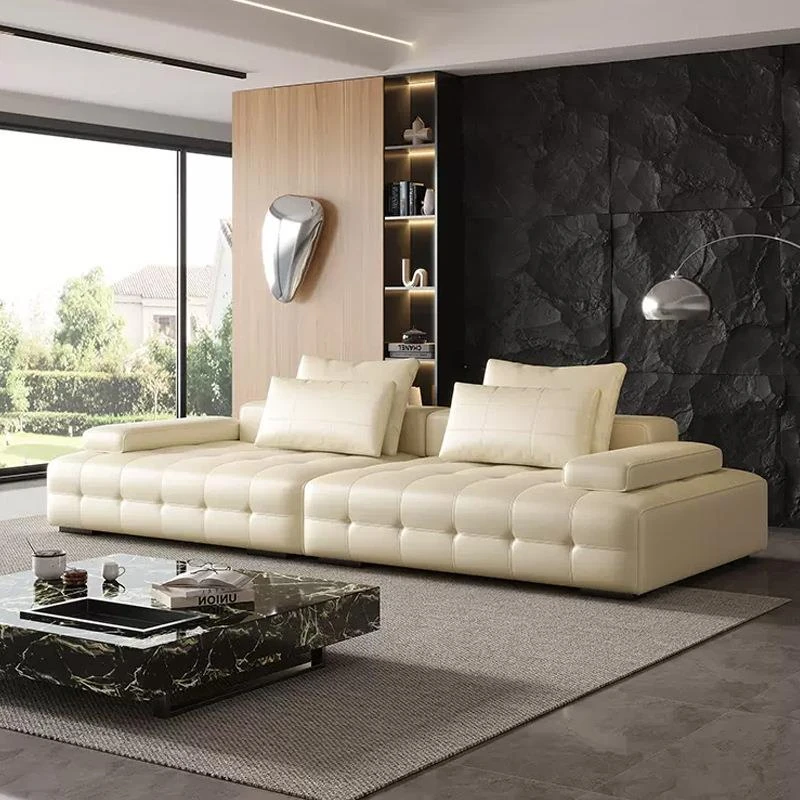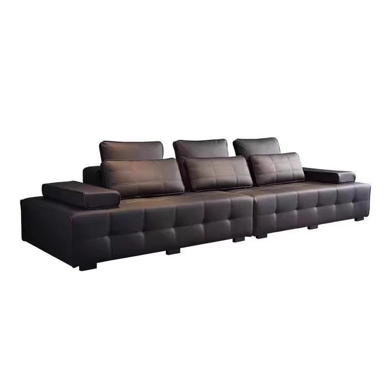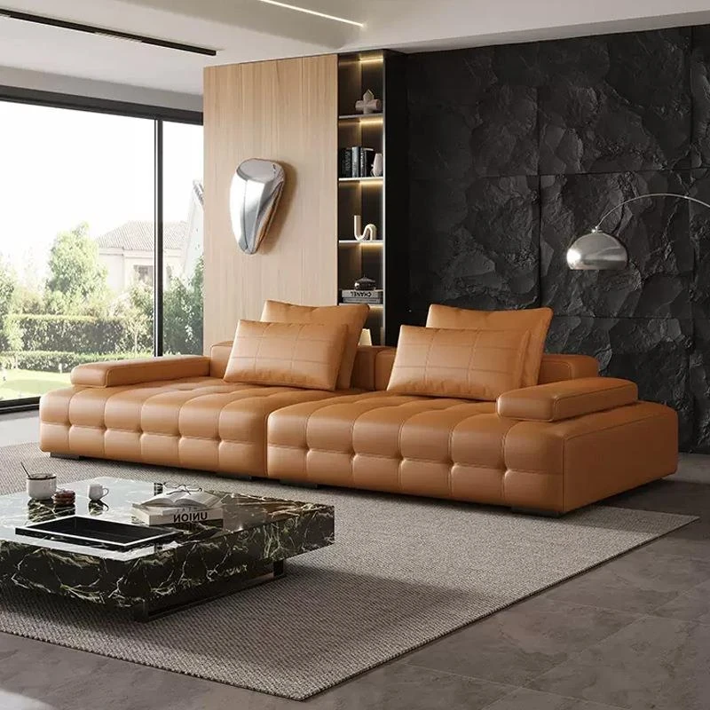 イタリアンミニマリズム本革ソファ|ラグジュアリーなリビングに最適なレザーソファ|ローレンススタイルの多人数用本革ソファセット