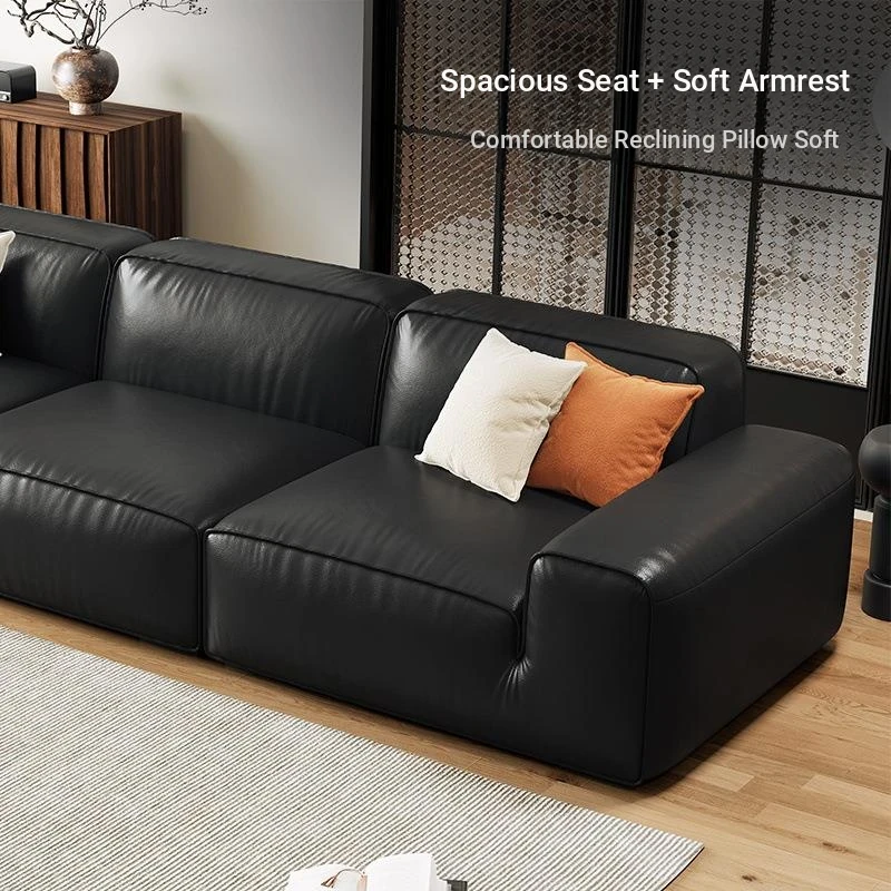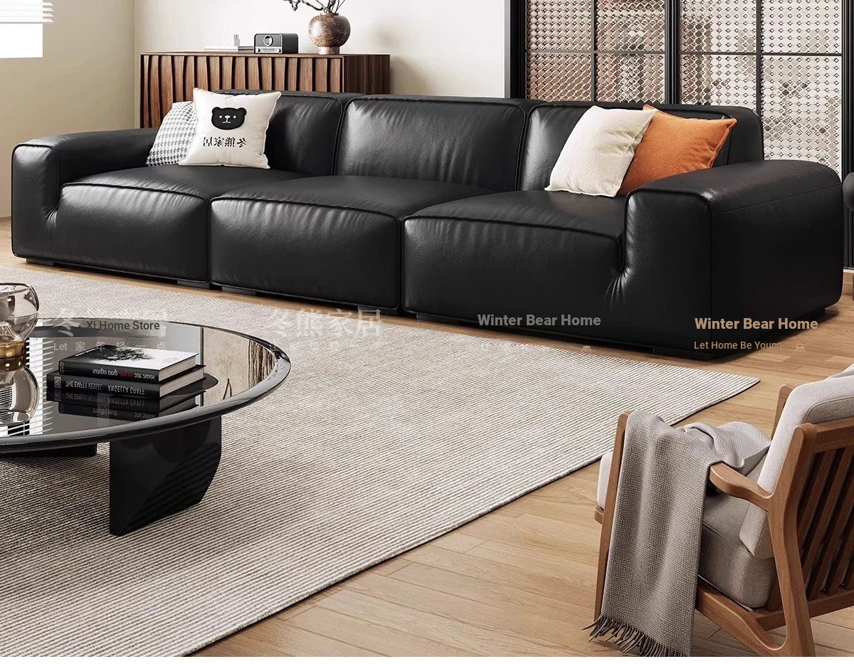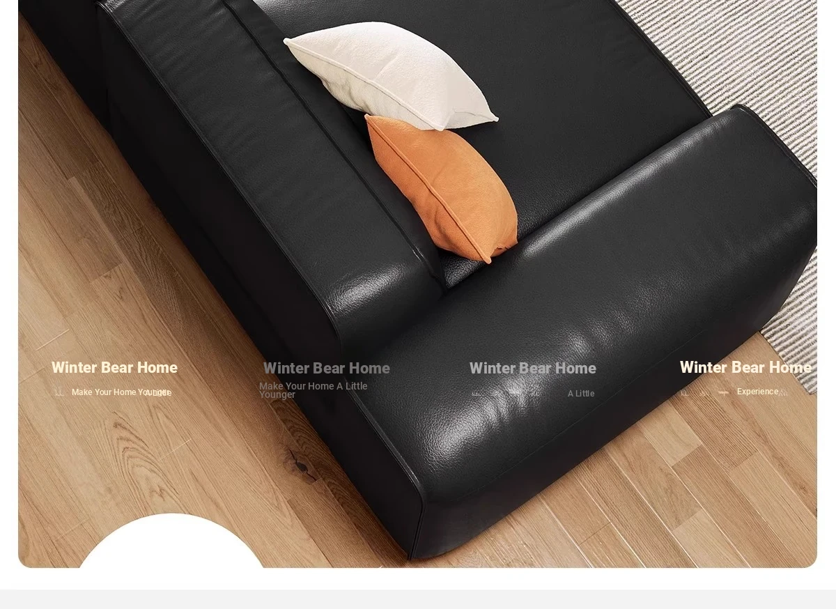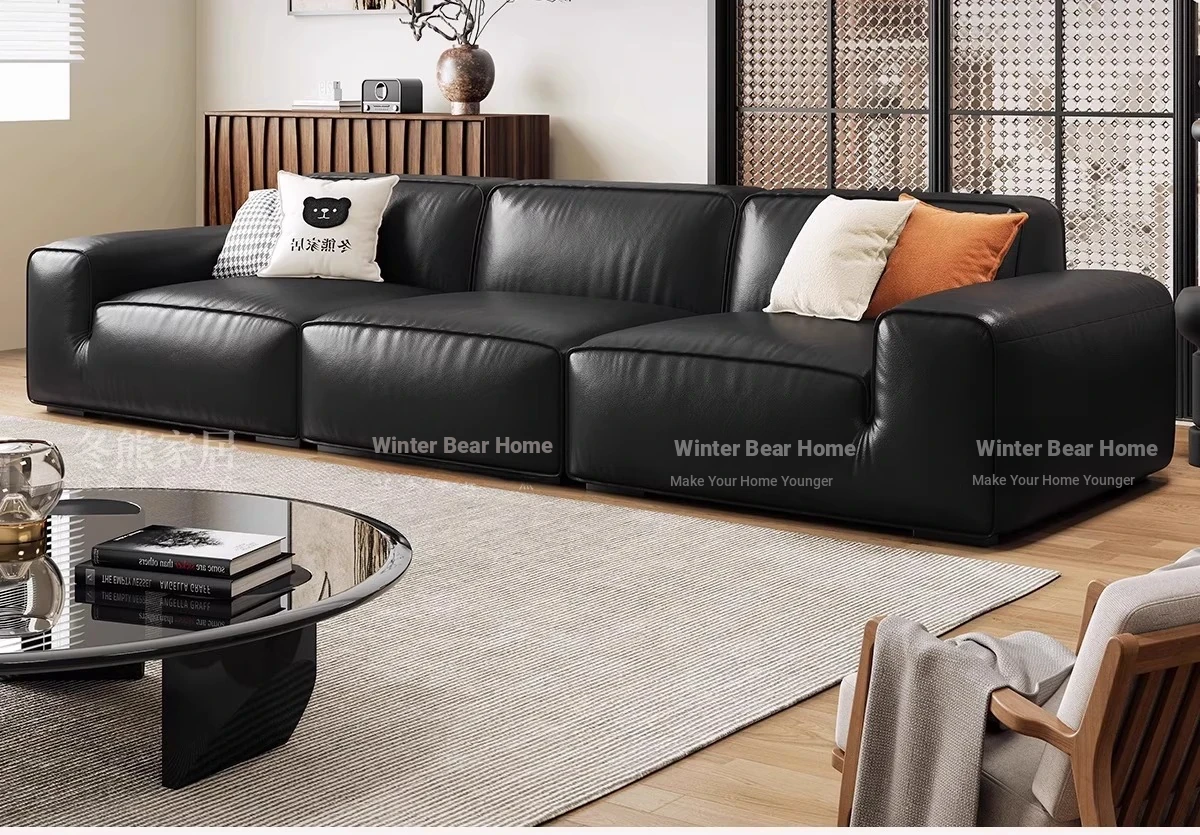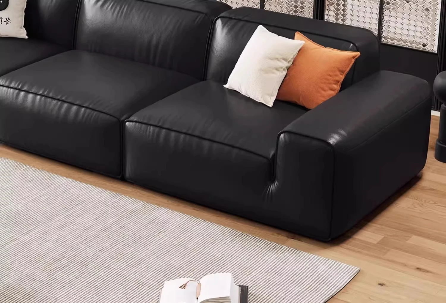 Luxury Italian Style Top-Grain Leather Sofa for Small Living Rooms - Chic and Compact Design in Classic Black, Perfect for Modern Spaces