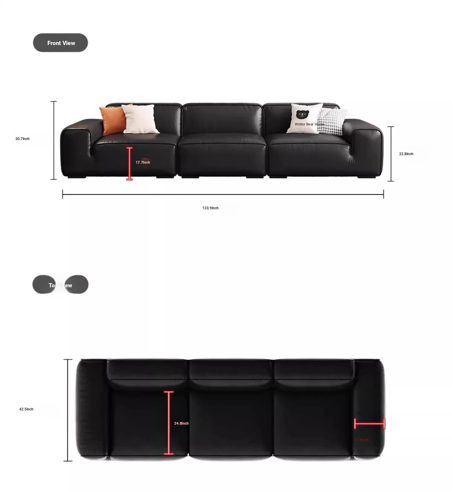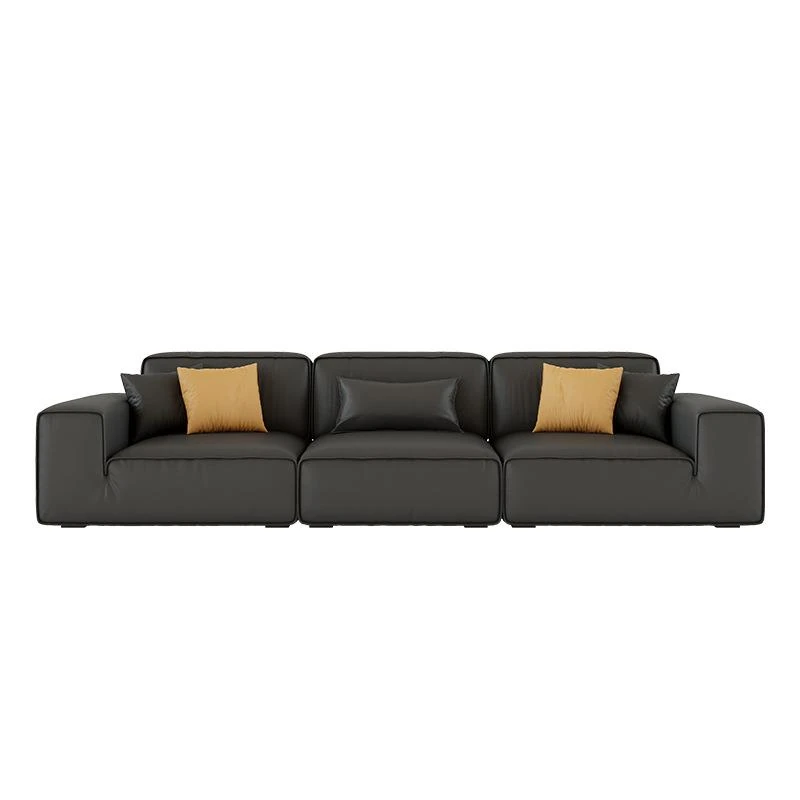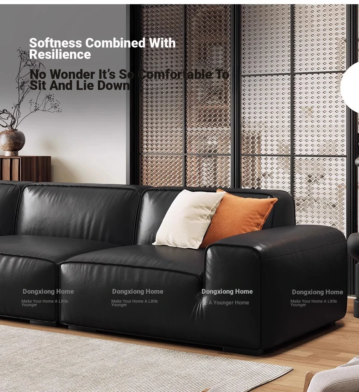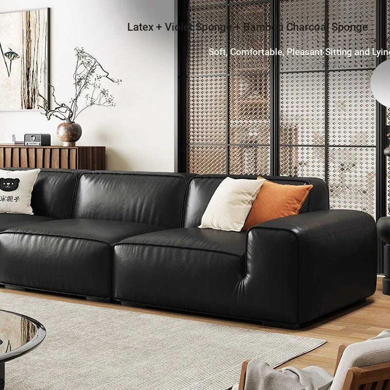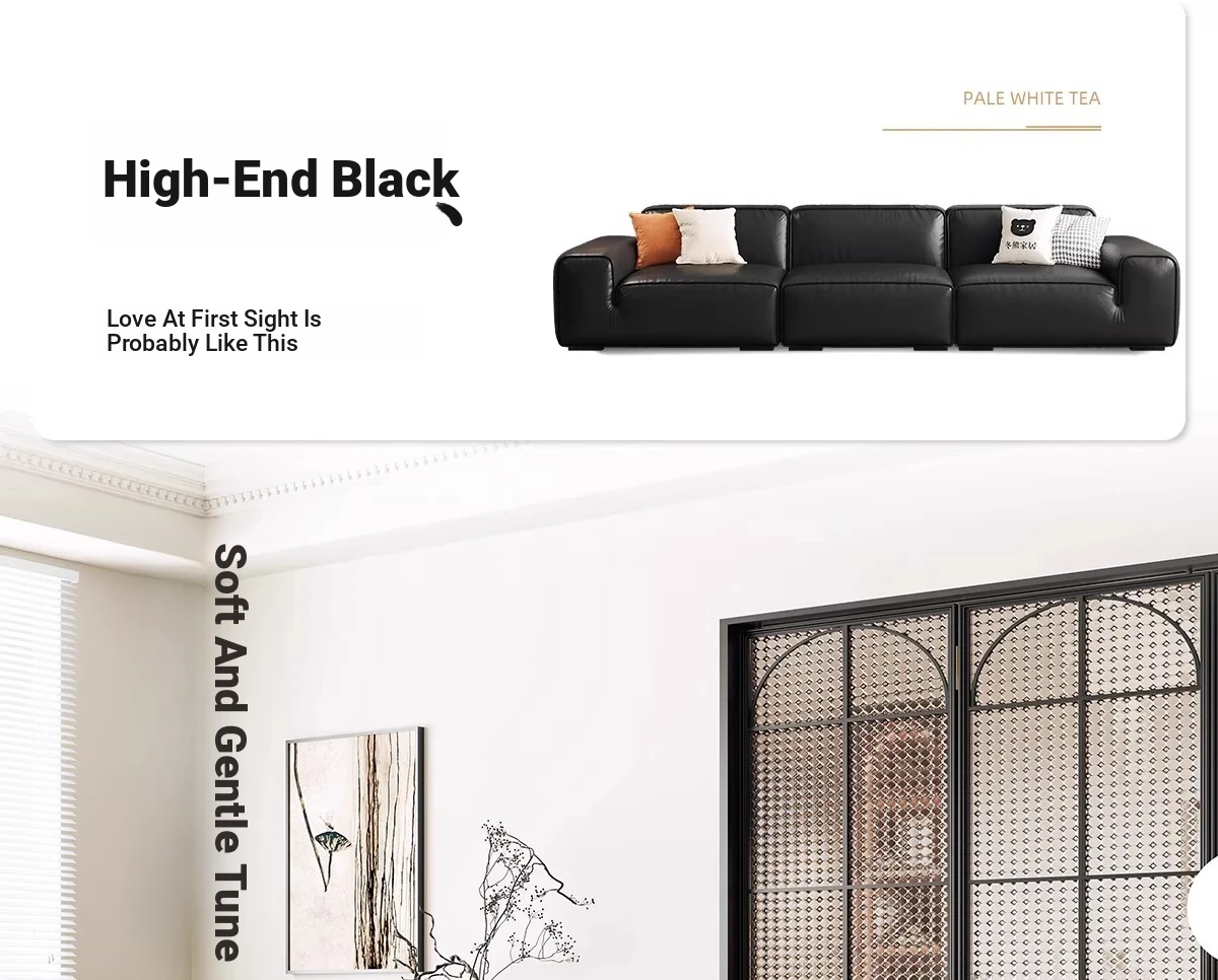 Luxury Italian Style Top-Grain Leather Sofa for Small Living Rooms - Chic and Compact Design in Classic Black, Perfect for Modern Spaces
